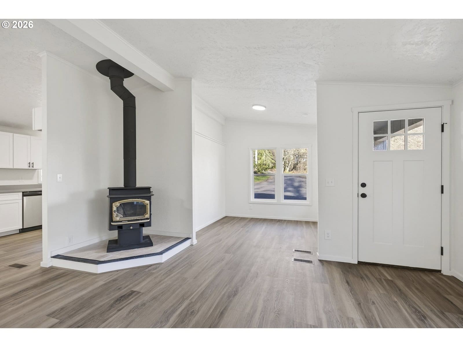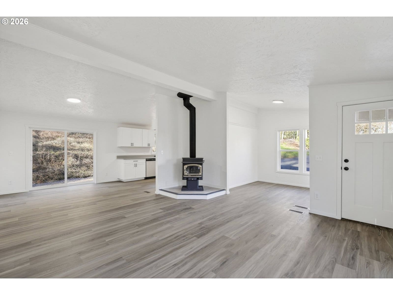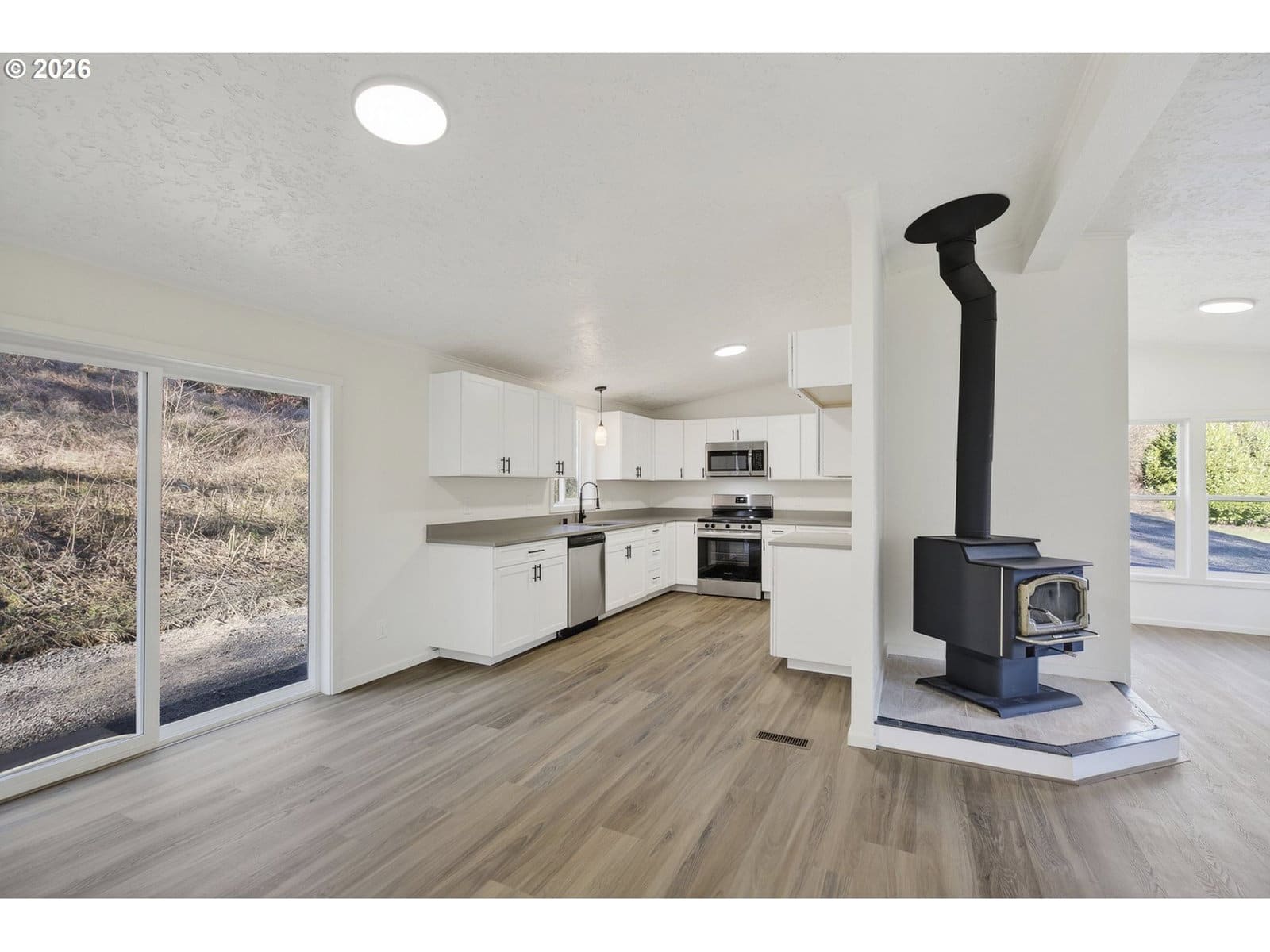 Tucked away in a quiet rural setting just outside of town, this fully renovated 3-bedroom, 2-bath home offers privacy, space, and a fresh start on over 2.5 acres. The interior has been completely refreshed and feels clean, bright, and welcoming, featuring new vinyl windows, sleek laminate flooring, and fresh carpet throughout. The open living area is centered around a cozy wood stove and flows easily for everyday living.The kitchen has been thoughtfully updated with quartz countertops, soft-close shaker cabinets, and stainless steel appliances, combining modern style with functionality. The layout is simple and comfortable, offering well-designed living spaces throughout the home. Major updates include a new roof, a brand-new septic system, and a newly built deck, providing peace of mind and added outdoor living space. Outside, the property features a medium-sized shop and an additional work shed, along with open land and wooded surroundings that create a peaceful, private setting. A rare opportunity to own a truly move-in-ready home on private acreage—seize it while it lasts.