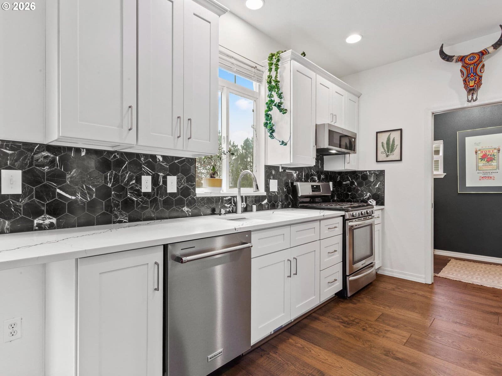 SUNDAY 3/1 OPEN HOUSE CANCELED! Camas School District!! Open House Saturday 2/28 and Sunday 3/1 from 11-3. Location is everything, and this is it! Situated on a prime cul-de-sac lot and backed by a natural buffer, this home enjoys a sought-after setting in one of Camas’ most walkable neighborhoods. The renovated main level features 9' ceilings, a charming archway, premium hardwood floors, fresh paint, and a custom maple mantle that adds character and serves as a natural focal point. The beautifully updated kitchen offers new 42" cabinetry, quartz countertops, marble backsplash, stainless steel appliances, an upgraded sink, and even an appliance lift, perfect for baking enthusiasts. Stay comfortable all summer with new AC and a new water heater. Upstairs, the vaulted primary suite includes double closets (finally, shoe storage!) and a bright bathroom, while all bedrooms are generously sized with newer carpet.The fully fenced yard has space for gardening, grilling, and play, complemented by a private green space on the block that feels like an extension of the yard. Rare street parking adds convenience for guests and everyday life. Neighborhood parks and trails make it easy to recharge, while weekends bring a quick bike ride to pickleball courts and basketball at Fisher Basin Park, or local food cart pods.Located within the sought-after, highly rated Camas School District and positioned on the west side of town, shopping, diverse dining, fitness studios, coffee, and local favorites are all easily accessible within minutes, making daily routines effortless. Just a 15-minute drive to PDX and the Vancouver waterfront, yet the home feels a world away. Whether you're craving connection, convenience, or calm, you'll find it all in this exceptional location.