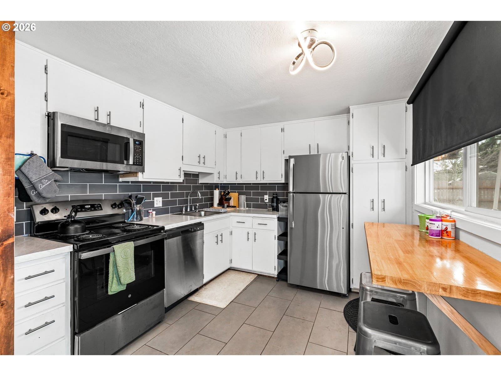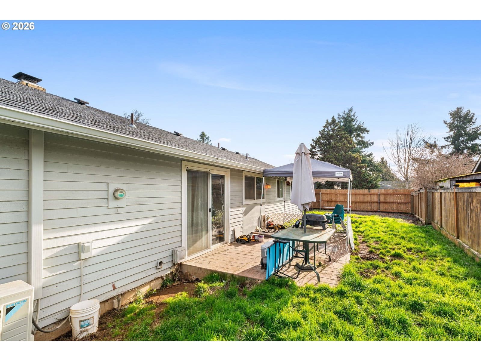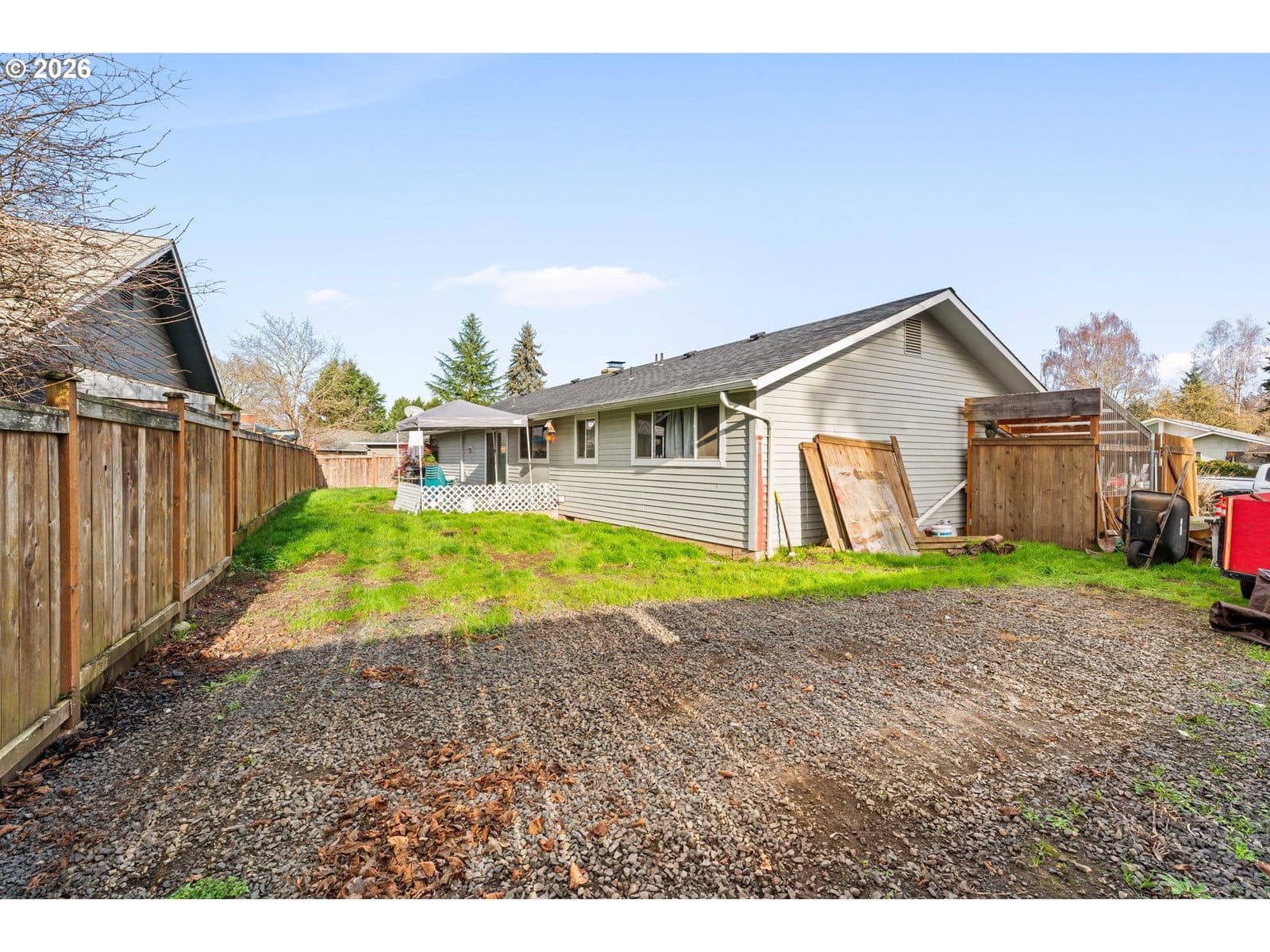 Tucked into a quiet cul-de-sac in Eugene’s desirable Santa Clara neighborhood, this well-maintained single-level home offers a thoughtful blend of recent updates and functional outdoor space. The kitchen features all-new appliances—including a refrigerator, oven, microwave, and dishwasher—all just a few months old. The open-concept dining area connects to a cozy living room anchored by a wood-burning fireplace and hardwood flooring.The primary bedroom includes a half bath with updated flooring and countertop, as well as a closet with double doors. Hardwood floors continue throughout most of the home. A ductless heating and cooling system and vinyl windows, both added within the last few years, enhancing year-round comfort and energy efficiency.Outside, the corner lot delivers standout features: spacious RV parking with 19-foot wide gates, additional fenced side yard parking, a stamped concrete patio, and a small greenhouse/workspace—ideal for projects or gardening. The widened driveway and sidewalk, finished with newer concrete, offer improved access and curb appeal.Set in a quiet residential area, this home offers easy access to Santa Clara Community Park, shopping centers, local schools, and main roadways for commuting. A solid opportunity in a sought-after neighborhood with practical updates already in place.