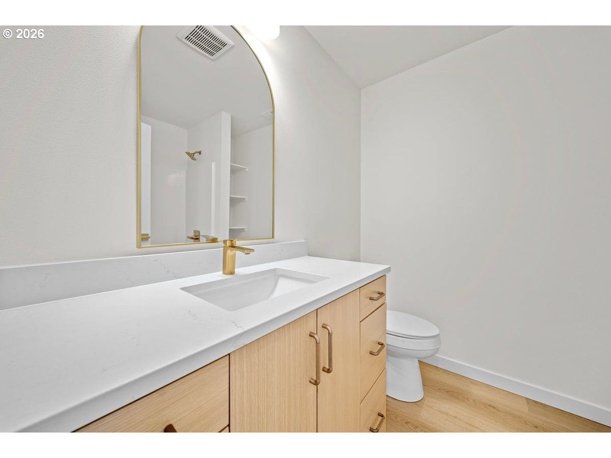 New construction in downtown Silverton, just steps from shops and dining, this 3-bedroom, 2.5-bath home is defined by calm, warm finishes and a cohesive modern organic palette. Wide-plank flooring runs throughout the fully carpet-free interior, paired with warm white walls, flat ceilings, and thoughtful brass accents that add quiet refinement. The kitchen features clear-grain white oak flat-panel cabinetry in a white birch stain, quartz surfaces with soft warm veining, and imported hardware selected for texture rather than flash. Living spaces open naturally to a generous covered back patio and a spacious, usable yard, ideal for everyday living and entertaining. Insulated garage doors and a gas tankless water heater provide comfort and efficiency in a home designed to age gracefully. Appliances are included. KMK Excavating LLC CCB# is 214702