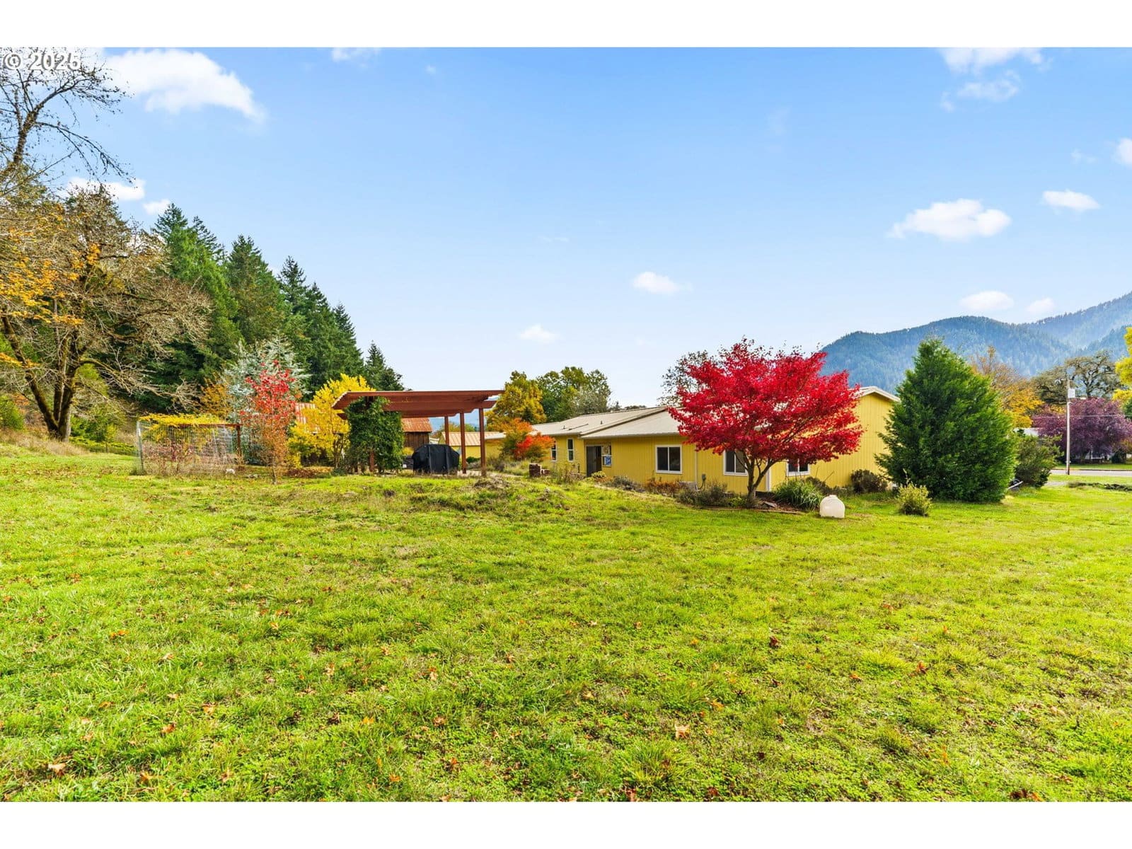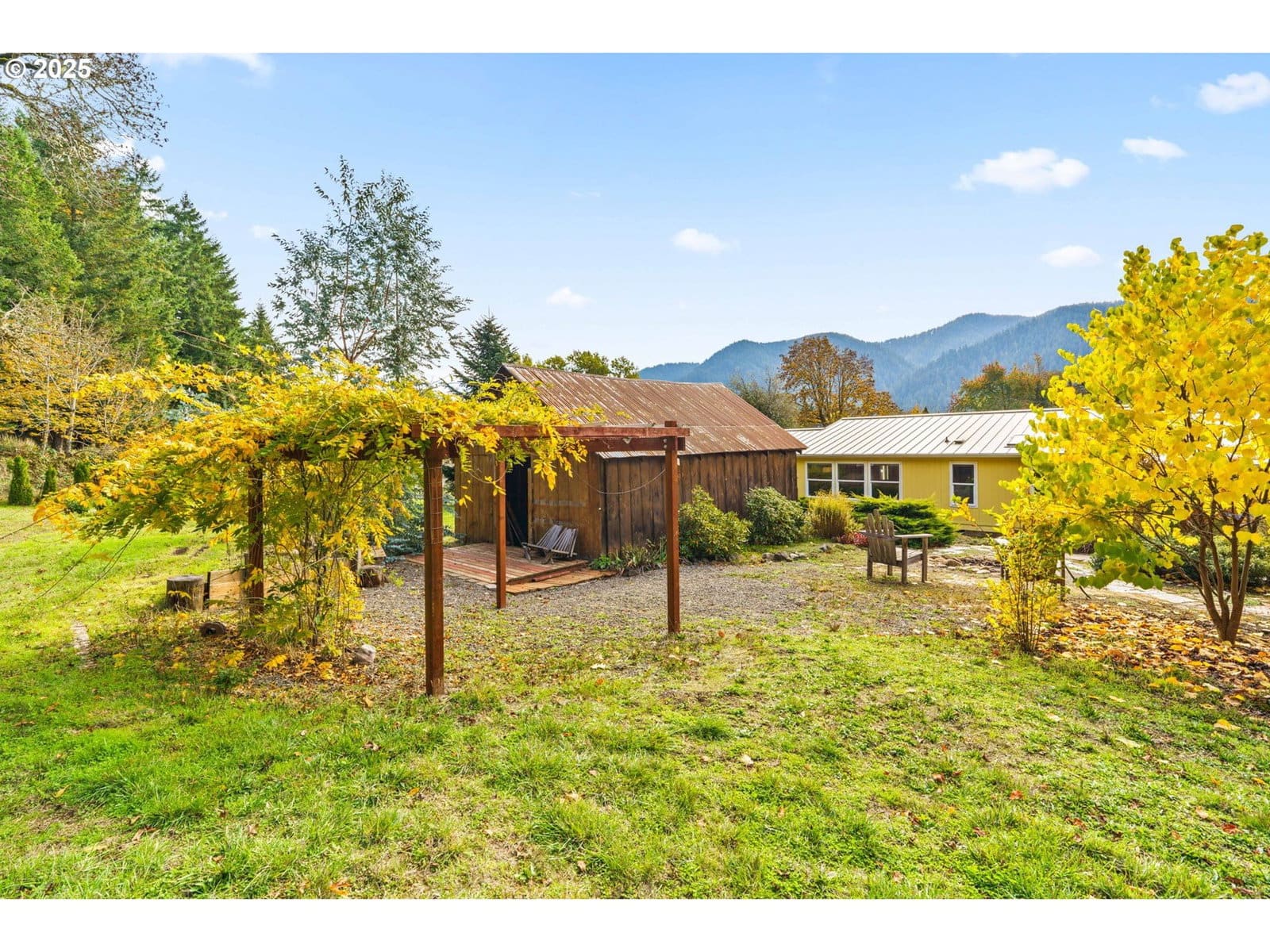 Experience the best of Oakridge living! Set on 1.27 gently sloping acres, this updated 3-bedroom, 2-bath home with an office offers the perfect mix of modern upgrades and outdoor living. Inside, you’ll love the spacious sunroom entry, vaulted ceilings, new LVP flooring in the living room and primary suite, complete with a walk-in closet and a beautifully remodeled bath featuring a tiled walk-in shower and soaking tub. The light-filled kitchen offers ample cupboard space and an island with plenty of room for gathering and a pellet stove in the dining area adds warmth and charm. Enjoy peace of mind with quality updates throughout — 50 year metal roof (2021), solar system with full-house backup generator (2021) new Furnace/AC system (2023) , and water heater (2024). The property also includes a 3-car garage with two additional shop rooms, ideal for projects, storage, or a home gym. The large room features its own pellet stove and ductless system (installed 2021) for added comfort year-round. Outside, take in stunning Diamond Peak and mountain views from your pergola-covered patio, surrounded by fruit trees, garden beds, and mature landscaping. A barn-style outdoor building, and separate oversized storage shed with roll-up door, provide plenty of space for tools, equipment, and garden gear. Tucked along the urban growth boundary yet connected to city utilities, this home offers a rare blend of privacy and convenience. Perfectly located to embrace Oakridge’s outdoor lifestyle... with easy access to hiking, mountain biking, fishing, and boating right at your doorstep. Don't miss the opportunity to call this home, schedule a tour today!
