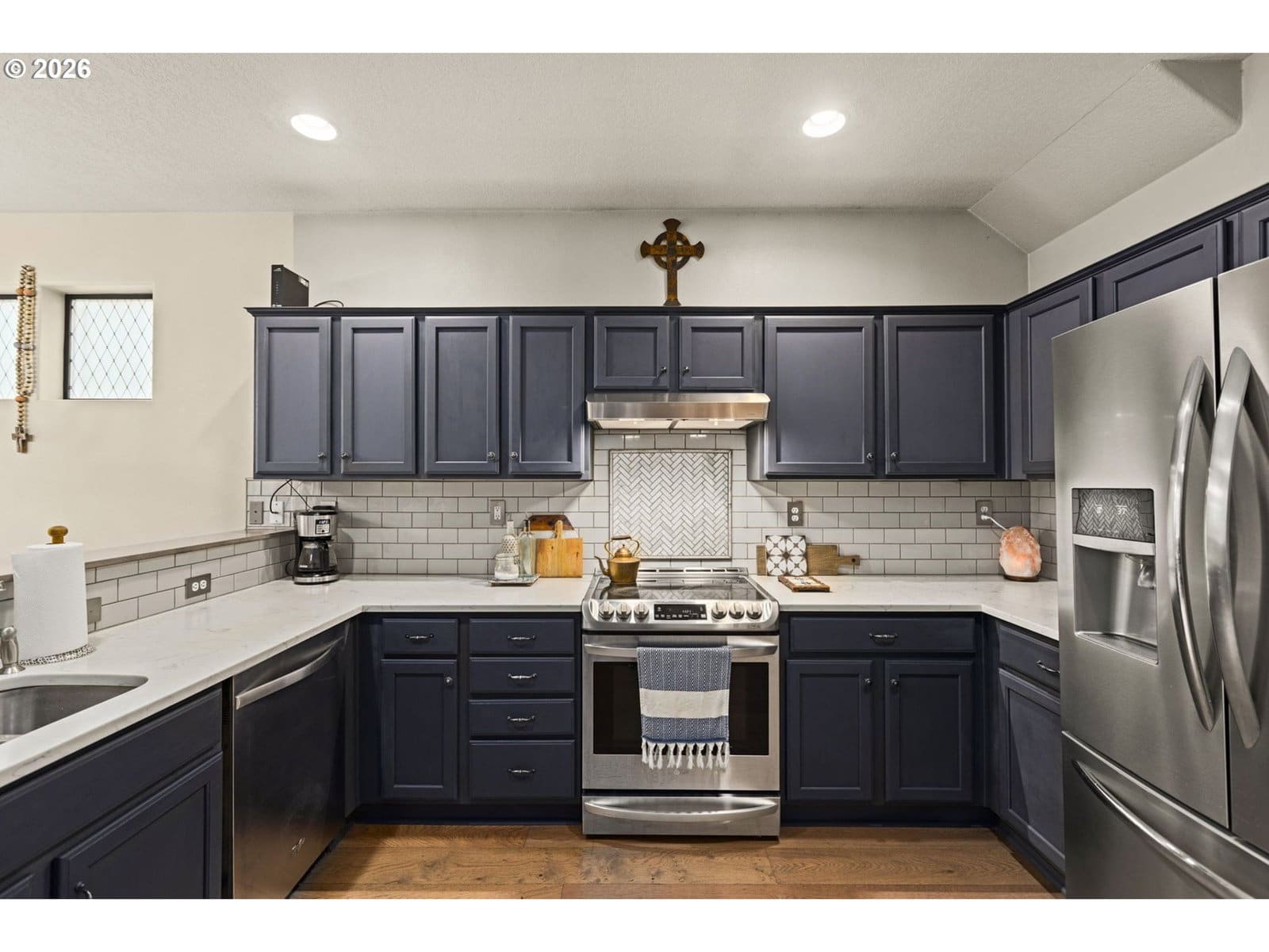 Rare opportunity to own a masterfully updated 3-bedroom, 2-bathroom home in the heart of the highly coveted neighborhood. The open-concept main level seamlessly blends modern luxury with rustic soul, featuring stunning reclaimed wood accents and a cozy gas fireplace perfect for Pacific Northwest evenings. The true showstopper is the gourmet kitchen, boasting premium appliances, sleek cabinetry, and ample prep space for the home chef. Retreat to the spacious primary suite, which serves as a private sanctuary complete with an ensuite bath and balcony—the ideal spot for morning coffee or sunset views. Two additional bedrooms provide flexibility for a home office or guest space. Situated on a manicured lot in a vibrant community just minutes from amenities. This home offers the perfect balance of designer style and everyday comfort. A must-see on your list!