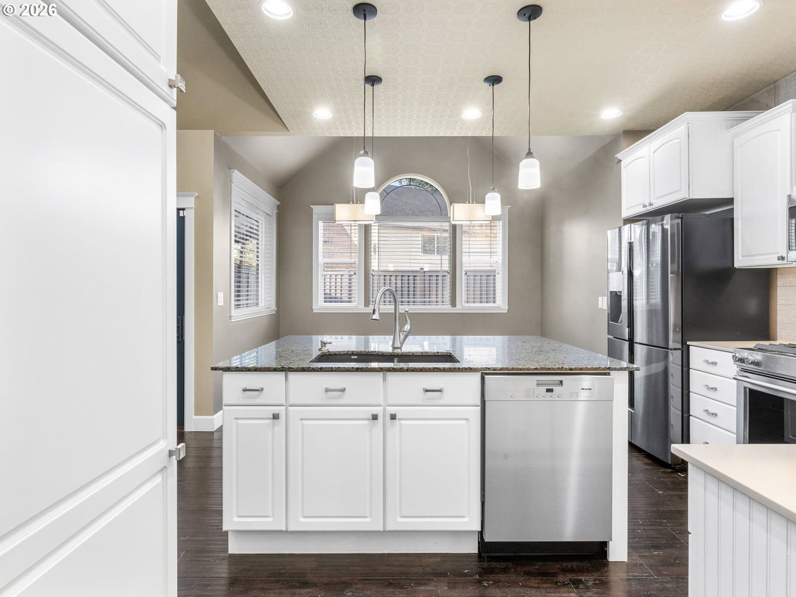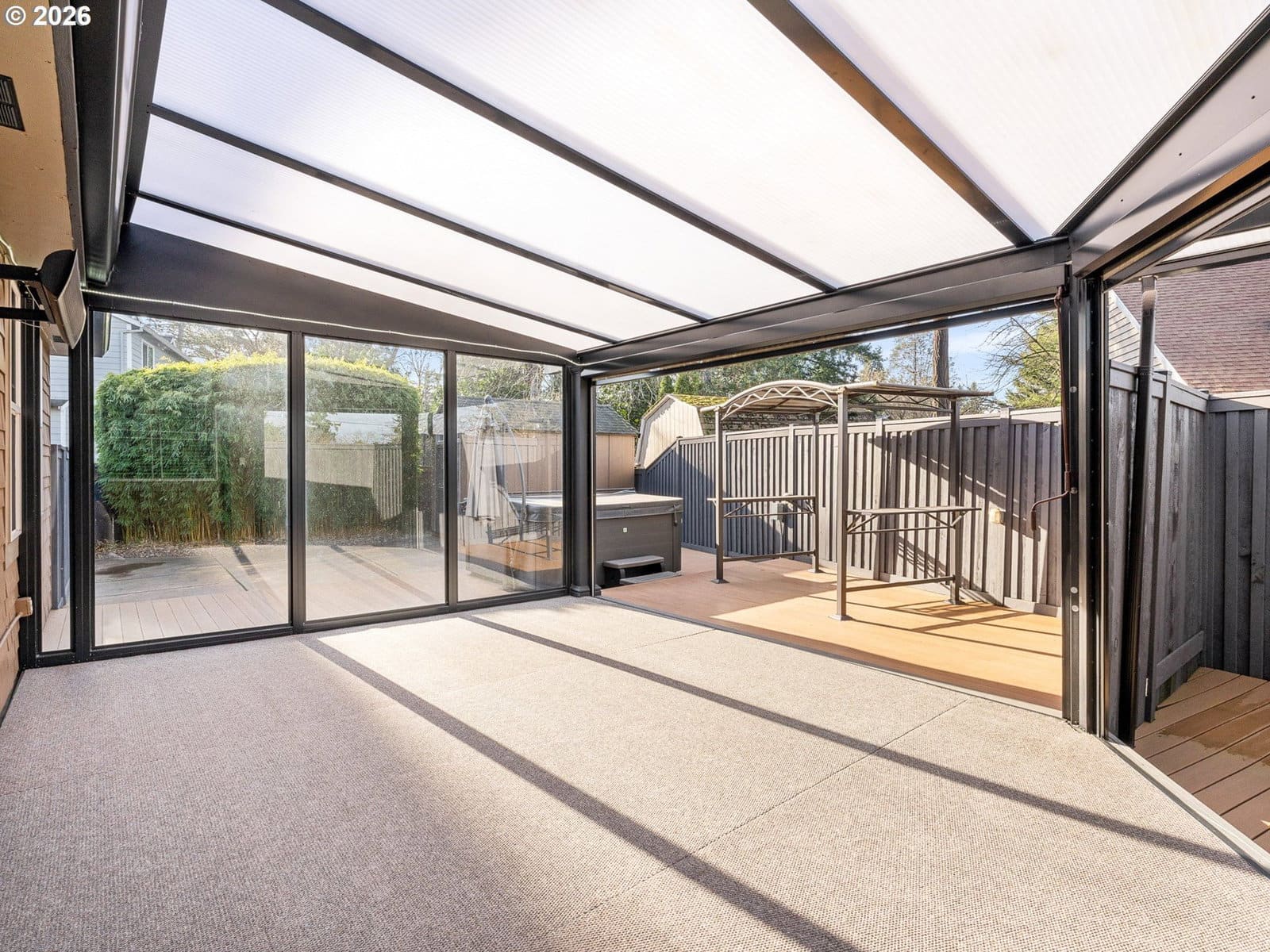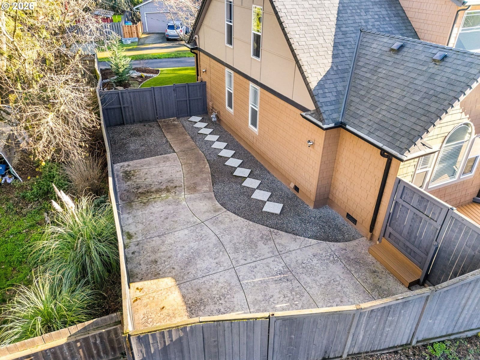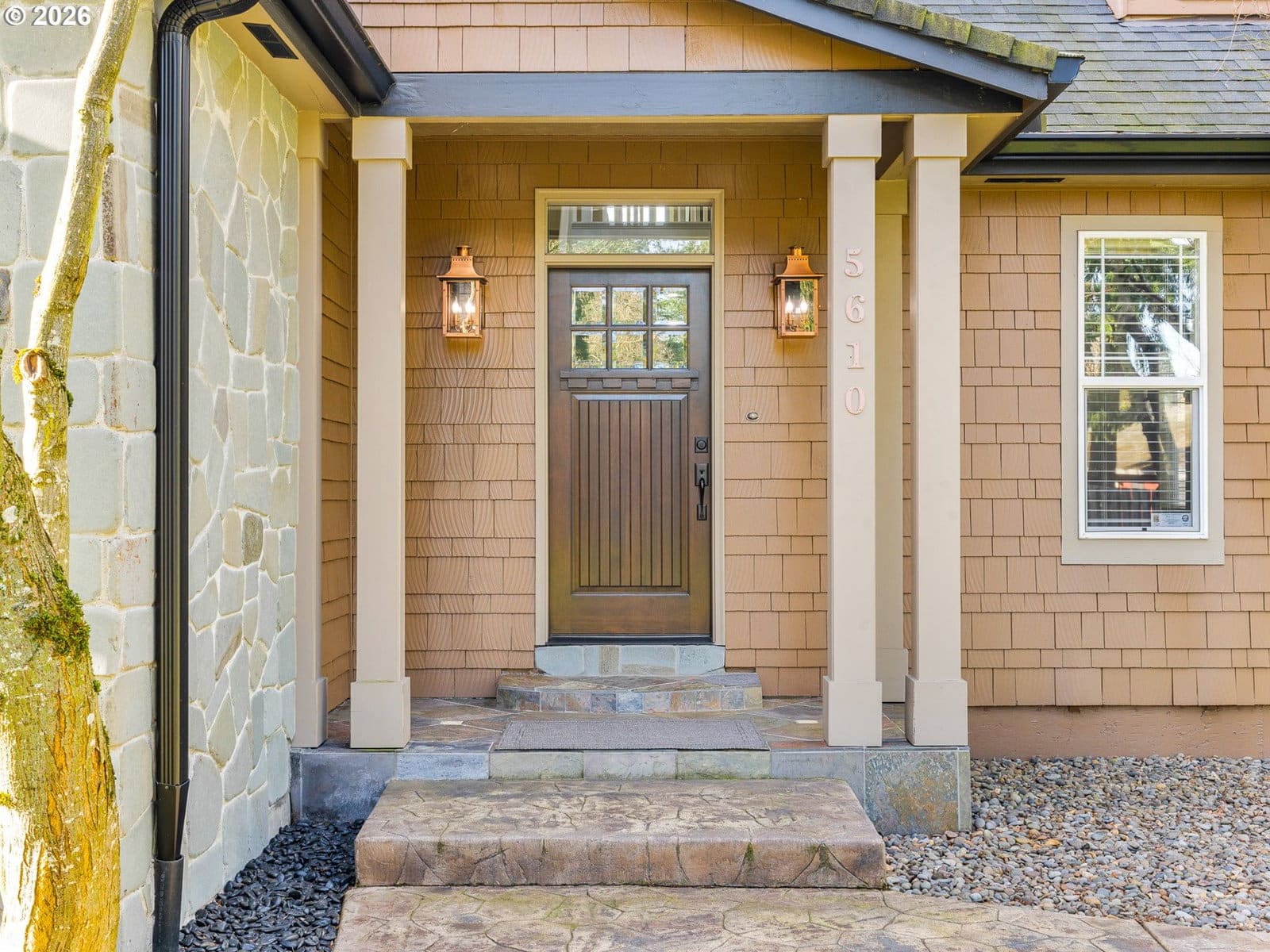 Hello from NE Going Street! I’m a meticulously maintained Storybook English–inspired home, set quietly back from the street and accessed by a private drive, offering privacy on a generous 10,000 square foot lot. With 2,764 square feet across two levels, I support long-term living, work-from-home needs, and flexible lifestyles. A highly desirable feature, I offer a true primary suite on the main level for single-level living if desired. This retreat includes a fully tiled walk-in shower, walk-in closet, and nearby half bath. A centrally located full laundry room with built-in cabinetry adds everyday convenience. My kitchen features stainless steel appliances, a gas range, generous cabinetry, and a large island with eat bar, complemented by both a casual dining nook and a separate formal dining area. Toward the back of the home, the family room opens with high vaulted ceilings for a true great room feel, anchored by a gas fireplace and enhanced by an integrated sound system, ideal for everyday living and entertaining. Upstairs are three additional bedrooms and one full bathroom, offering flexibility for guests, home offices, or hobbies. I’ve been refreshed with new interior paint, updated lighting, new electrical, Ecobee smart thermostat, and a recently refreshed exterior fence stain, reinforcing my move-in-ready condition. Outdoor living stands out with an expansive deck, a fully enclosed three-season patio with heater, oscillating fan, and adjustable lighting, and a three-year-old Clearwater spa included. The yard is designed for low-maintenance living with stamped concrete, composite decking, synthetic turf, and a separate storage shed. I also offer an oversized attached two-car garage with built-ins and RV parking or potential ADU space, buyer to verify. Thoughtfully updated, meticulously maintained, and intentionally priced to reflect location while delivering exceptional overall value, I’m ready to welcome you home. [Home Energy Score = 5. HES Report at https://rpt.greenbuildingregistry.com/hes/OR10237653]