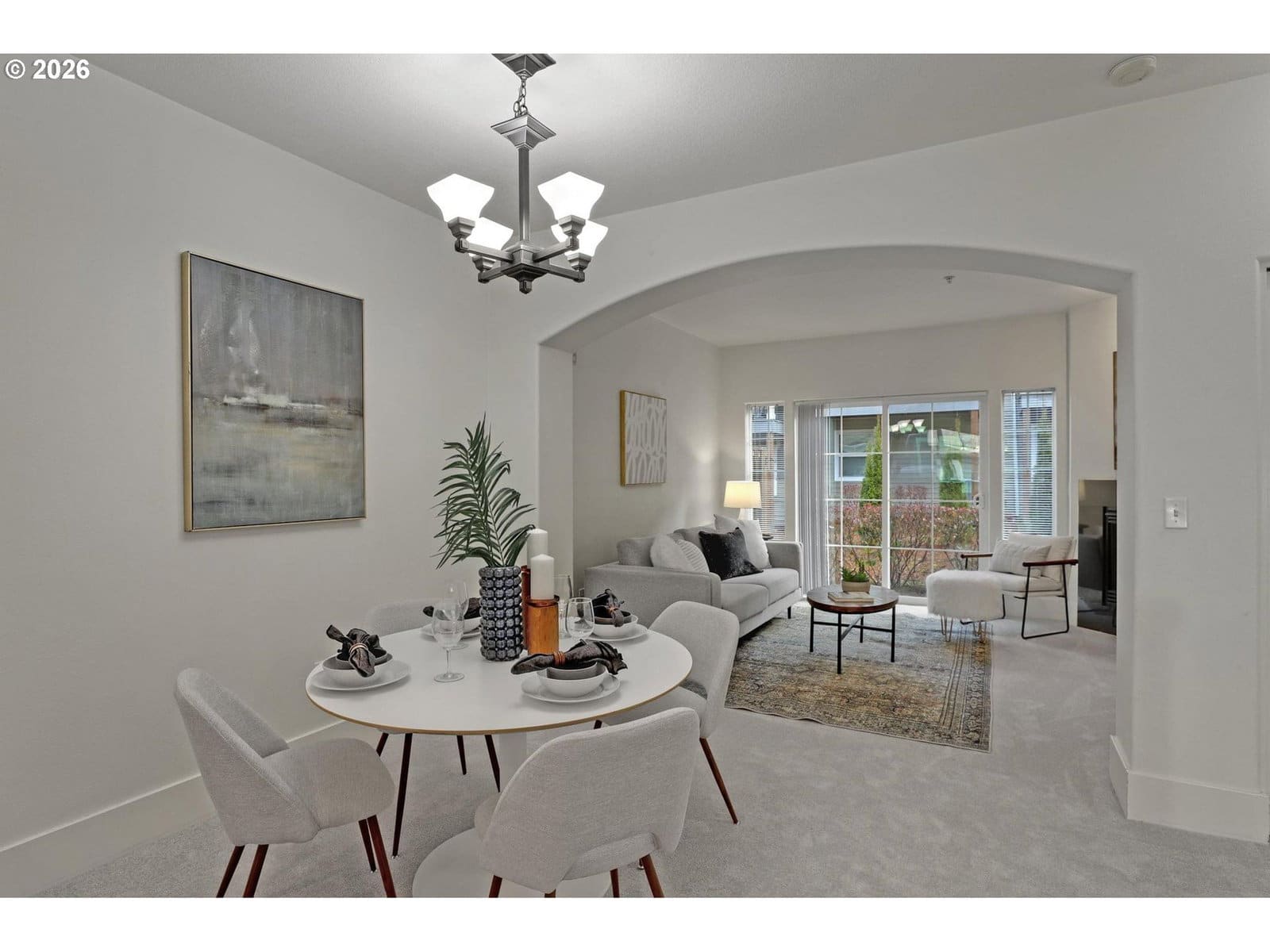 Style, comfort, and location come together at Timberland Reserve. This light-filled townhome-style condo features an open floor plan that lives large, with fresh interior paint and new carpet throughout. The spacious kitchen offers stainless steel appliances, gas cooking, granite counters, subway tile backsplash, and wood floors— seamlessly connecting to the dining and living areas. Cozy up by the gas fireplace or step out to the patio for peaceful neighborhood views. Upstairs includes two generous bedroom suites, including a primary retreat with soaking tub, plus a convenient main-level powder room. Attached two-car tandem garage, plus easy and plentiful guest parking just steps away. Set in a beautifully maintained, master-planned community with trails, manicured grounds, and easy access to shopping, dining, Market of Choice, top-rated schools, St Vincent Hospital, Hwy 217/26, the tech corridor, and downtown Portland. Easy living in one of the most desirable 97229 locations — welcome home!