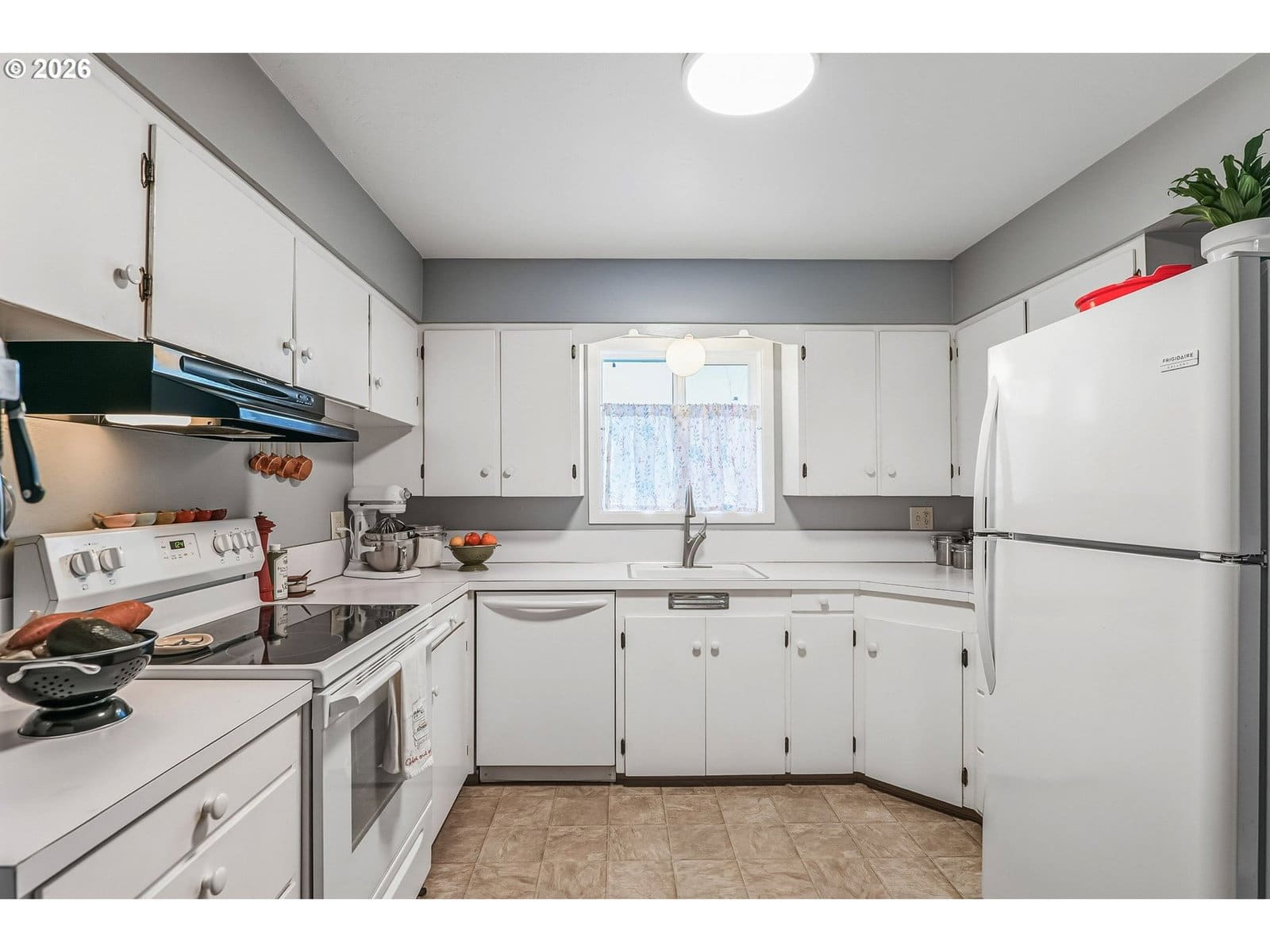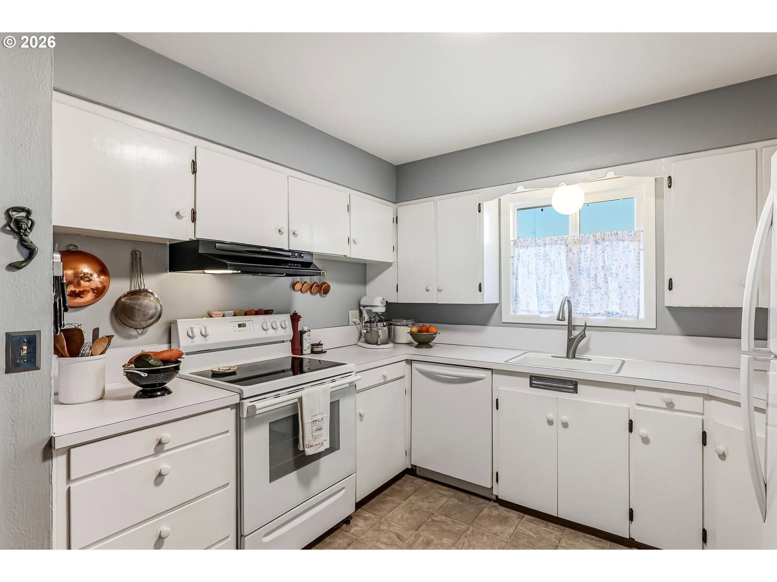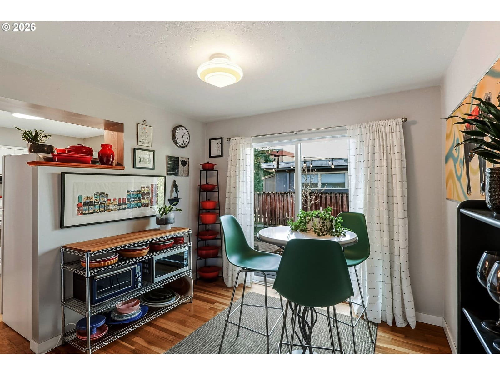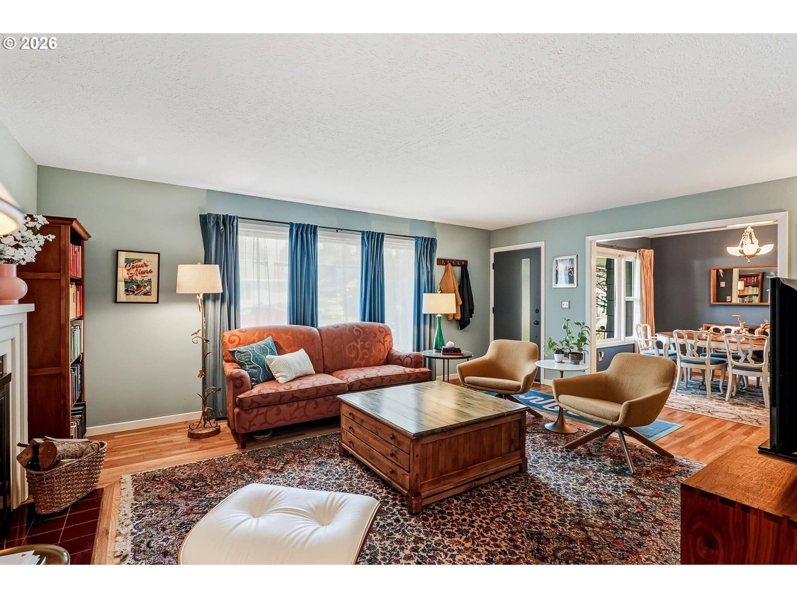Charm and natural light abound in this delightful one-level mid-century ranch, ideally located just blocks from Downtown Milwaukie. Enjoy the best of both worlds, classic vintage character paired with a hip location near shops, coffee, and restaurants, including the newly opened Friem Brewery, plus the Farmers Market, New Seasons Market, food carts, the MAX line, and the riverfront. Providence Hospital is just blocks away, making commuting a breeze. Warm hardwood floors and a thoughtful mix of original details and tasteful updates create an inviting atmosphere. Cozy up by the delightful wood-burning fireplace with a cup of tea and your favorite book. The dining room is perfectly suited for everyday living and effortless entertaining. Vintage lighting fixtures blend beautifully with modern touches, adding personality throughout. Just off the kitchen, “The Sunny Room” with a slider to the backyard offers flexible living space and could easily be converted back to a third bedroom. Outside, the spacious, fully fenced backyard is ideal for summer BBQs, gardening, or relaxing evenings, featuring a recently added patio and planter beds. The attached garage with ample storage plus generous off-street parking add everyday convenience. Recent peace of mind updates include a new roof (2019), additional insulation (2018) and interior and exterior paint (2021). With single-level living and a sought-after location near vibrant parks, schools, shopping, entertainment, and transit, this home is rich with charm, history, and lifestyle appeal - a true Milwaukie gem and a must-see!