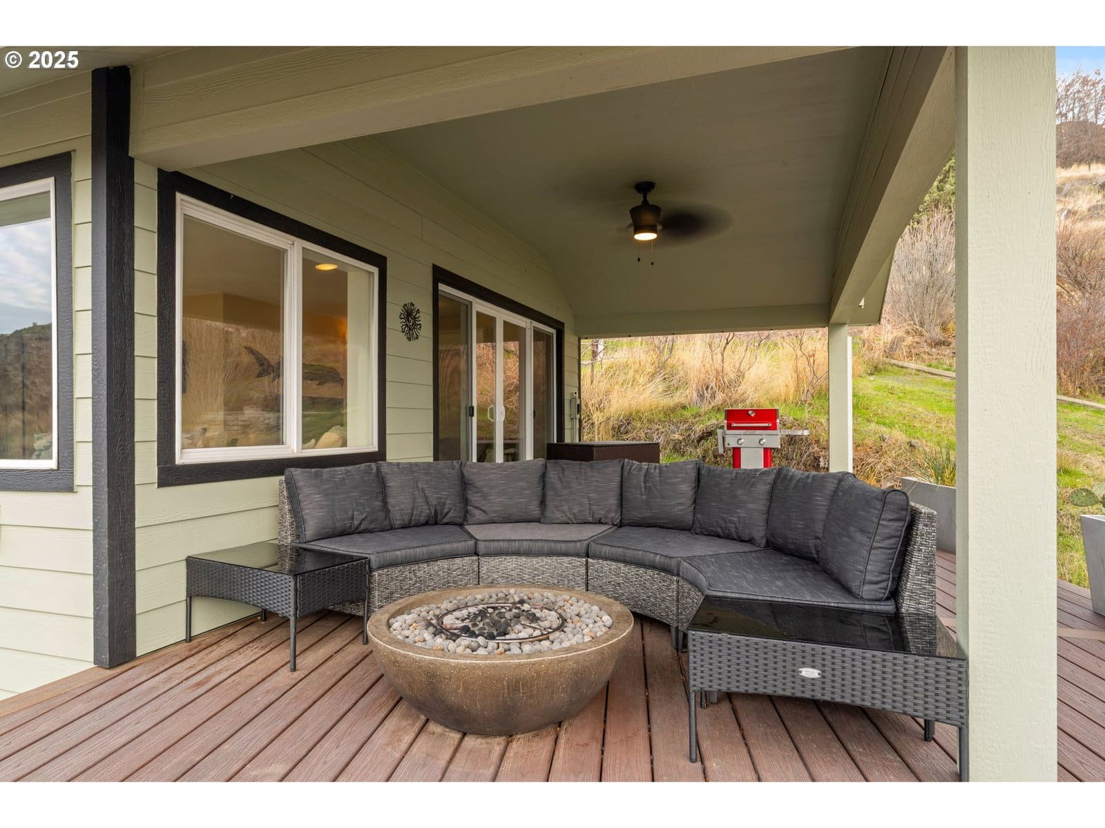 Escape to your own Gorge retreat overlooking the bluffs and the Columbia River. This fully furnished 2-bedroom, 1-bath cottage offers 820 sq ft of light-filled living space designed for relaxation, nature watching, and peaceful getaway living.Perched above the river, the home features recent exterior upgrades including a newer metal roof, fiber-cement siding, new gutters, solar panels, and low-maintenance Trex decking. The wraparound deck captures sweeping views and includes a built-in stainless-steel hot tub plus two built-in propane fire pits, perfect for cozy evenings and unwinding under open skies.Inside, the cozy living room is framed by large picture windows that look out across the bluffs—a perfect spot to watch wildlife, sunsets, and the changing seasons. Carpeted bedrooms and living room create comfort, while tile flooring in the kitchen, hallways, and bathroom offers durability for an easy-care lifestyle. The updated bathroom features a tile shower, and efficient mini-splits keep the home comfortable year-round.Whether you’re seeking a weekend getaway, a furnished second home, or a ready-to-rent vacation retreat, this charming cottage delivers tranquility, views, and the true Columbia River Gorge experience.**GPS will not take you directly to house because they have turned it into a one way st. From Hwy 14, once you take a right on Boulder, take a right on Ross st, Right on Bluff rd, left on Fallbridge Rd. When leaving you will back out, turn left out of Fallbridge down the one way and will take you back around through town to Boulder Rd. **Sellers will pay off solar panels prior to close.