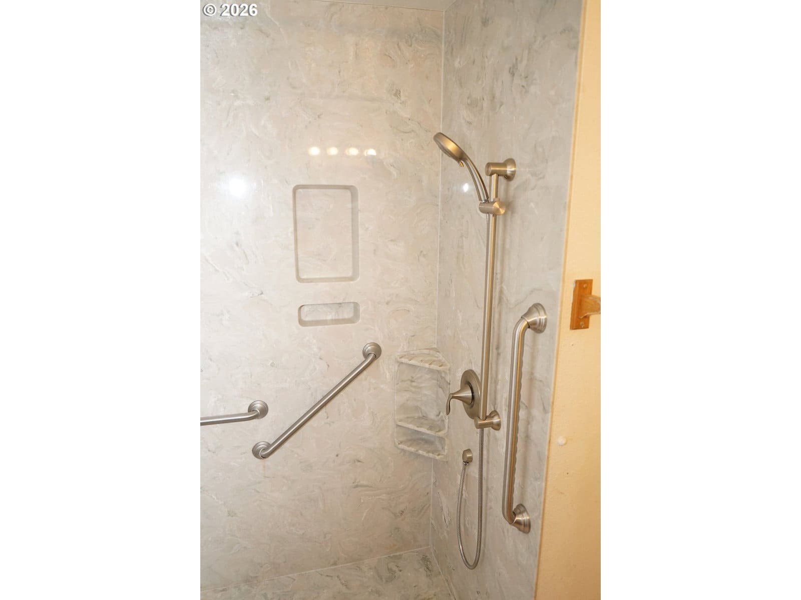 Set on a corner parcel, this Springfield property delivers practical upgrades, energy-conscious systems, and flexible spaces designed for modern living. A solar array installed in 2021 generates up to 5 kWh, helping maintain average utility costs approx $140 per month. Climate control is handled efficiently with a Daikin ductless heat pump and pellet stove, while a generator hook-up adds an extra layer of reliability.Inside, the home is entirely carpet-free, featuring durable laminate flooring throughout all three bedrooms. The bathroom has been redesigned for both style and accessibility, offering a roll-in/walk-in shower with grab bars, an adjustable showerhead, and built-in shelving. A streamlined galley kitchen provides contemporary appliances and plentiful storage, and the home’s truss-built framework allows for straightforward conversion to an open-concept layout if desired.The exterior is equally functional, with a newly paved driveway offering RV parking and a covered patio suitable for year-round use. A one-car garage includes a dedicated workbench, ideal for projects or additional storage. Enhancing the property further is a 10x20 insulated and electrified Tuff Shed barn (2021), well-suited for creative or work-from-home needs, plus a 6x8 metal garden shed added in 2023.With its efficient systems, versatile outbuildings, and thoughtful layout, this home presents a compelling opportunity for both homeowners and investors seeking long-term value.