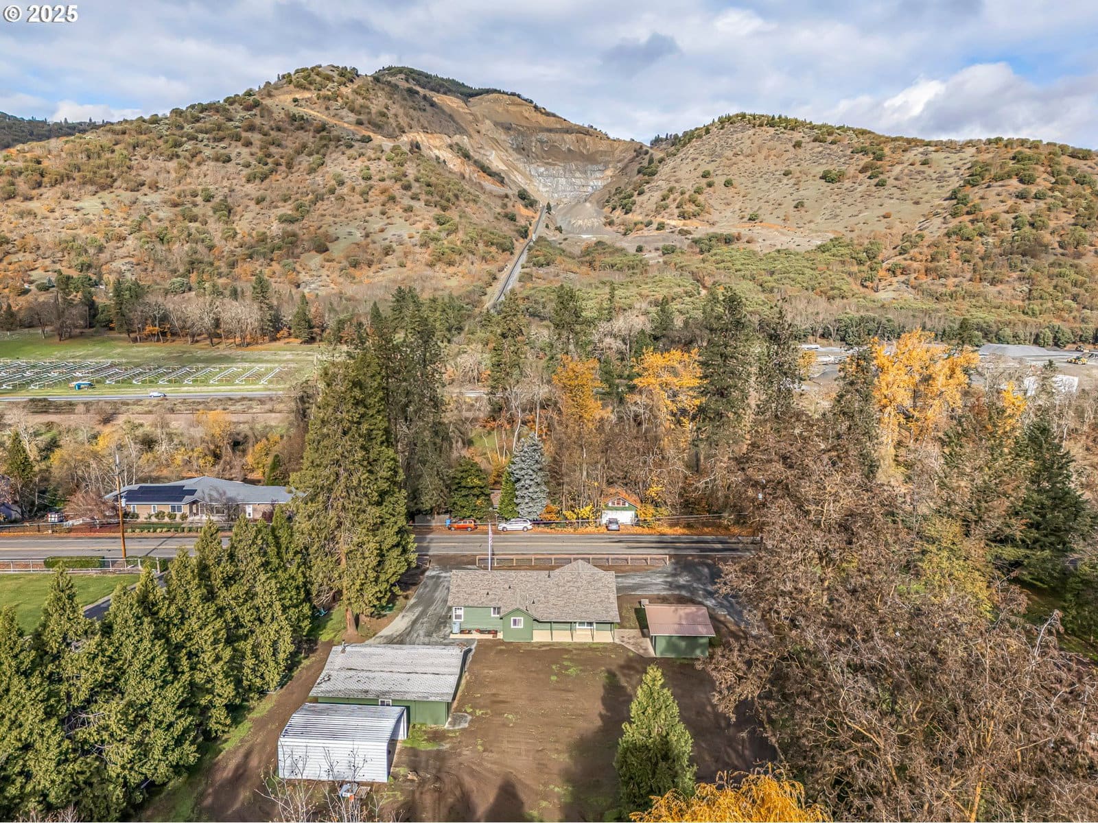 A total of 1,661 sq ft including a 185 sq ft bonus shop space! This beautifully remodeled 3-bedroom, 2-bathroom home sits on 1.04 peaceful acres directly across the street from the scenic Rogue River in Gold Hill. Originally built in 1945 and thoughtfully updated, the home offers 1,476 sq ft of warm, inviting living space with the potential to easily create a 4th bedroom. Surrounded by mature trees and mountain views, it provides both privacy and a true Pacific Northwest atmosphere. The property includes a detached garage, pump house, and a versatile shop perfect for hobbies, projects, or additional storage. Note: The home itself is 1,476 sq ft, plus an additional 185 sq ft from the detached shop, bringing the total usable space to 1,661 sq ft.