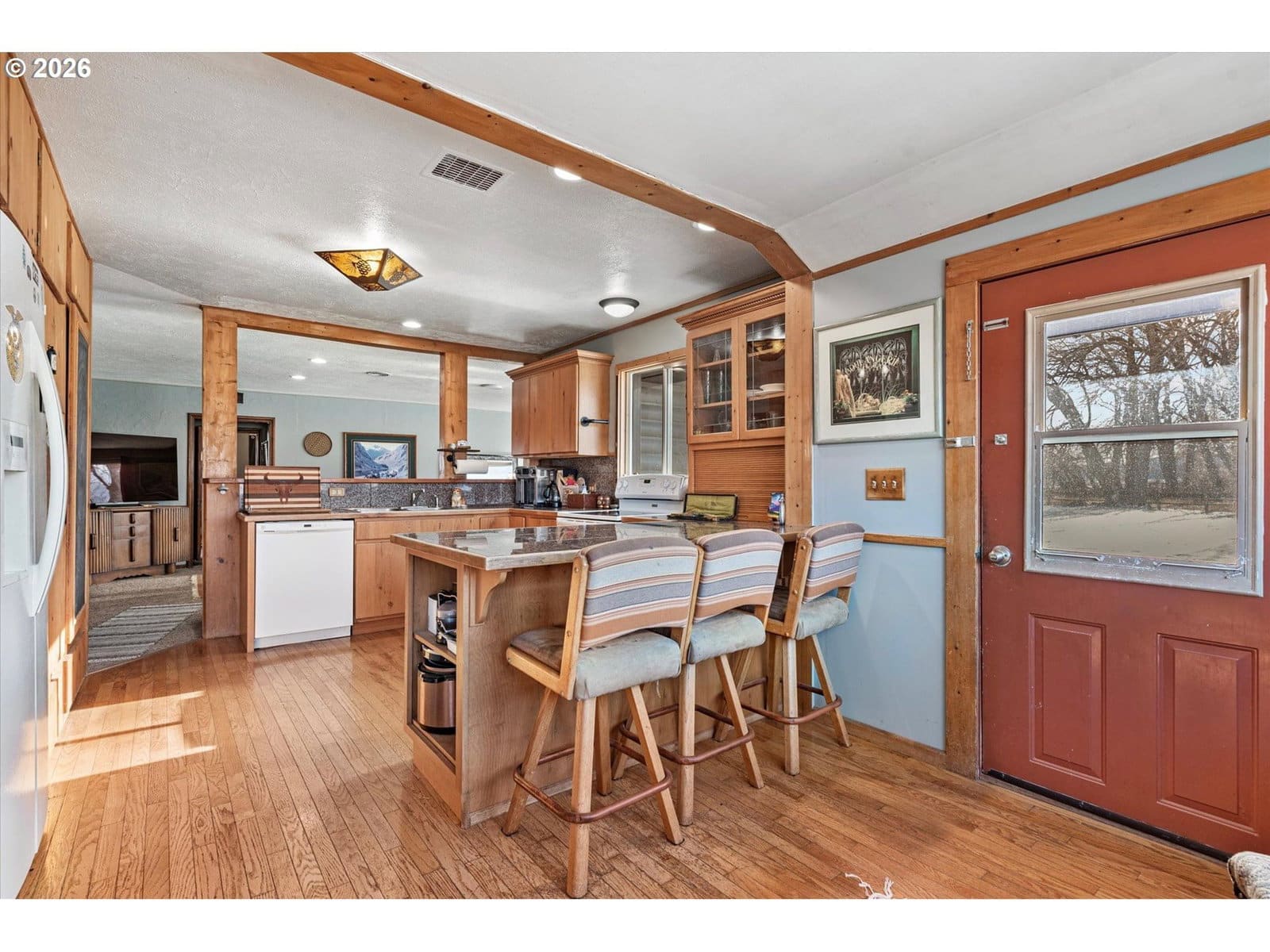 This 4 bedroom, 2 bath home offers rustic character paired with thoughtful upgrades throughout. Inside, warm wood floors and granite countertops complement the inviting interior, while a spacious primary suite on the main level provides comfort and convenience. A dedicated office with built-in bookshelves adds flexibility for work or hobbies. The true highlight is the exterior setting—nestled at the base of the Elkhorn Mountains with sweeping panoramic views that frame the property in every direction. The land is fully fenced and cross-fenced, ideal for horses, and features year-round water along with a peaceful shade tree sitting area perfect for enjoying the scenery. A massive 6,000+ square foot shop with power and heat rounds out the property, offering exceptional space for equipment, storage, or projects of any size.