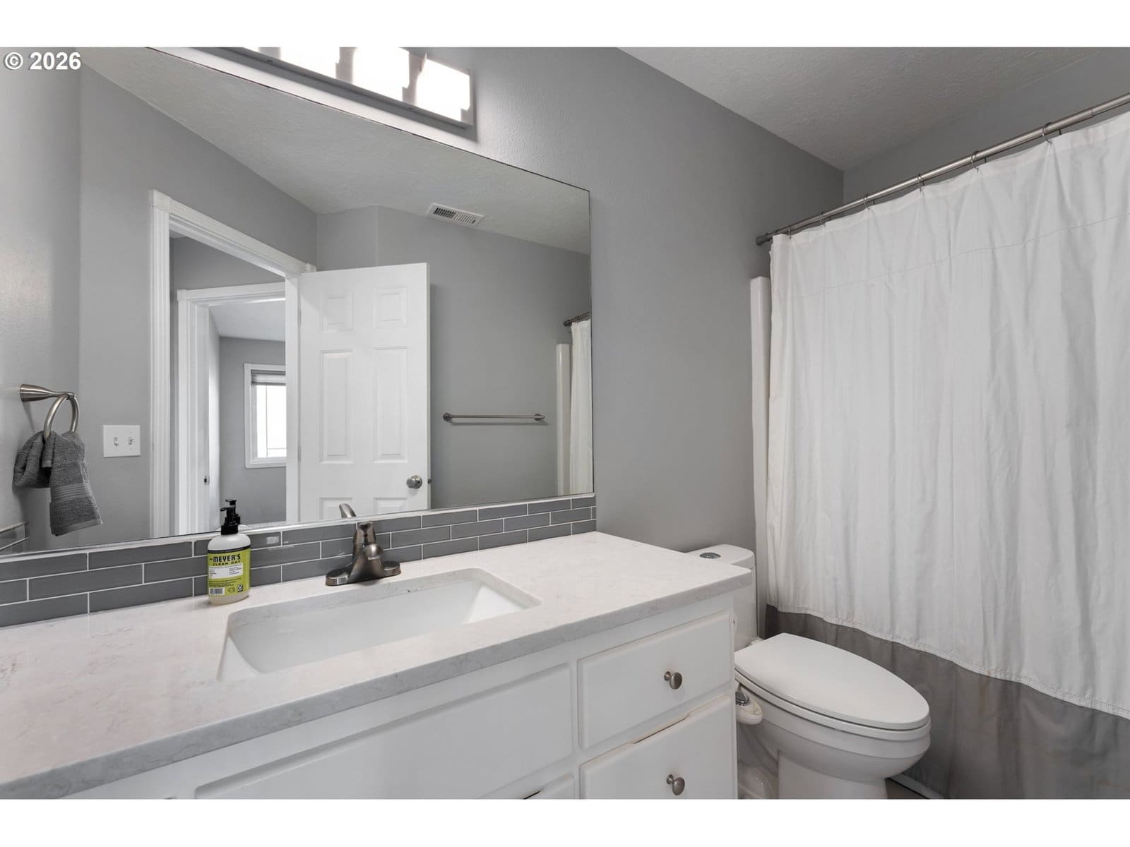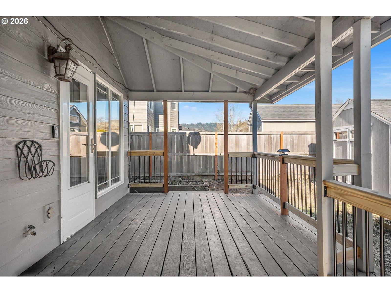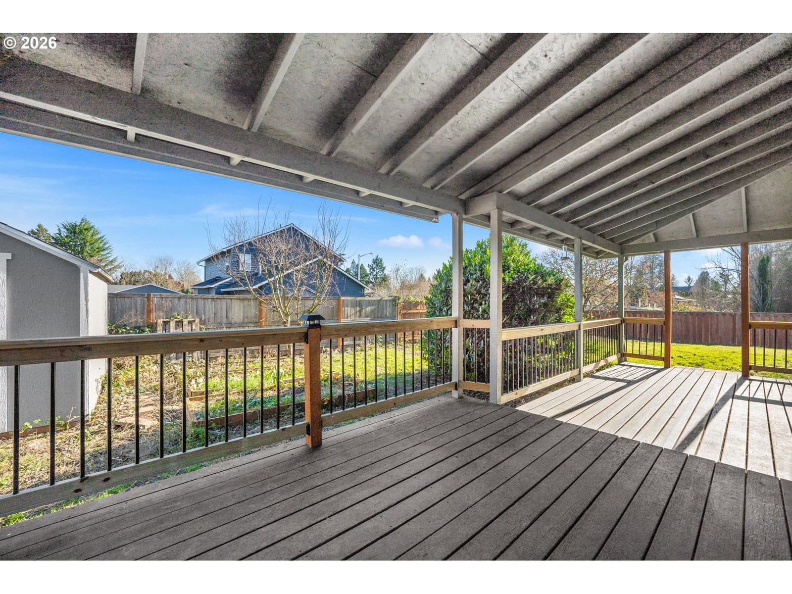 Welcome to this 3-bedroom, 2.5-bath home offering 1,660 sq. ft. of comfortable living space on a spacious corner lot. Skylights and generous windows fill the home with abundant natural light, creating an inviting and open atmosphere. The main level features laminate flooring throughout and a large living room with a soaring 10’ ceiling. The kitchen is designed for both style and function, showcasing quartz countertops, a cook island, eating bar, pantry, and a dining area that opens to a large, covered deck perfect for year-round entertaining. The great room’s gas fireplace adds warmth and charm to the living space. Convenient laundry room has storage cabinets and a quartz countertop. Upstairs, the primary suite includes a walk-in closet and a beautifully appointed ensuite with dual sinks, quartz countertop, a tiled shower, and tile flooring. Additional highlights include a high-efficiency furnace, A/C, and water heater (installed in 2017), an attached two-car garage with workbench, and a fenced backyard with a newer tool shed on a concrete pad. Located in a desirable neighborhood with no HOA, this home offers comfort, efficiency, and value in a great location.