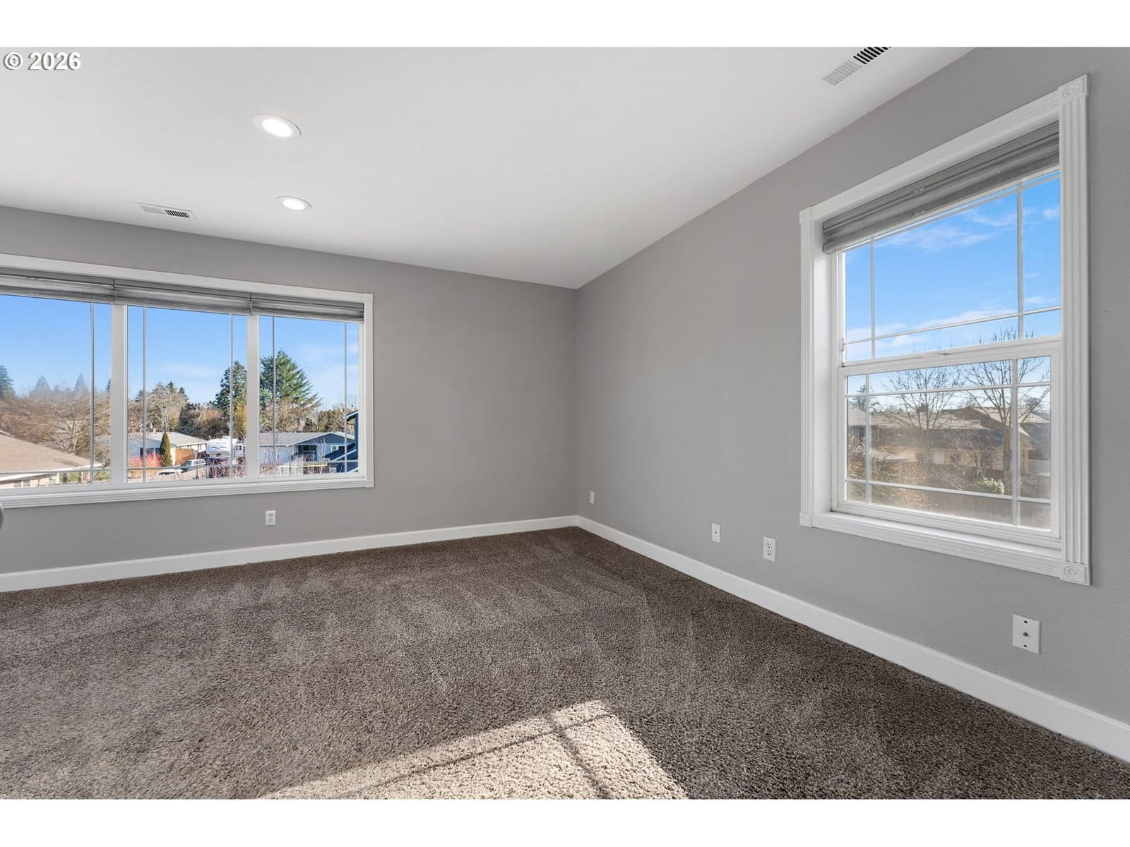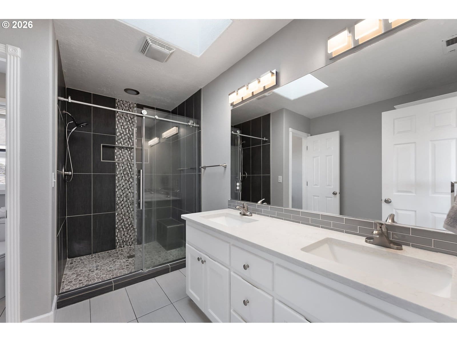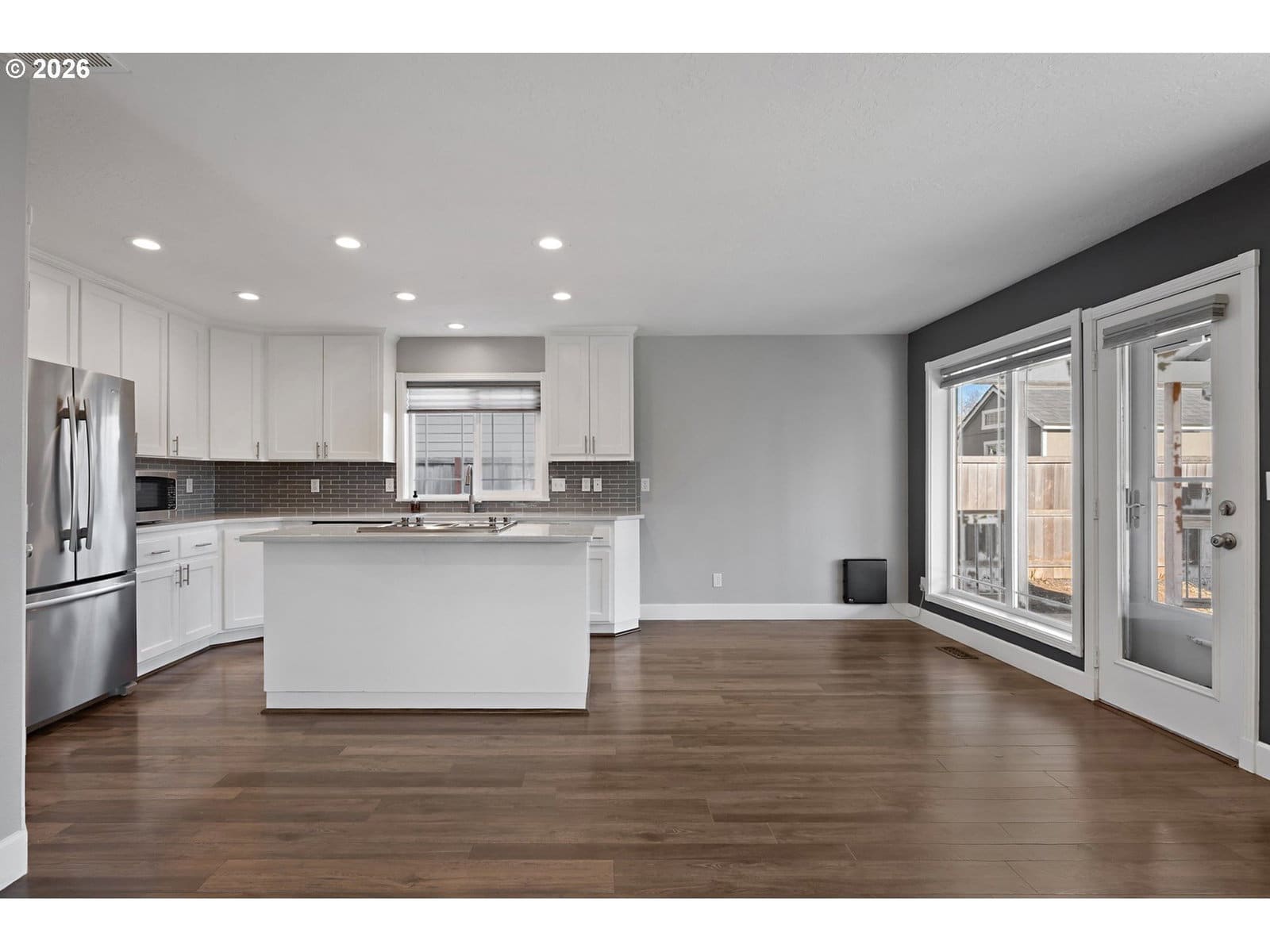 Welcome to this 3-bedroom, 2.5-bath home offering 1,660 sq. ft. of comfortable living space on a spacious corner lot. Skylights and generous windows fill the home with abundant natural light, creating an inviting and open atmosphere. The main level features laminate flooring throughout and a large living room with a soaring 10’ ceiling. The kitchen is designed for both style and function, showcasing quartz countertops, a cook island, eating bar, pantry, and a dining area that opens to a large, covered deck perfect for year-round entertaining. The great room’s gas fireplace adds warmth and charm to the living space. Convenient laundry room has storage cabinets and a quartz countertop. Upstairs, the primary suite includes a walk-in closet and a beautifully appointed ensuite with dual sinks, quartz countertop, a tiled shower, and tile flooring. Additional highlights include a high-efficiency furnace, A/C, and water heater (installed in 2017), an attached two-car garage with workbench, and a fenced backyard with a newer tool shed on a concrete pad. Located in a desirable neighborhood with no HOA, this home offers comfort, efficiency, and value in a great location.