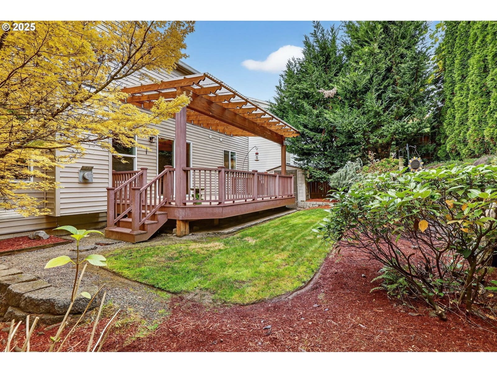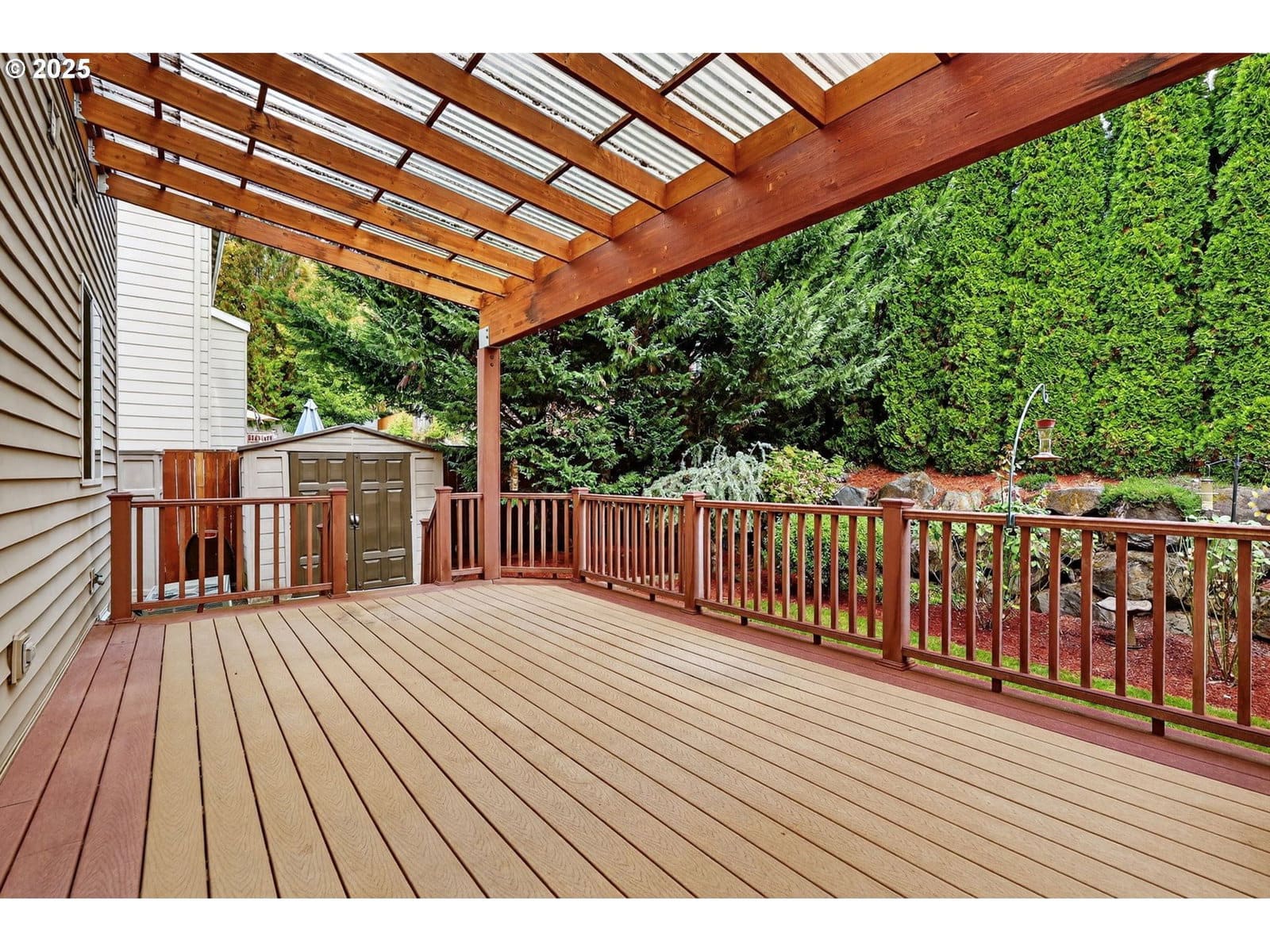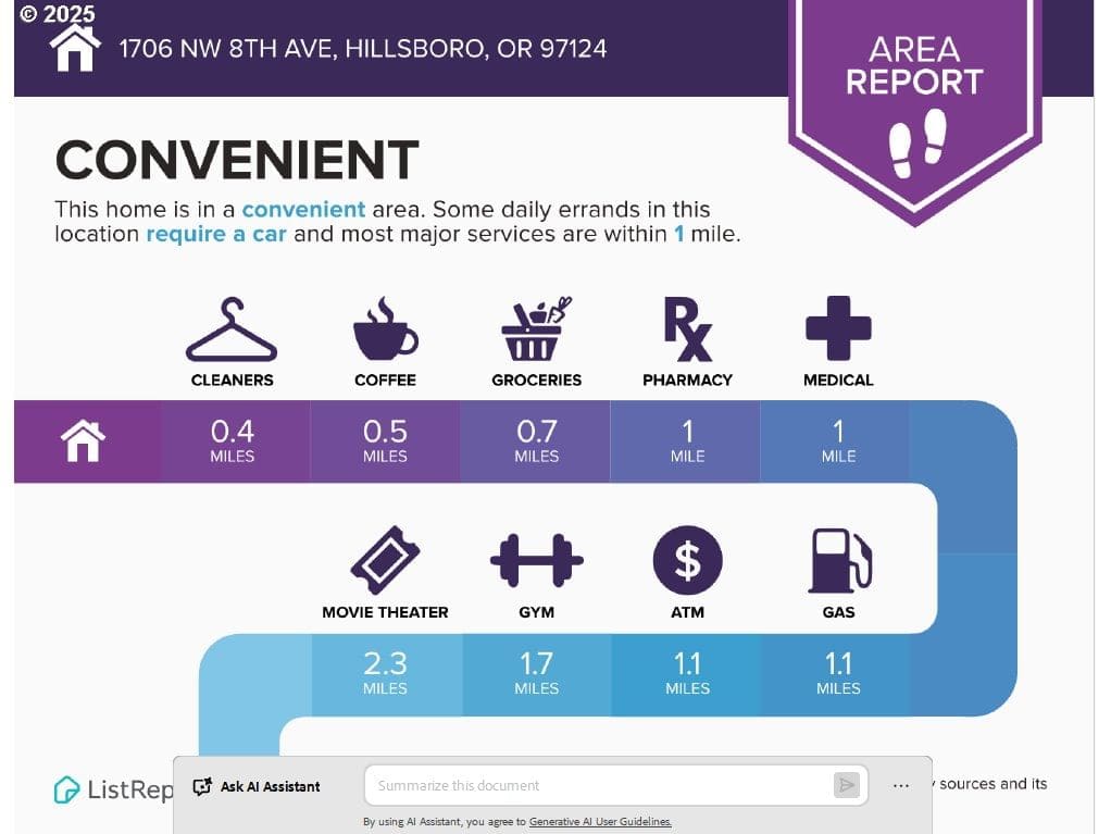 Beautiful large home in desirable Alderbrook neighborhood with gorgeous bonus room! All bedrooms on upper level with newer carpet, main level features wood-style floors and open layout. Living room at entry leads to spacious kitchen, dining, and family room area. Family room includes cozy gas fireplace. Dining area has ceiling fan and slider to large covered Trex deck – perfect for year-round entertaining! Kitchen features granite counters, pantry and all appliances included. Convenient half bath on main. Upstairs offers amazing bonus/game room with stunning stamped copper vaulted ceiling – pool table stays! Primary suite includes ceiling fan, walk-in closet and ensuite bath. Upstairs laundry room with washer and dryer included. Enjoy comfort and efficiency with gas heat and central A/C. Major updates: new roof and new flooring & bathrooms remodeled in 2023! Private, low-maintenance fenced backyard surrounded by trees for added privacy. Storage shed stays. Attached 2-car garage with opener provides plenty of storage and parking. Fantastic location just ½ block to neighborhood park. Minutes to schools, McKay Creek Golf Course, multiple Intel campuses, downtown Hillsboro dining, shopping, entertainment, and MAX light rail.Move-in ready, beautifully maintained, and full of features for today’s lifestyle. Enjoy open living spaces, indoor/outdoor entertaining, and easy access to everything Hillsboro has to offer! [Home Energy Score = 6. HES Report at https://rpt.greenbuildingregistry.com/hes/OR10242552]