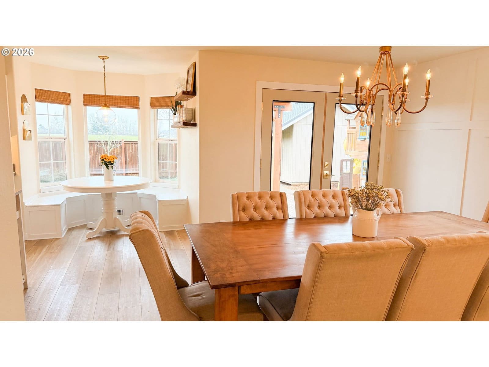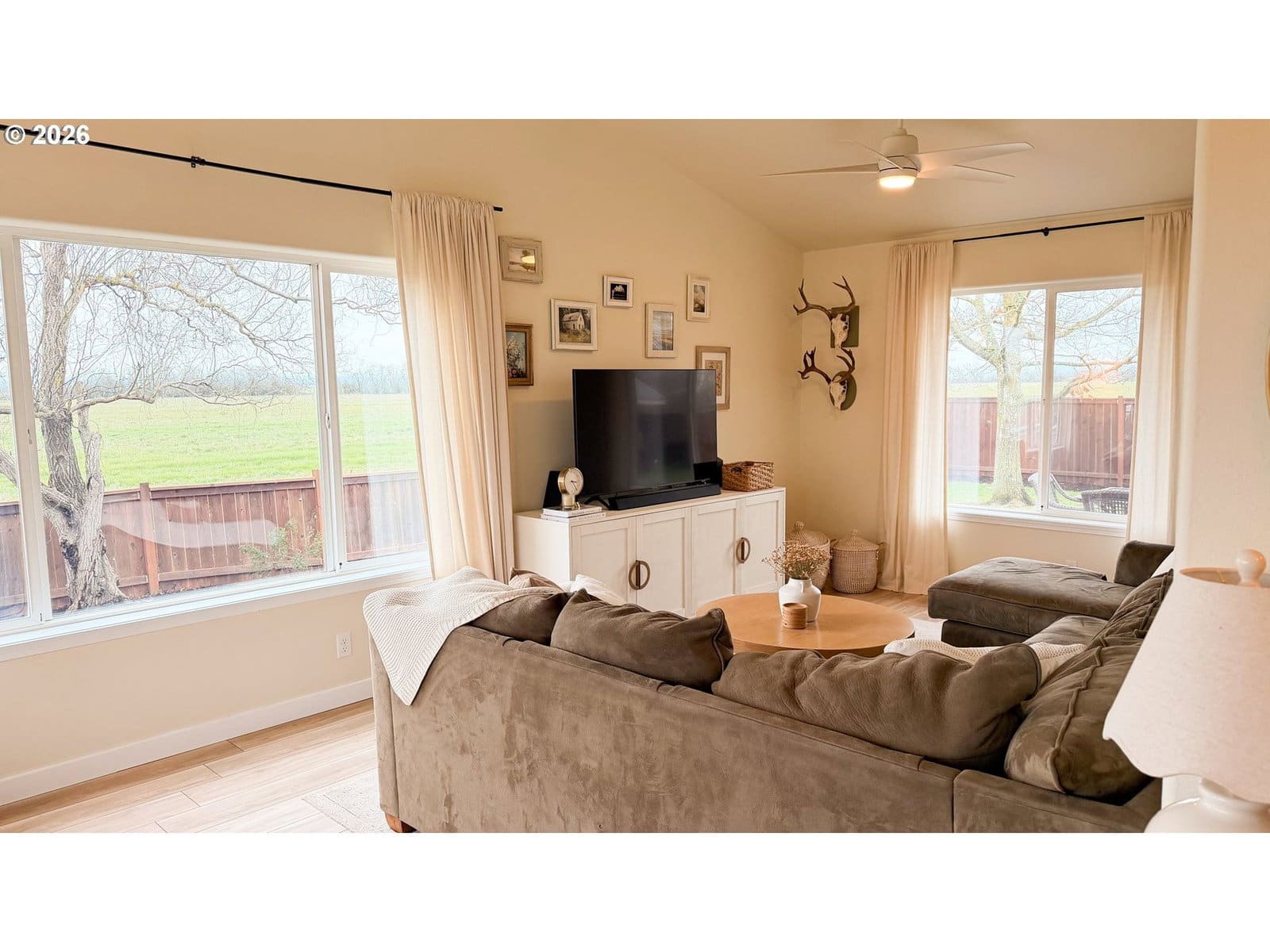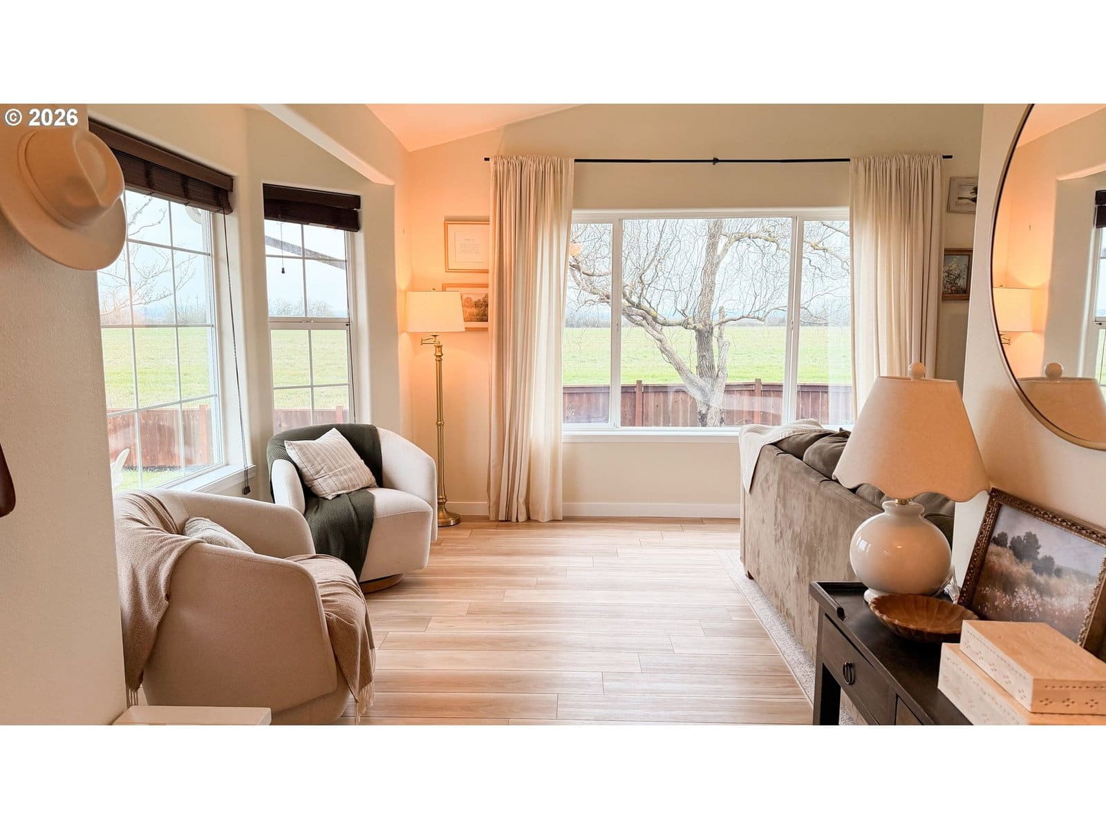 Rare opportunity in Harrisburg at the end of a dead end street. This meticulously cared for home has great privacy as it borders a farm field and has great peaceful views of the sunrise over the valley and the Coburg hills. The well appointed kitchen is perfectly centralized to the family room, dining room, and living room. Up the stairs, you will find three bedrooms and two full baths, including an ensuite primary bedroom. There is an extra half bath located on the main floor. The home is nicely updated with newer LVP flooring, a brand new furnace and AC unit last summer, a whole house water filtration system and reverse osmosis for drinking water, and a newer roof. Step out back through your French doors to a beautiful timber framed cover over your back deck. Enjoy the large fenced backyard with underground sprinklers, raised beds and blueberry plants, as well as a very nice 10 x 14 stick built shed with a metal roof. Top it off with an RV parking area and everything in place for electric hook up, and you have a wonderful private family home with all of the bases covered.