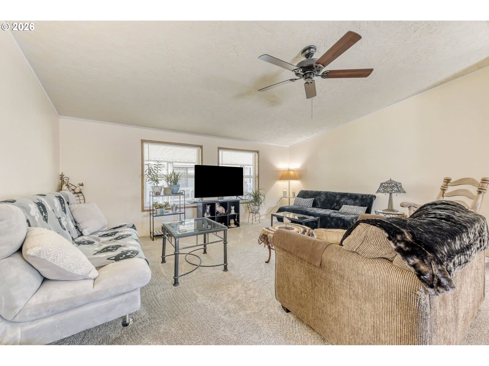 Welcome home to this well maintained double-wide manufactured home in Linwood Estates, a desirable 55+ community in Milwaukie. This home offers 3 bedrooms and 2 bathrooms with a functional layout and comfortable living spaces throughout. Spacious living and dining areas feature vaulted ceilings and a ceiling fan. The kitchen includes ample cabinetry and storage, dishwasher, range, large pantry and eating area with a separate laundry room nearby. The private primary suite is tucked away from the secondary bedrooms and includes a walk-in closet, attached bathroom with a tub/shower combo and built-in shelving for added storage. Down the opposite hallway are two additional bedrooms, both with walk-in closets and a full hall bathroom. Recent updates include a newer heat pump, paint, carpet and blinds with the roof replaced approximately in 2020. Enjoy low maintenance outdoor living with a covered front porch/deck, fenced backyard area with a raised garden bed and a tool shed. Covered carport provides parking for two cars. Ideally located close to Downtown Milwaukie, restaurants, parks and public transit. Space rent is $975/month and includes garbage.
