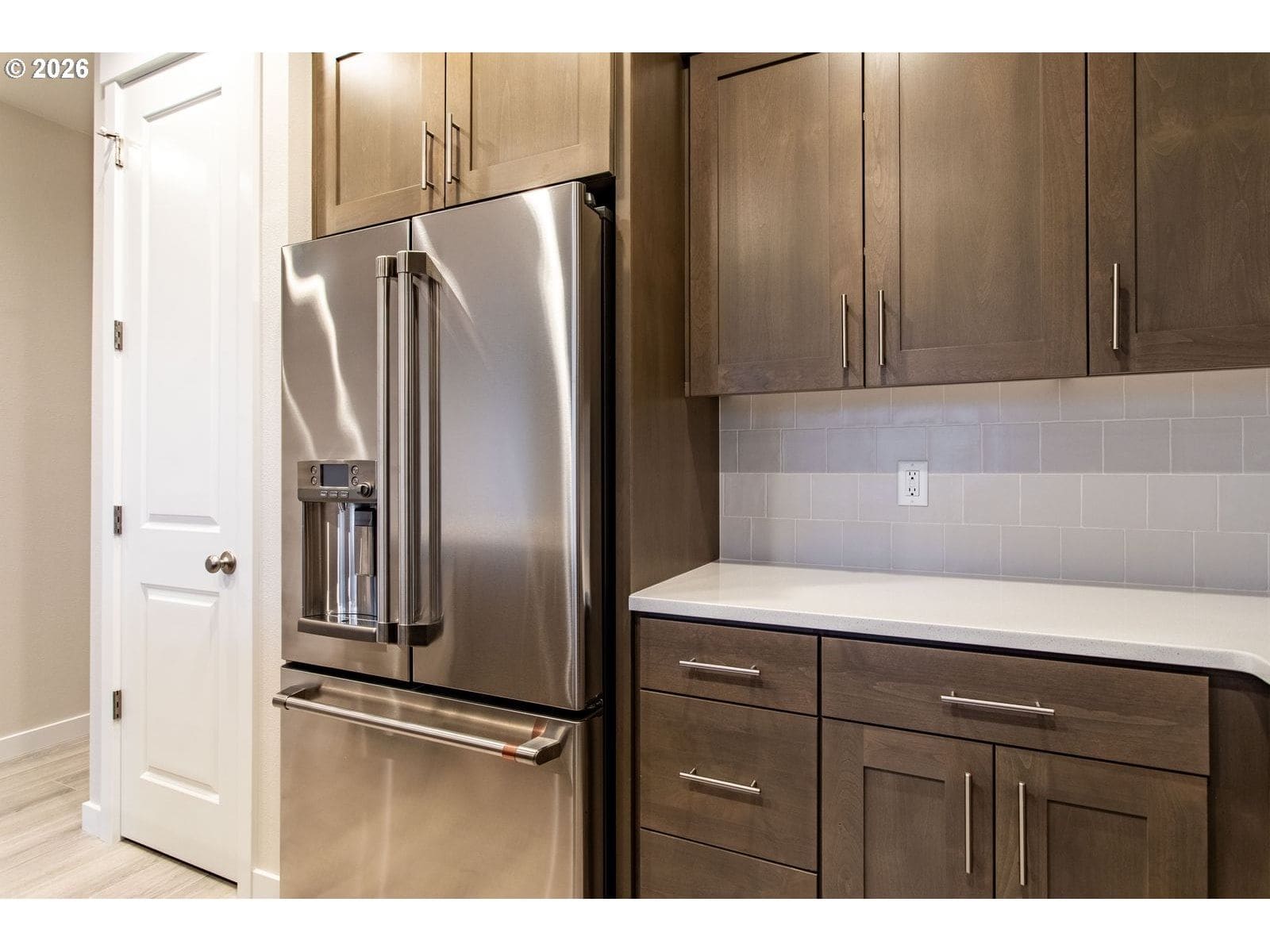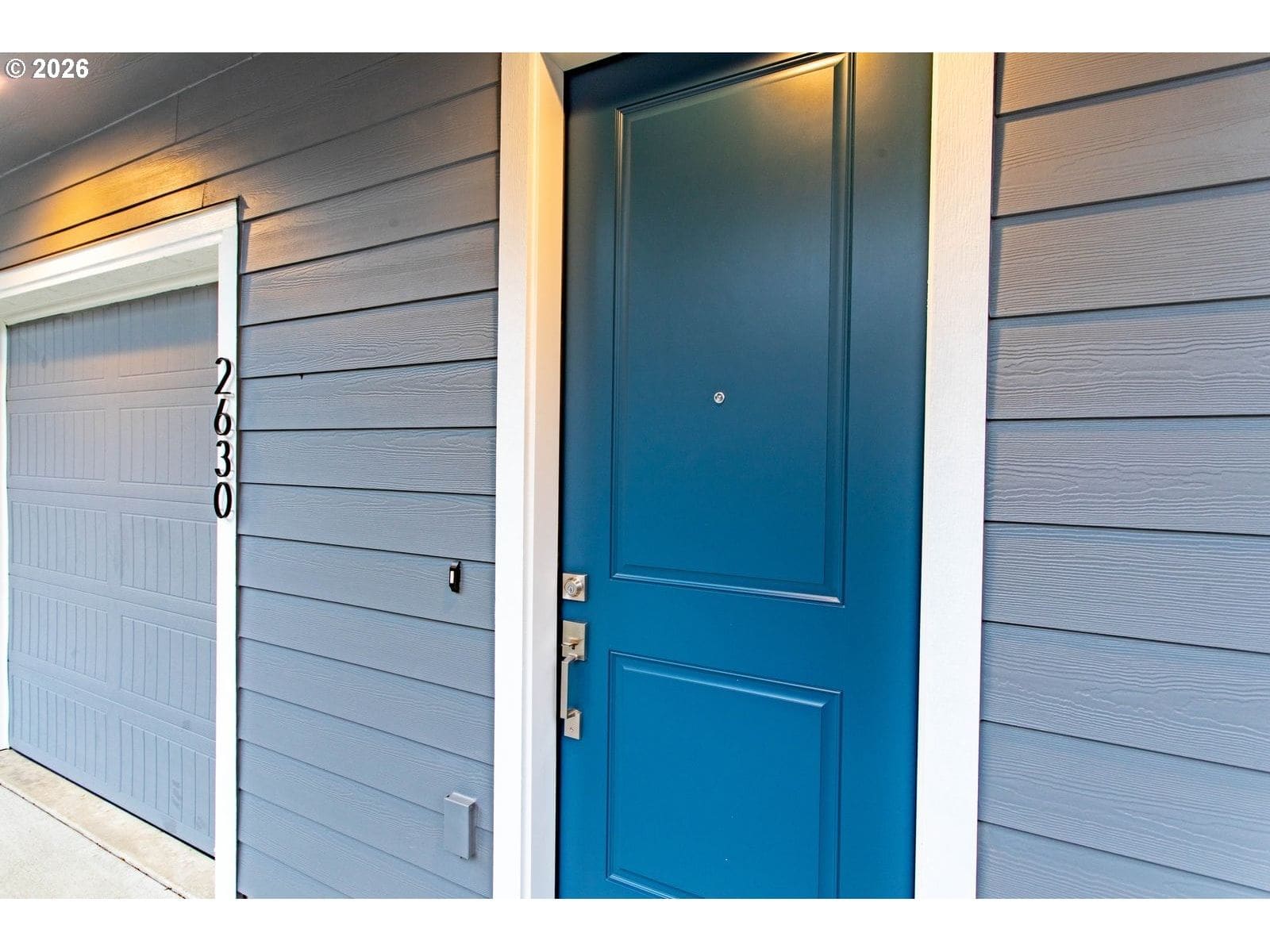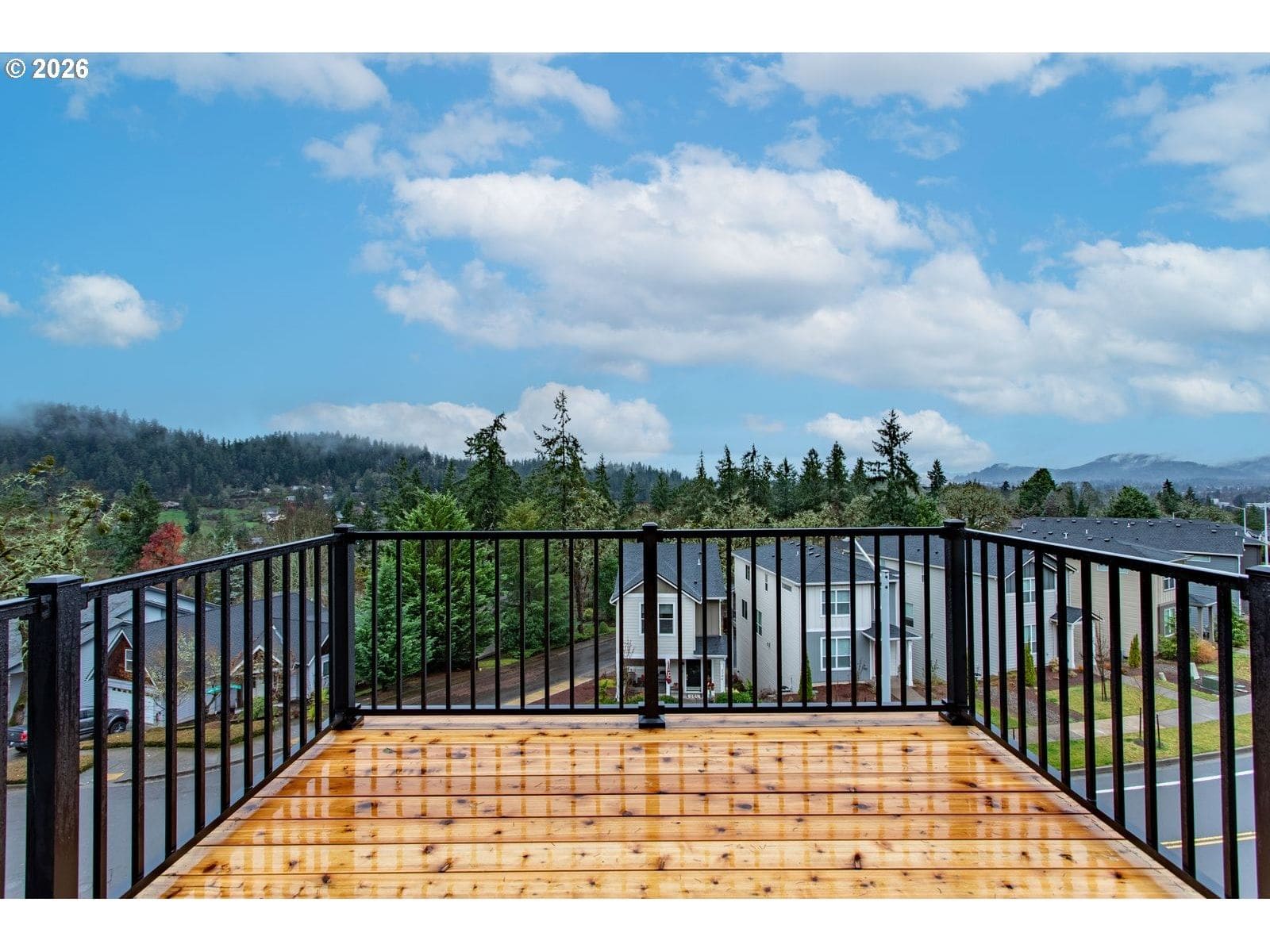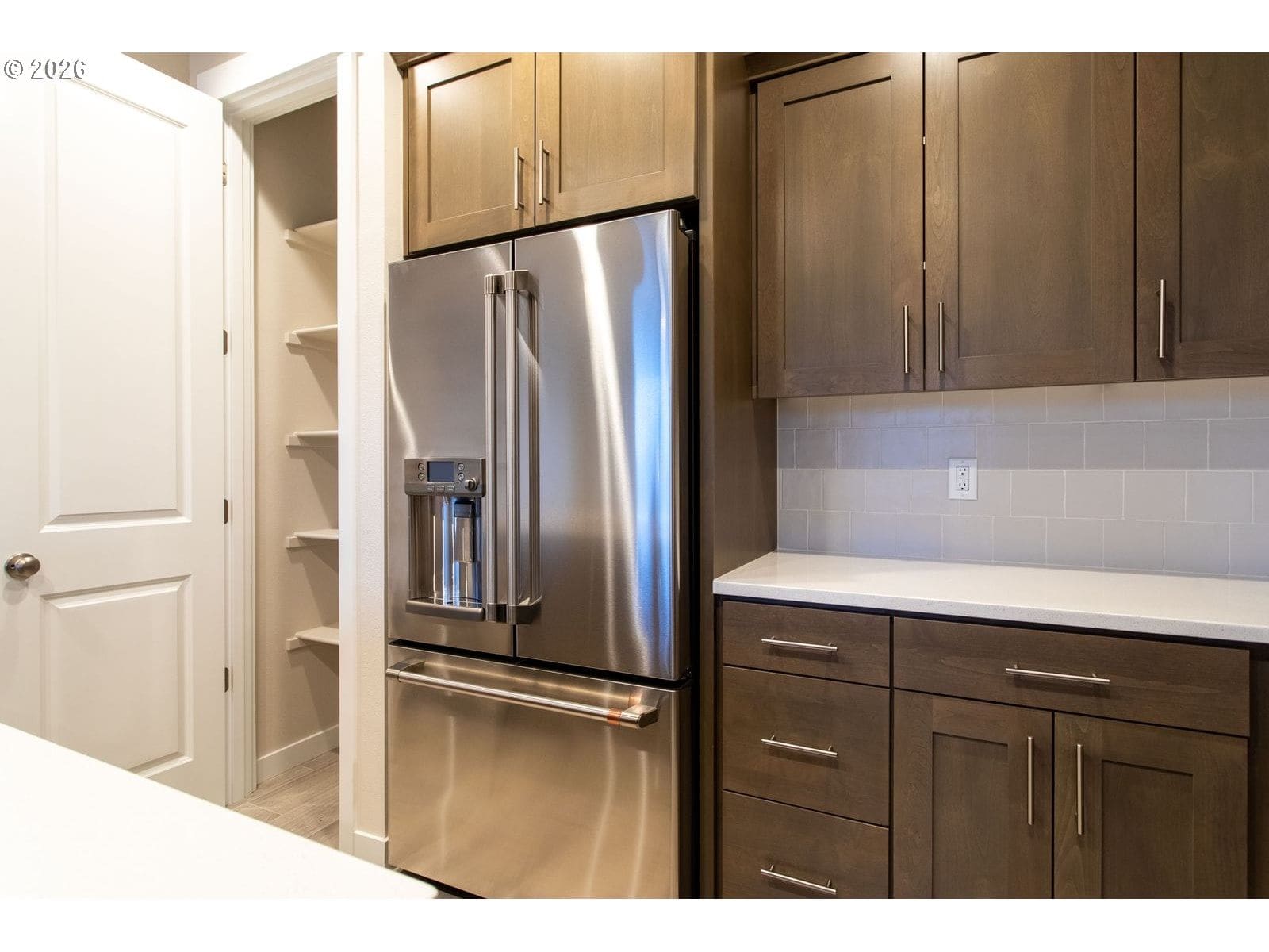 Move in Ready! Spacious town home features three bedrooms and two and a half bathrooms and single car garage complete with prewire for electric vehicle! 9ft ceilings and 8ft doors on the main level. Quartz countertops throughout! Sloped backyard with deck and amazing view! Primary suite features vaulted ceilings, walk in closet with wood shelving! Upstairs laundry. Washer/dryer, fridge and blinds included! Easy access to I-5 and the University of Oregon, make this a great choice for your next Primary or Second home! Photos of actual home!