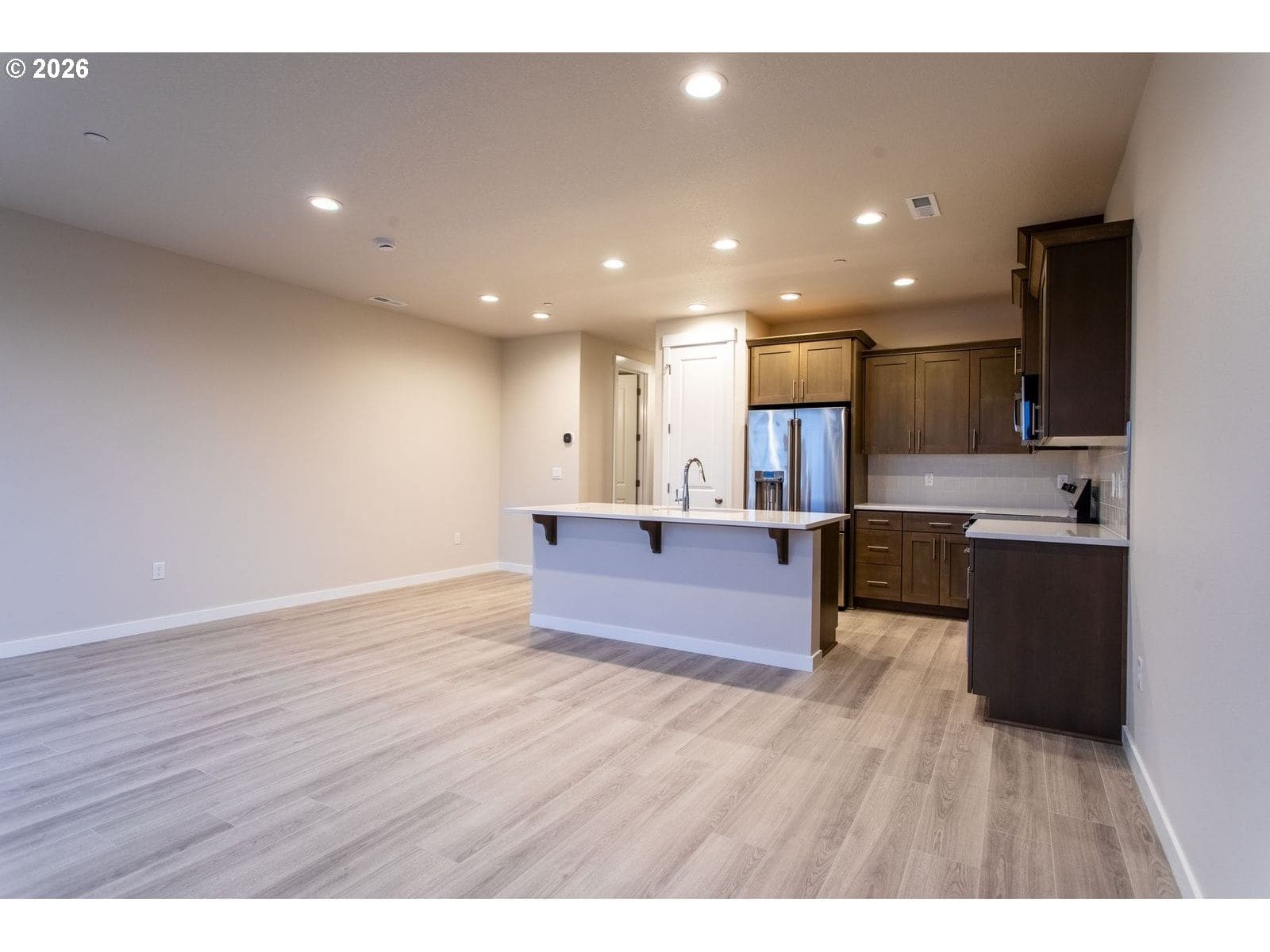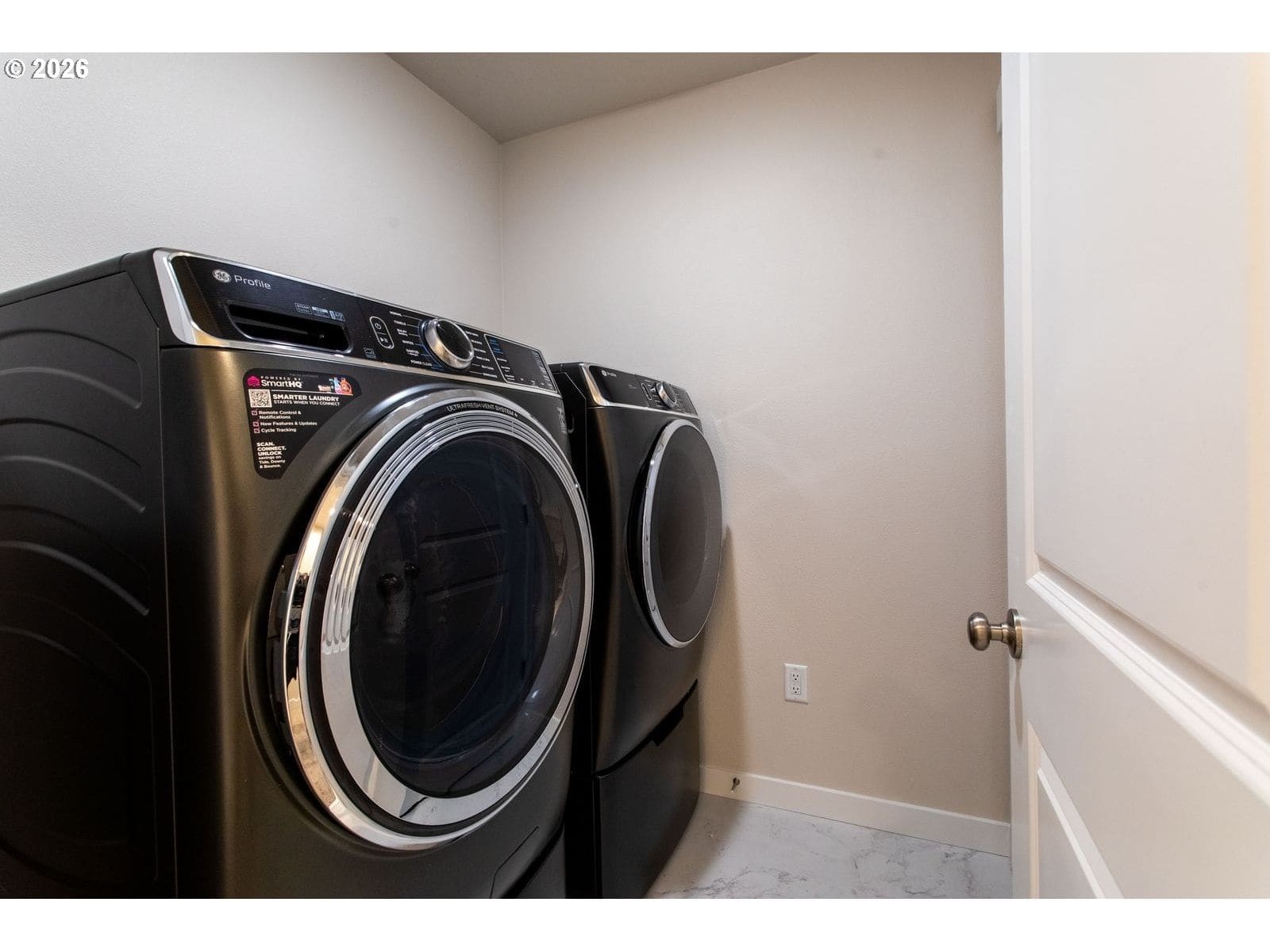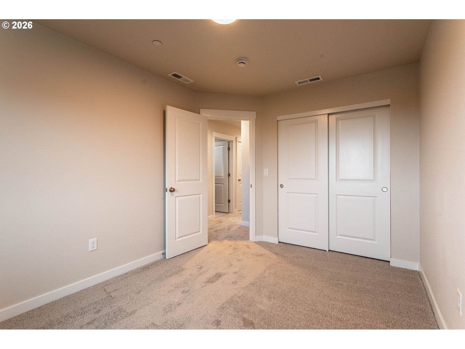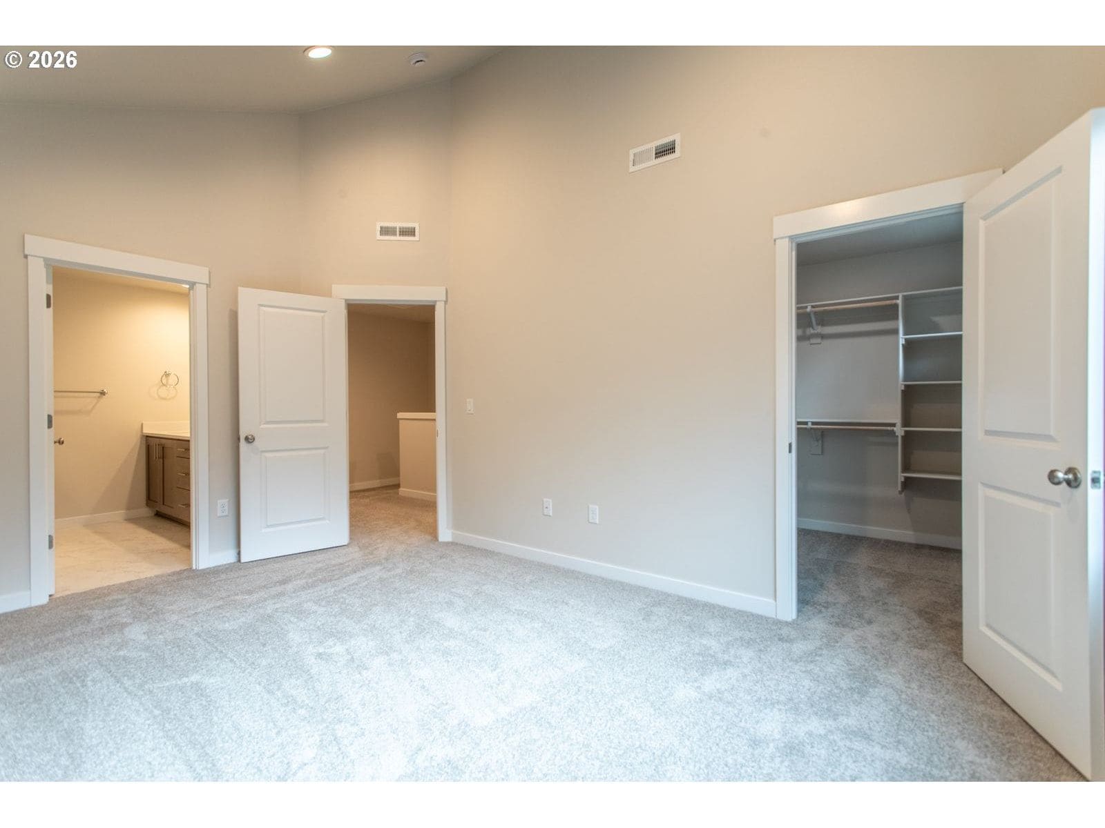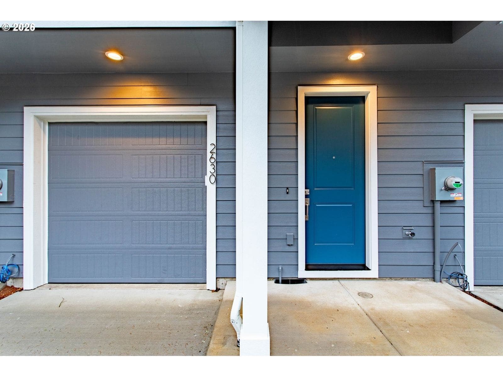 Move in Ready! Spacious town home features three bedrooms and two and a half bathrooms and single car garage complete with prewire for electric vehicle! 9ft ceilings and 8ft doors on the main level. Quartz countertops throughout! Sloped backyard with deck and amazing view! Primary suite features vaulted ceilings, walk in closet with wood shelving! Upstairs laundry. Washer/dryer, fridge and blinds included! Easy access to I-5 and the University of Oregon, make this a great choice for your next Primary or Second home! Photos of actual home!