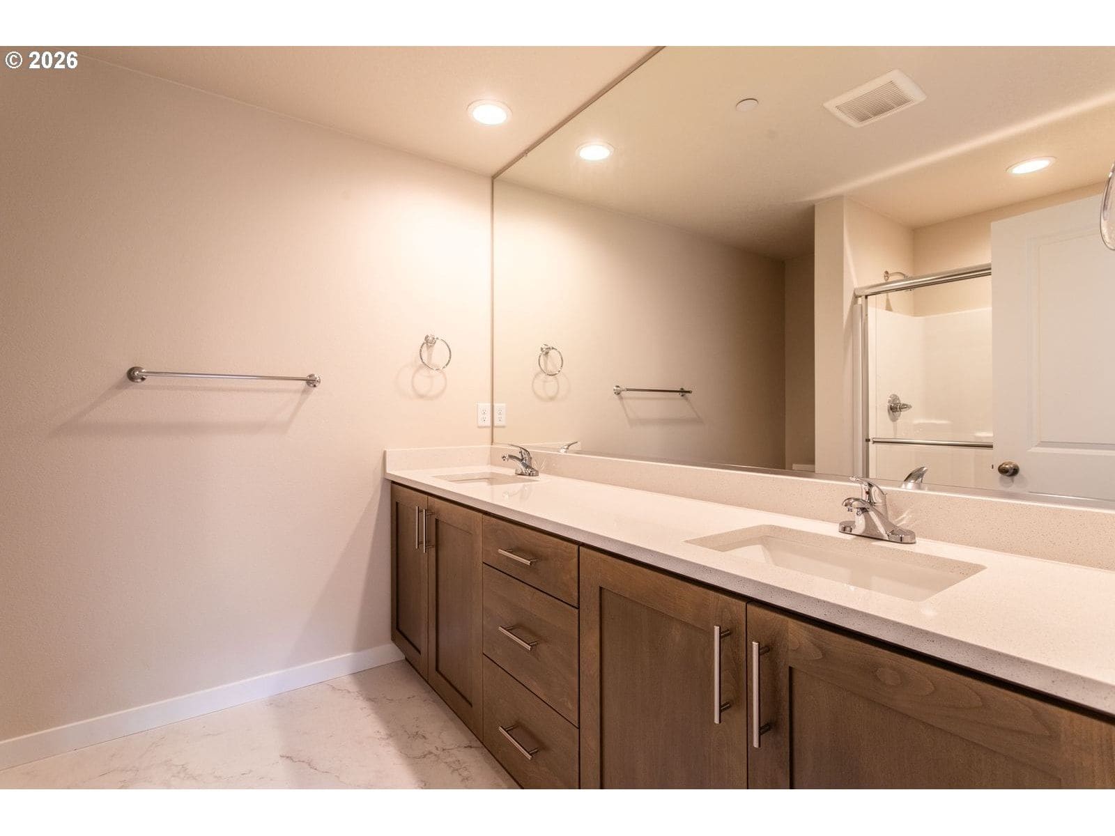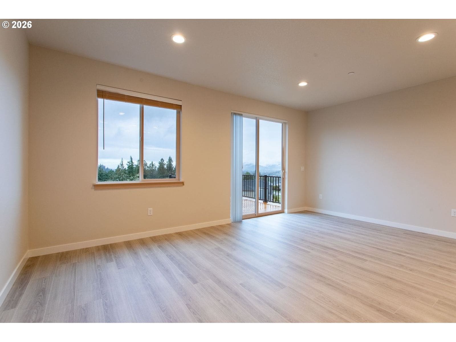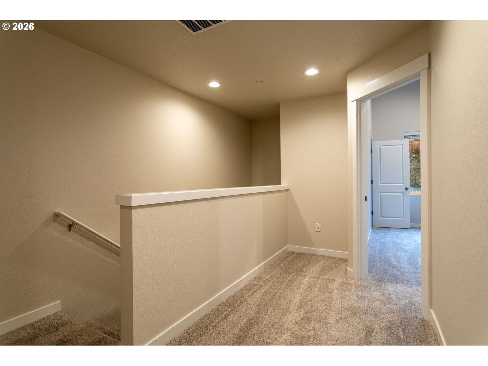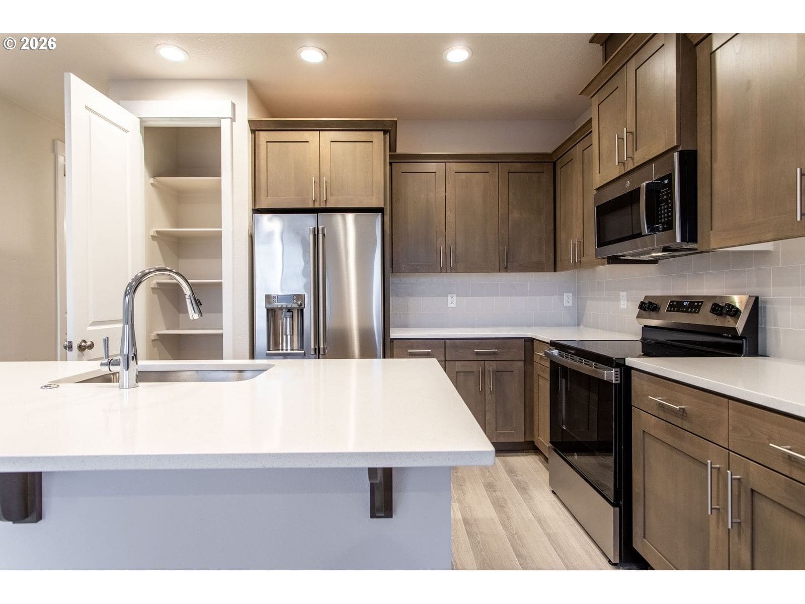 Move in Ready! Spacious town home features three bedrooms and two and a half bathrooms and single car garage complete with prewire for electric vehicle! 9ft ceilings and 8ft doors on the main level. Quartz countertops throughout! Sloped backyard with deck and amazing view! Primary suite features vaulted ceilings, walk in closet with wood shelving! Upstairs laundry. Washer/dryer, fridge and blinds included! Easy access to I-5 and the University of Oregon, make this a great choice for your next Primary or Second home! Photos of actual home!