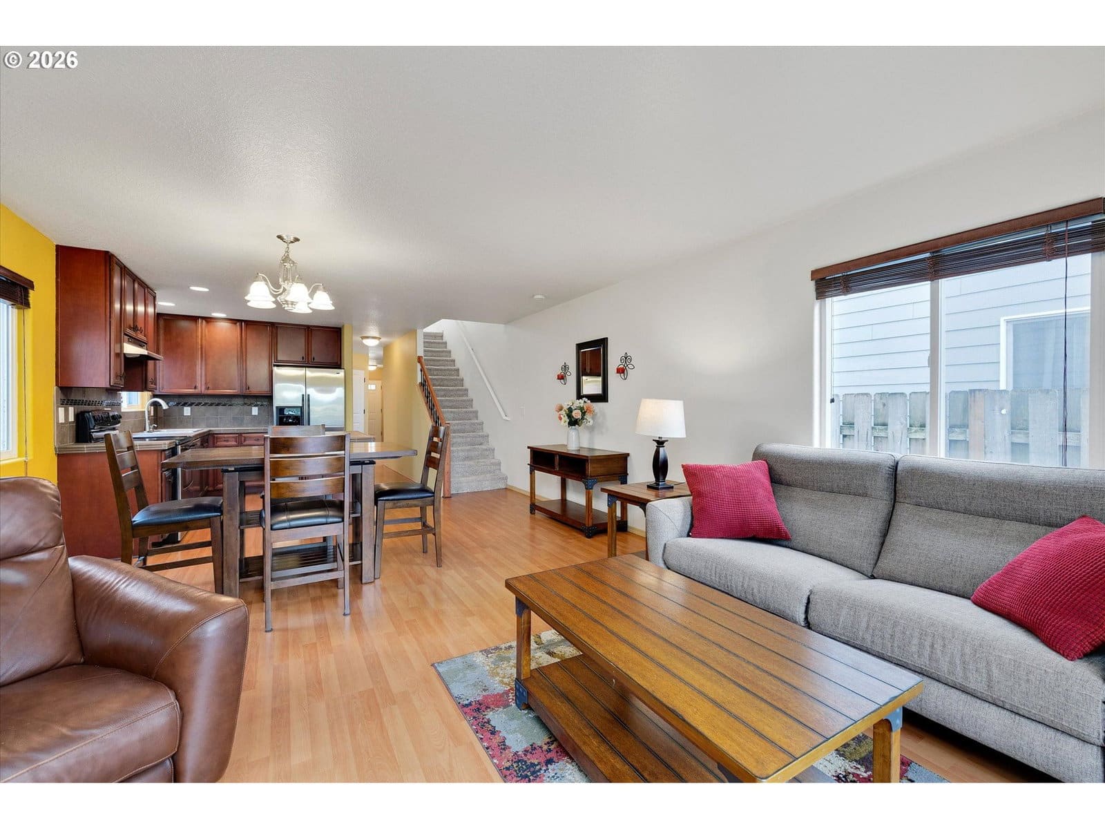 Tucked into the heart of the vibrant Montavilla neighborhood in SE Portland, this beautifully maintained two-level home offers comfort, functionality, and an unbeatable location. With easy access to neighborhood favorites, parks, and major routes, getting just about anywhere in Portland is refreshingly simple - all while enjoying the strong sense of community that Montavilla is known for! The main level features an open and inviting layout designed for everyday living and effortless entertaining. The well-appointed kitchen flows seamlessly into the dining and living areas, where a cozy gas fireplace anchors the space. A sliding door leads to the fully fenced backyard, which is a private, low-maintenance retreat that’s perfect for relaxing, gardening, or gathering with friends! An attached one-car garage adds everyday convenience. Upstairs, you’ll find three comfortable bedrooms plus a charming desk nook at the top of the stairs, ideal for working from home or a quiet study space. The spacious primary suite feels like a true retreat with vaulted ceilings, a cozy reading nook, two walk-in closets, and an attached bathroom. Two additional bedrooms and a full bathroom round out the upper level. With central A/C, thoughtful design, and evident pride of ownership throughout, this Montavilla home offers easy, comfortable living in one of Southeast Portland’s most beloved neighborhoods. [Home Energy Score = 7. HES Report at https://rpt.greenbuildingregistry.com/hes/OR10245822]
