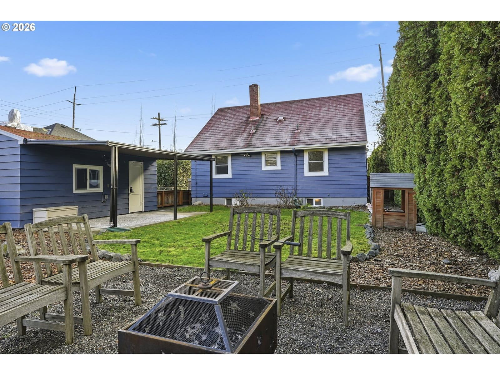 Updated windows flood the main floor with natural light, highlighting a flexible flow between living spaces. Upstairs, the fully renovated bedroom offers a versatile retreat, while the basement has been adapted to provide additional room for recreation.The private backyard is designed for year-round use. It features a generous covered patio, a dedicated firepit area, and a flat lawn with established garden beds. The tall hedge running along the west property line provides privacy and afternoon shade. This fenced, low-maintenance space offers a quiet sense of privacy for gardening or relaxing outdoors.Practical updates, including new plumbing, furnace, water heater, appliances and an upstairs mini-split system for heating and cooling, ensure the home is as functional as it is inviting.Located in the heart of Rose City Park, this property boasts a 93 Bike Score and a 74 Walk Score. Popular food carts and local cafes are just around the corner, placing the neighborhood’s best amenities within easy reach. [Home Energy Score = 5. HES Report at https://rpt.greenbuildingregistry.com/hes/OR10047391]