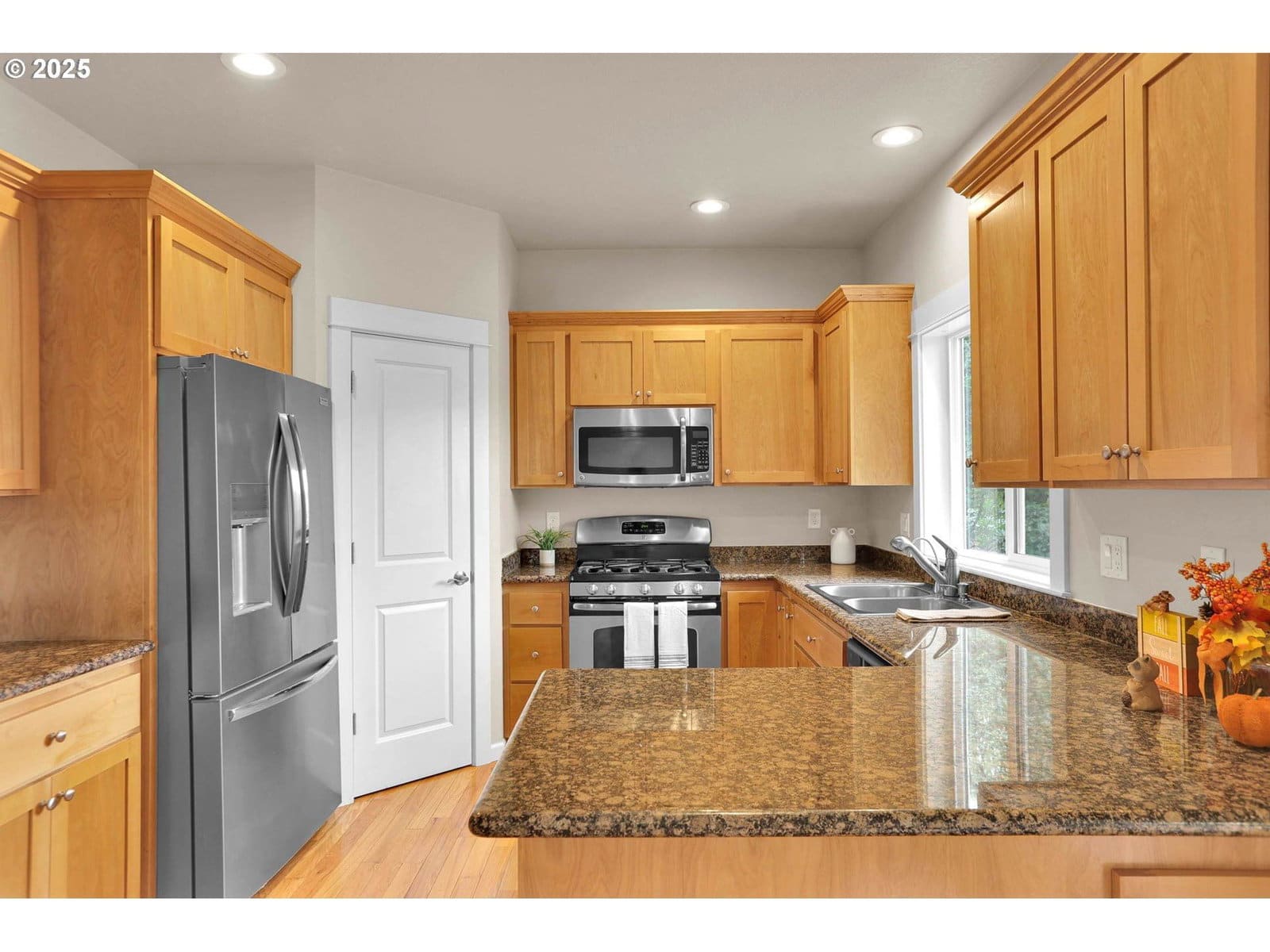 Check out this lovingly-maintained single-level home in the heart of Ferry Street Bridge. Steps from Bond Lane Park and designed with comfort and convenience, this open-concept home offers great separation of space. The great room includes a gas fireplace and high ceilings.Beautiful hardwood flooring throughout. Well-equipped kitchen with granite countertops, stainless steel appliances, a pantry, and an eating bar—perfect for everyday living or entertaining. The owner's suite includes a walk-in closet, spacious soaking tub, walk-in shower, double sinks, and ample storage. Opposite the owner's suite, the home boasts two additional bedrooms and a full bath. Spacious laundry room with functional countertop space and storage. Step out onto the beautiful partially covered back deck, an ideal spot for morning coffee, evening relaxation, or entertaining guests year-round - from here, you’ll enjoy peaceful views of the quiet, tree-lined back area, offering a sense of privacy and connection with nature that’s hard to find. Whether you're hosting a summer barbecue, unwinding with a good book, or simply taking in the calming surroundings, this thoughtfully designed deck creates an effortless indoor-outdoor lifestyle. Contact your Agent today for a showing!