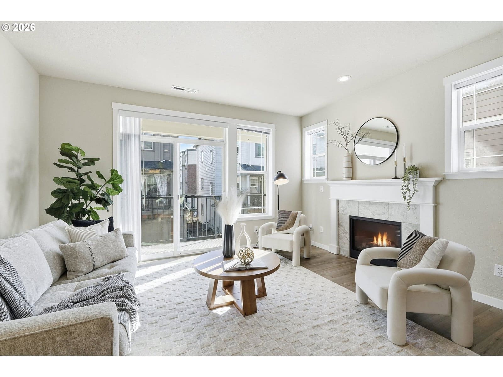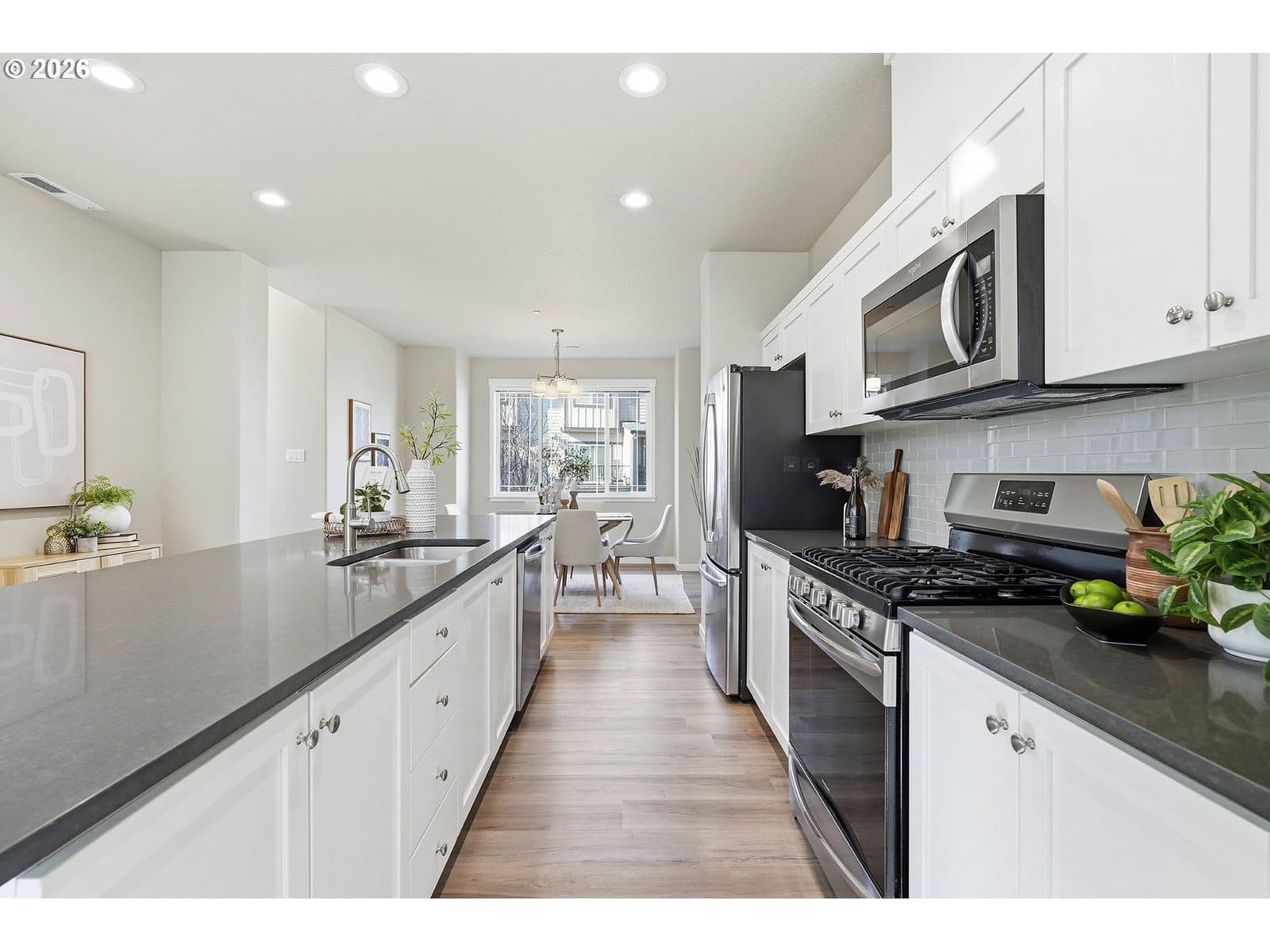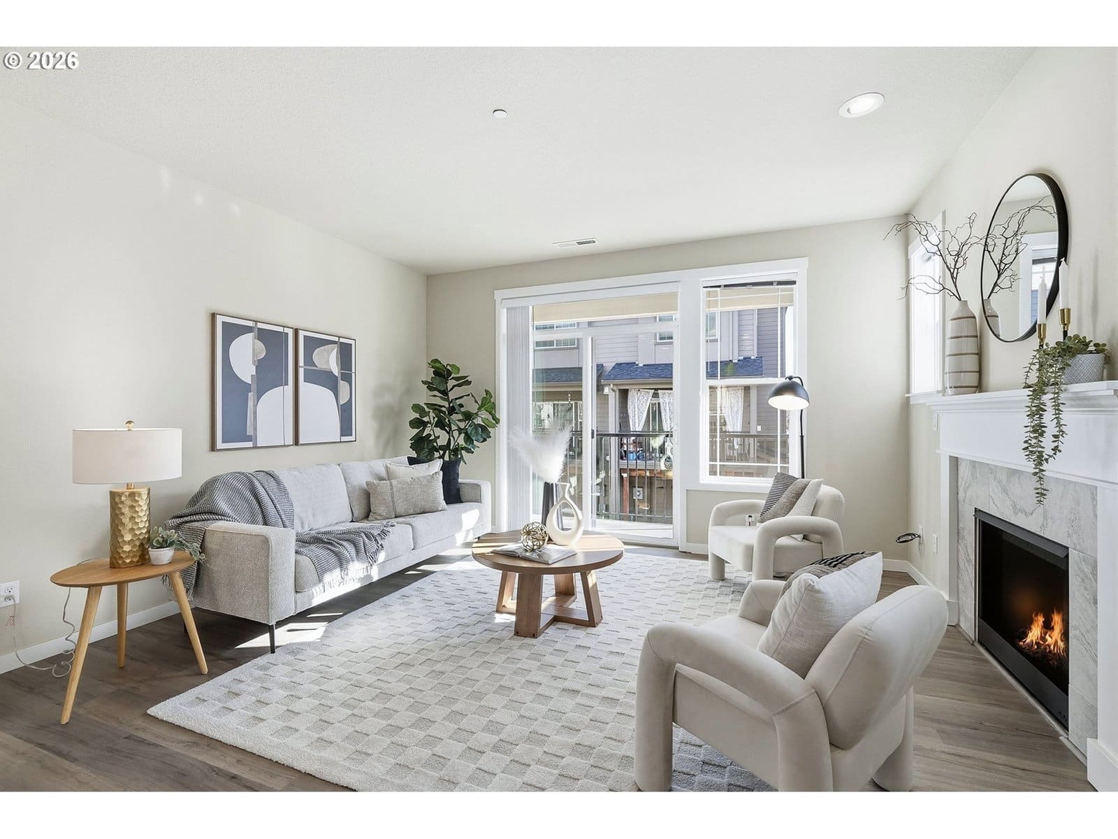 Phenomenal end unit townhome centrally located within Villebois. The interior has received a fresh coat of paint, new LVT floors and carpet. A foodie's kitchen featuring quartz counters, stainless steel appliances and oversized island. This home boasts high ceilings, gas fireplace and recessed ceiling in the primary bedroom. The spacious and bright nook on the upper level makes for a perfect work from home or workout space. The oversized single car garage with rear parking pad driveway offers plenty of space for multiple cars, workbench or hobby projects. Centrally located in Villebois between Edelweiss and Sofia Park, enjoy pickle ball, beach volleyball and many kids' playgrounds. Just steps to the central Piazza for coffee and convenience store.
