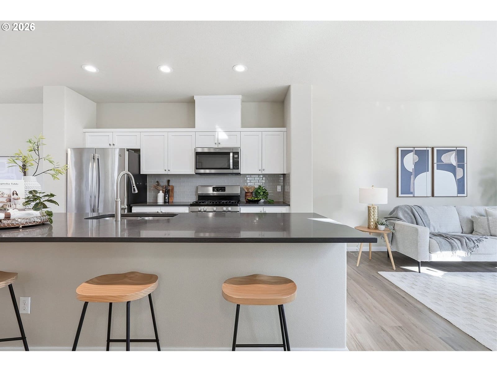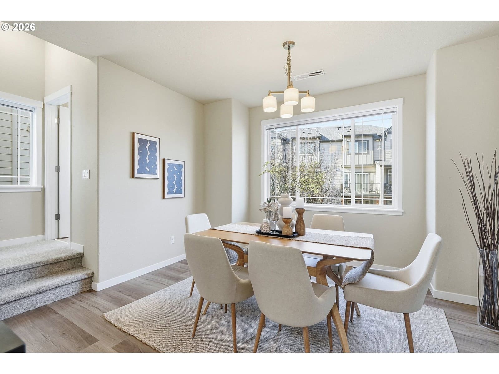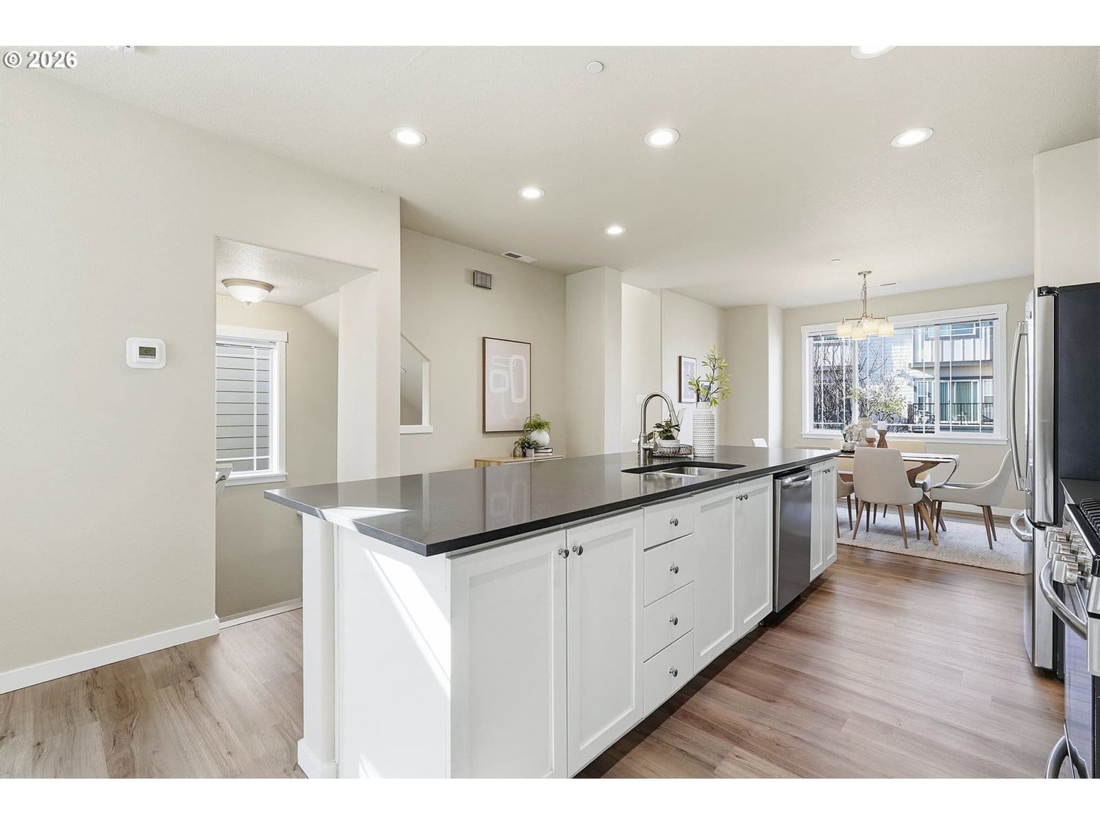 Phenomenal end unit townhome centrally located within Villebois. The interior has received a fresh coat of paint, new LVT floors and carpet. A foodie's kitchen featuring quartz counters, stainless steel appliances and oversized island. This home boasts high ceilings, gas fireplace and recessed ceiling in the primary bedroom. The spacious and bright nook on the upper level makes for a perfect work from home or workout space. The oversized single car garage with rear parking pad driveway offers plenty of space for multiple cars, workbench or hobby projects. Centrally located in Villebois between Edelweiss and Sofia Park, enjoy pickle ball, beach volleyball and many kids' playgrounds. Just steps to the central Piazza for coffee and convenience store.