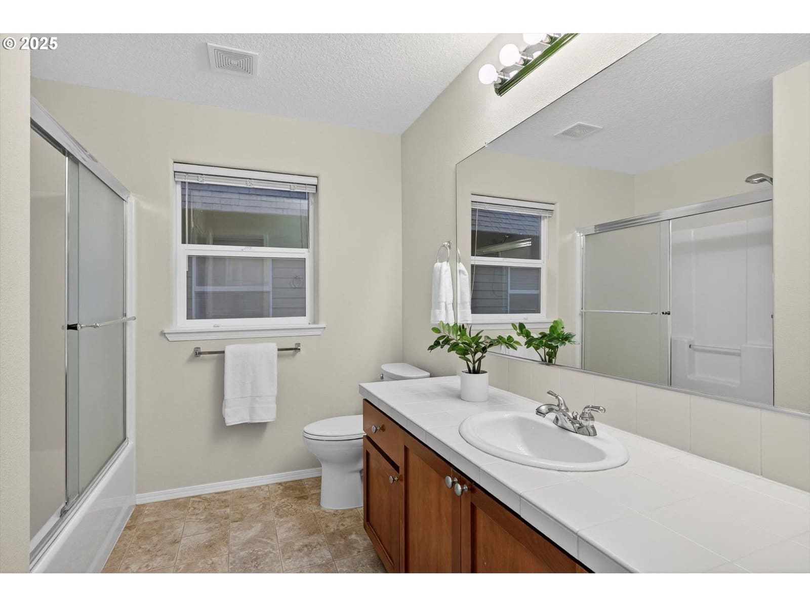 Great location across from greenspace in Orenco Gardens! 2,280 Sq Ft with main level bedroom suite. 3 additional bedrooms including primary suite with large walk-in closet, soaking tub and walk-in shower. Covered front porch and back patio with low maintenance back yard. NEW 2025-HVAC, Roof, Water Heater, Exterior Paint! Just 3 blocks to MAX, Orenco Station, parks and more! [Home Energy Score = 5. HES Report at https://rpt.greenbuildingregistry.com/hes/OR10243072]