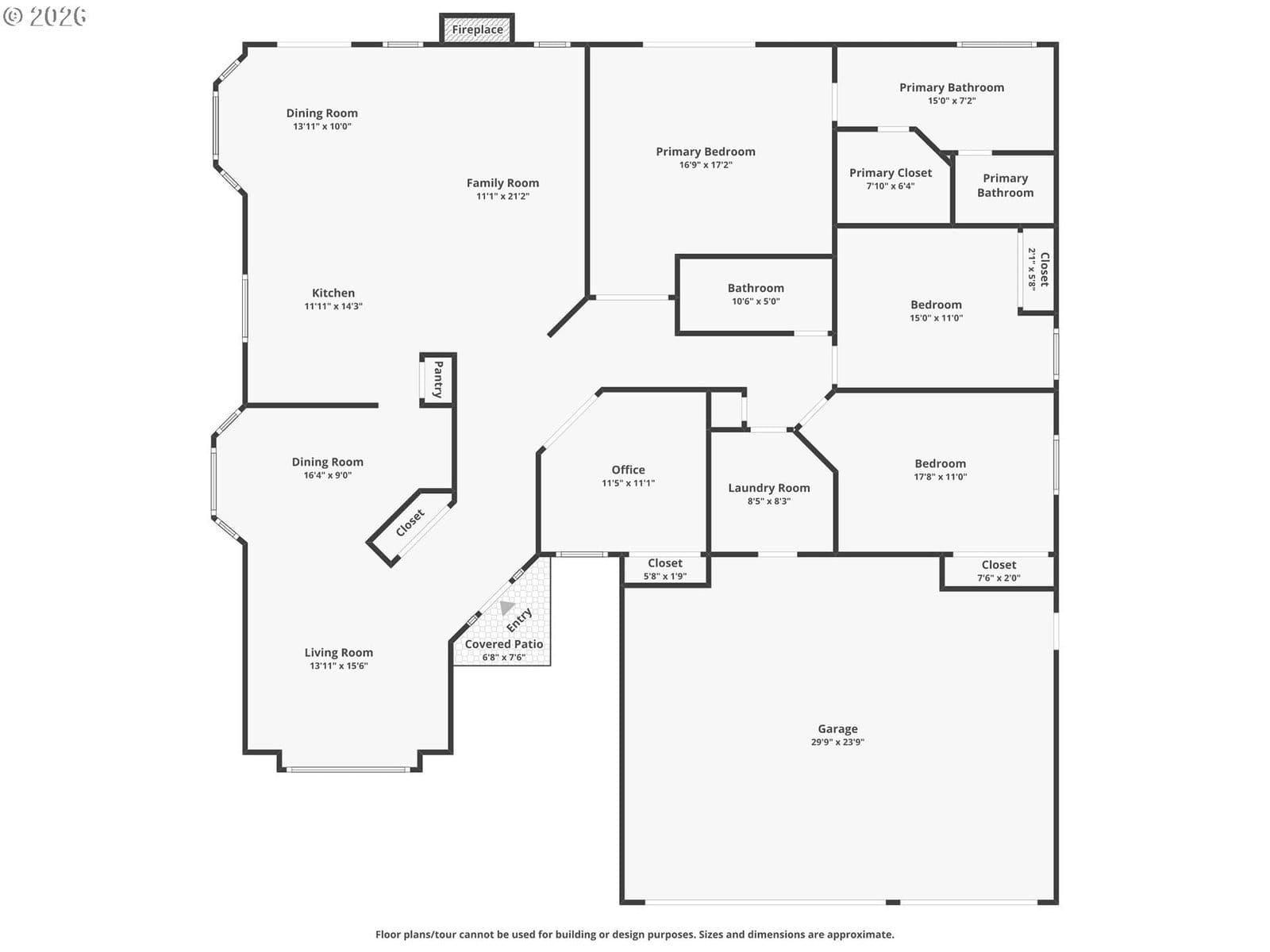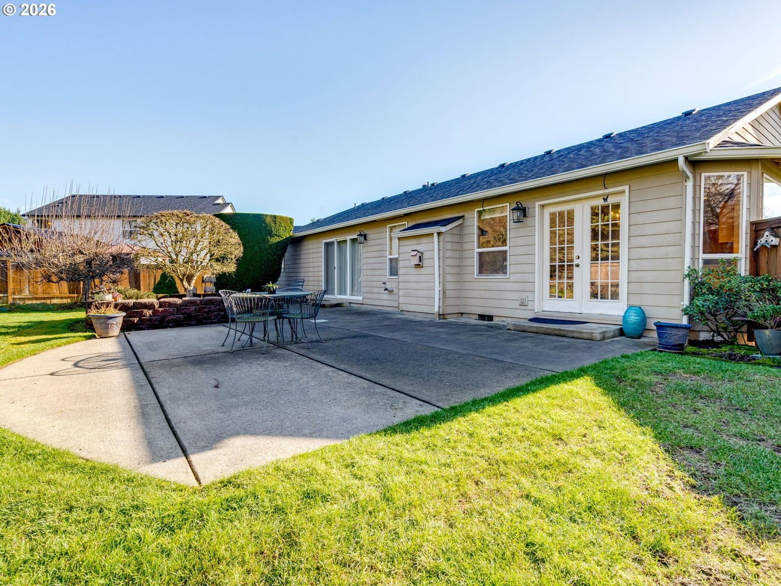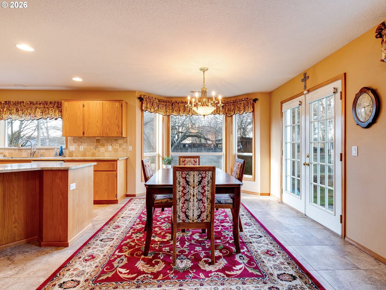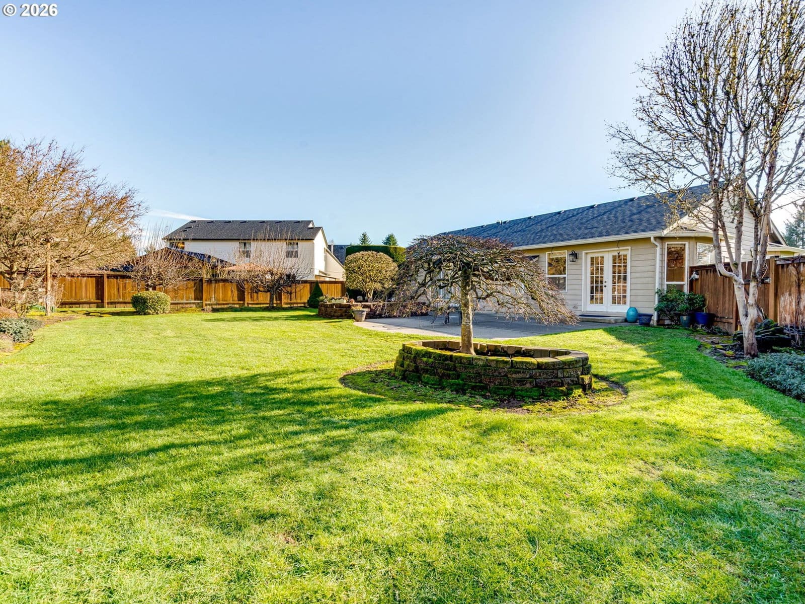 Positioned on a flat, oversized corner lot, this beautiful single-story home offers generous space, thoughtful design, and multiple living and dining areas ideal for the whole family. The formal living room welcomes you with vaulted ceilings and expansive windows that fill the space with natural light. Just beyond, the formal dining room features a built-in banquette and charming bay window, an inviting setting for hosting gatherings. The kitchen feels impressively spacious, offering a large island, abundant cabinetry, and extensive counter space to support all your cooking and entertaining needs. A second dining area sits just off the kitchen and overlooks the backyard, creating a seamless flow for everyday meals. Completing the back of the home is a comfortable family room with fireplace, an ideal spot to unwind and is perfectly positioned within view of the kitchen to keep everyone connected. A large office framed by French doors provides a quiet place to work or study, while the laundry room adds convenience with additional storage and a utility sink. The primary suite is a true retreat, featuring vaulted ceilings, private access to the back patio, and an ensuite with double sinks, a jetted tub, walk-in shower, and a spacious walk-in closet. Step outside to a massive patio that overlooks meticulously maintained landscaping, offering plenty of room for outdoor dining, relaxation, and play. The community enhances daily living with paved walking trails and a convenient location near shopping, parks, and medical facilities.