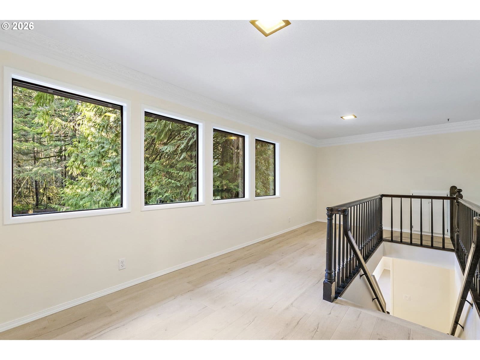 Tucked away on nearly 7 acres of serene, forested privacy, this spacious property offers the perfect blend of comfort, functionality, and natural beauty. Surrounded by mature trees and peaceful views in every direction, the home is filled with windows that frame the landscape and invite abundant natural light throughout. The spacious kitchen features granite countertops, stainless steel appliances, laminate flooring, and generous prep and storage space—ideal for everyday living and entertaining. A nearby laundry room with full sink and full bath adds everyday convenience. Sliding doors from both the living room and kitchen provide easy access to the back deck and expansive yard, creating seamless indoor-outdoor living. The impressive family room showcases soaring ceilings, floor-to-ceiling windows, and a fireplace, making it a stunning gathering space. Two bedrooms are located on the main level, including the primary suite, offering flexible single-level living. Upstairs, a banister overlooks the family room below and leads to three additional spacious bedrooms and a full bath, providing plenty of room for guests, work-from-home needs, or hobbies. Outside, the property truly shines with a large two-car garage, RV parking with covered storage, a barn, and a shed—perfect for equipment, animals, recreational toys, or workshop space. With open areas that provide space for a pasture to host livestock and animals, this property offers incredible potential for hobby farming or country living. Enjoy the peace, privacy, and endless possibilities this exceptional acreage offers, all while remaining within reach of everyday amenities. Easy access to the Banks Vernonia Linear Trail just across the road.