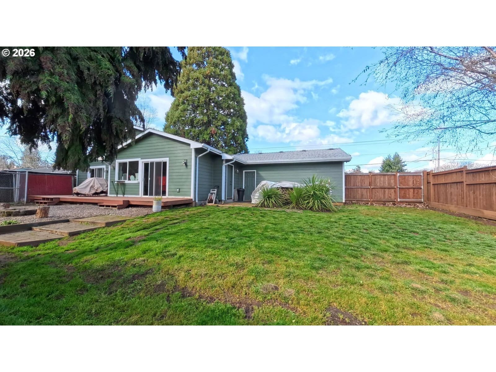 South Salem corner-lot gem! This inviting home features a spacious primary suite with a large walk-in closet and full bath with slider to the backyard deck. Enjoy a generous backyard with firepit area, dog kennel space, and room to play. Kitchen boasts a large custom island, perfect for gathering. Deep garage with abundant built-ins for storage. New sewer line in 2025 plus newer siding and fencing add peace of mind!