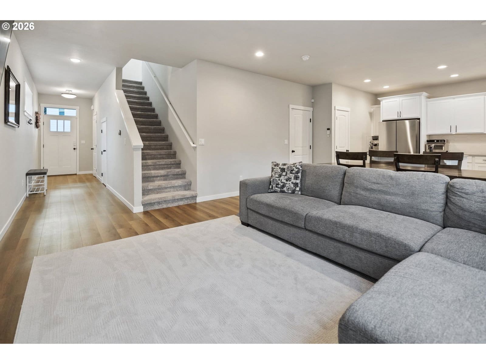 Stunning 3 bedroom home meticulously maintained and ready for you to call home! Equipped with A/C, stainless steel appliances and convenient smart home features. The bright main floor boasts 9ft. ceilings with abundant natural light and elegant finishes including quartz countertops and a gorgeous gas fireplace. Relax in the spacious primary suite with vaulted ceilings, double sinks and a generous walk in closet. Enjoy the large parking pad and front yard, perfect for hosting!
