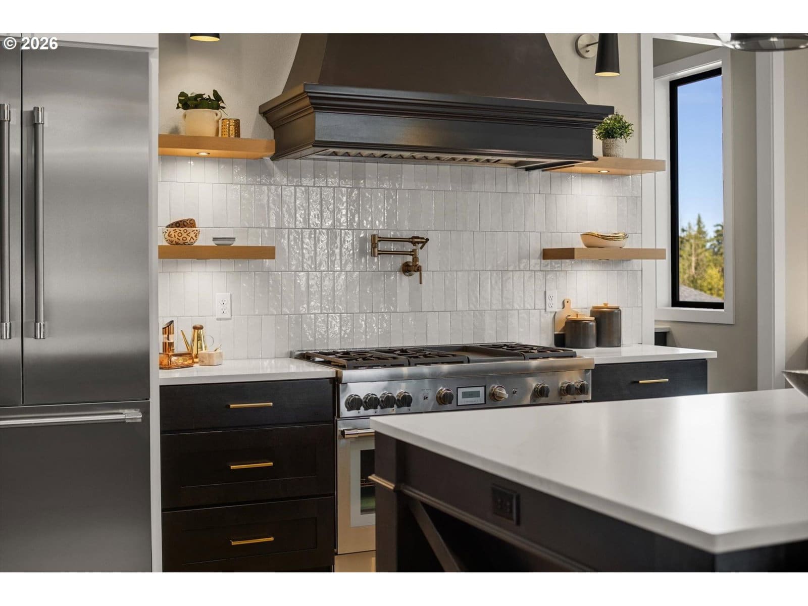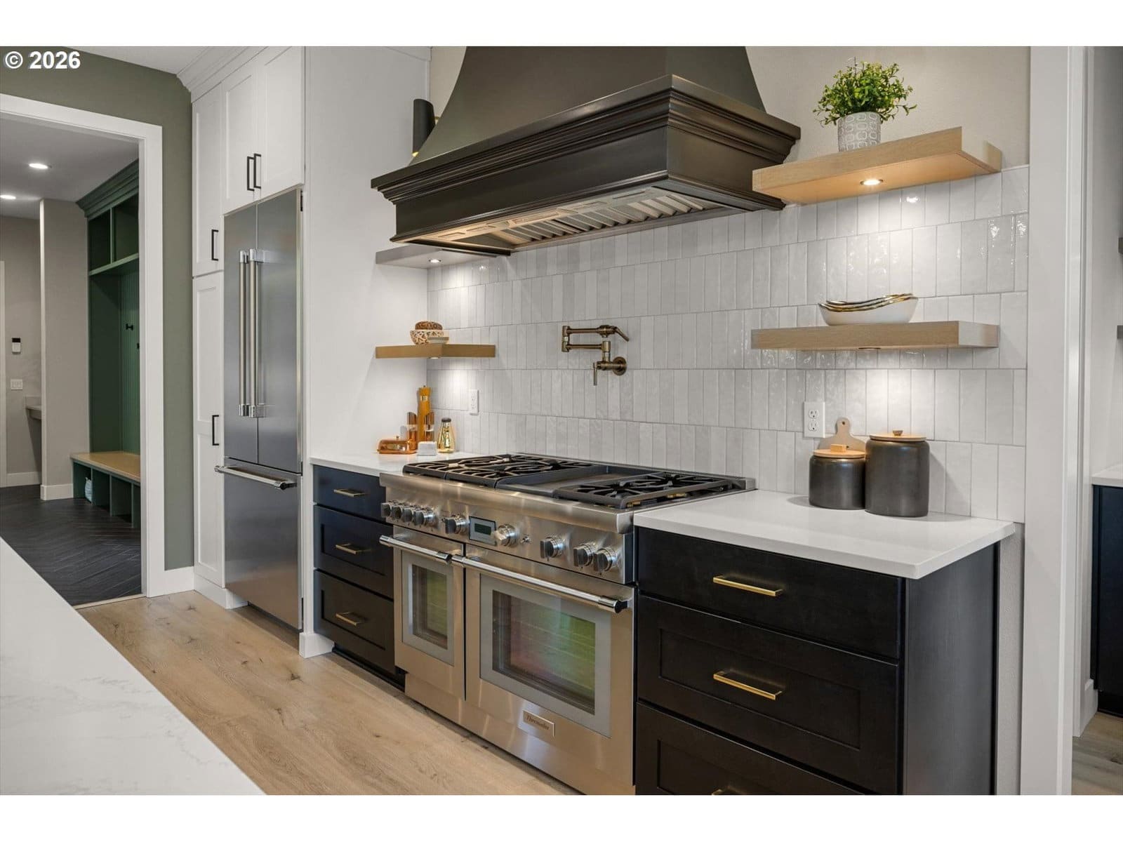 Oven, Gas Water Heater, Built-In Range, Built-In Refrigerator, Dishwasher, Disposal, Microwave, Range Hood, Wine Cooler