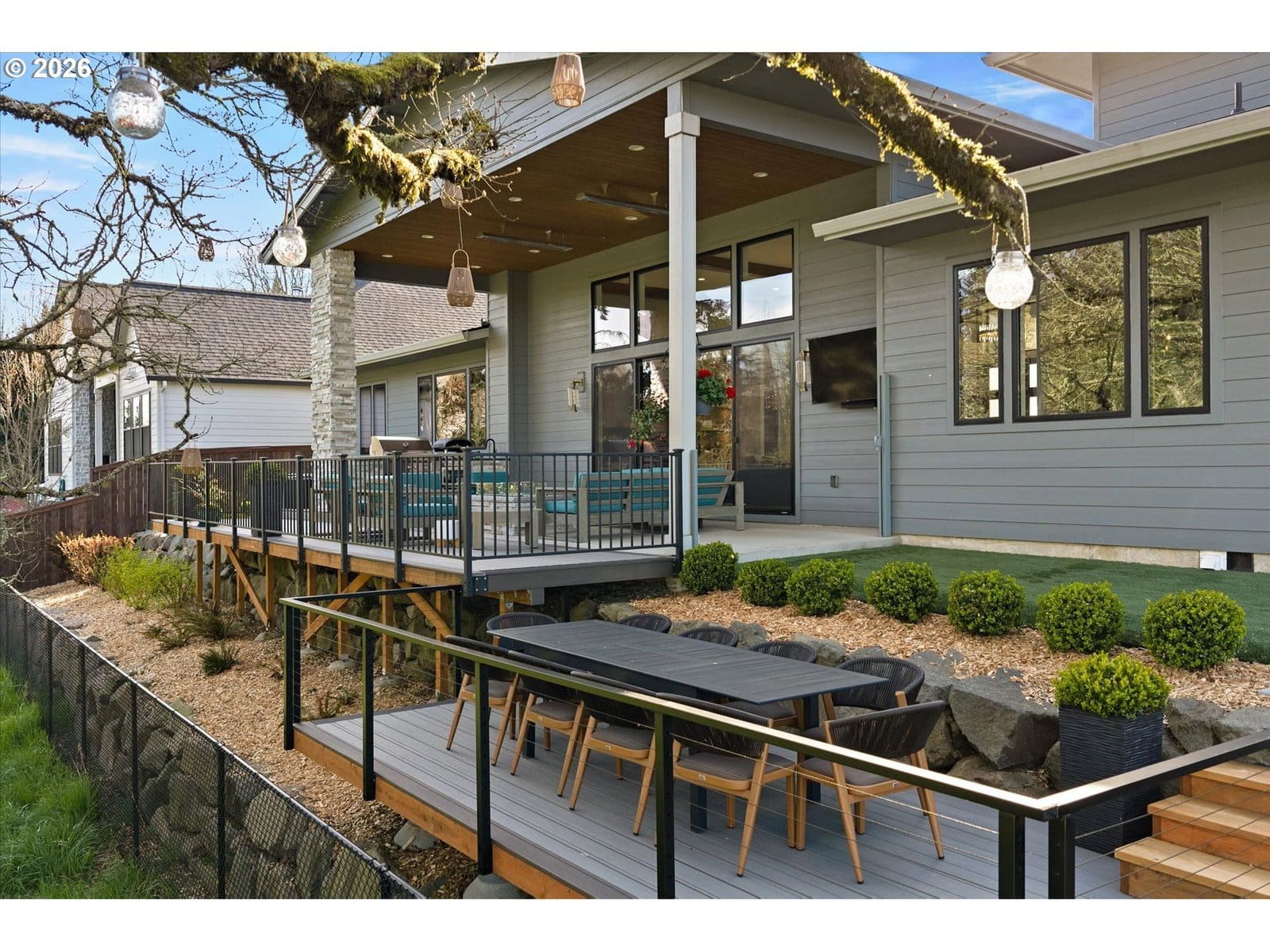 Welcome to a truly exceptional custom-built home, originally featured in the 2022 Parade of Homes—where thoughtful design meets elevated living. Crafted with entertaining in mind, this residence seamlessly blends indoor and outdoor spaces to create the ultimate hosting experience. Step outside to discover beautifully designed tiered decks, perfect for gatherings of any size, complete with a private hot tub for relaxing evenings under the stars. With a fully hardscape-design backyard and premium astroturf, offering a clean, green look year-round with virtually no maintenance—so you can spend more time enjoying and less time working.Inside, you'll find stunning custom finishes and designer lighting throughout, creating a warm yet sophisticated ambiance. No detail was overlooked—every element has been carefully curated to deliver both style and functionality. For those who need space for all the toys, this property features an expansive RV/boat bay along with additional parking—bringing convenience without compromise. Located in a highly sought-after golf cart-friendly community, you’ll enjoy easy access to top-rated schools, exciting new restaurants, and charming coffee shops just around the corner. And with no HOA, you’ll have the freedom to truly make this home your own.This is more than a home—it’s a low-maintenance lifestyle built for connection, comfort, and unforgettable moments.