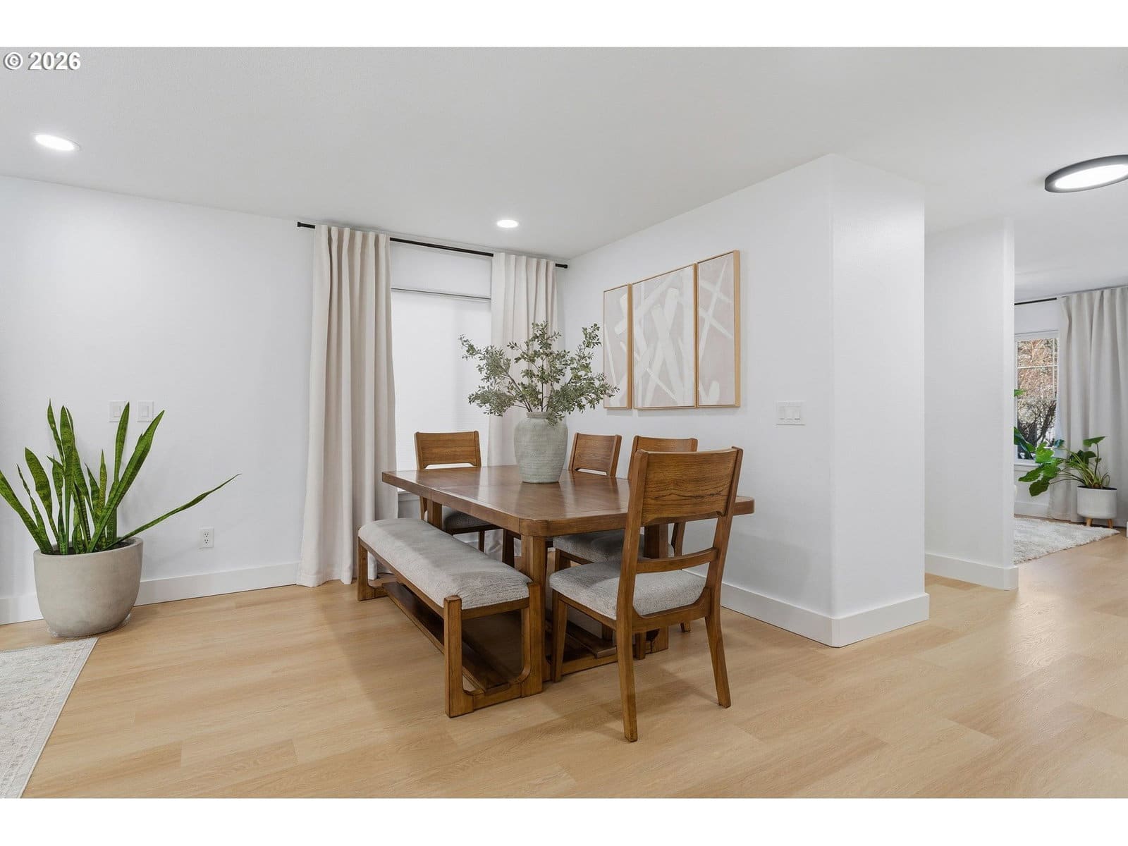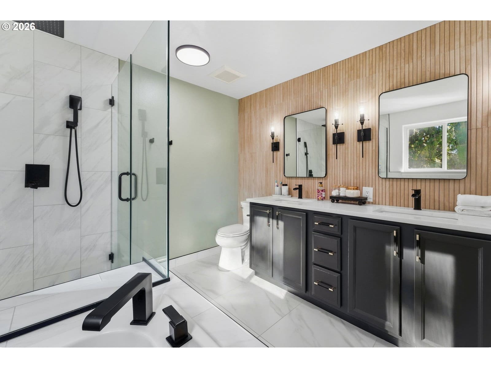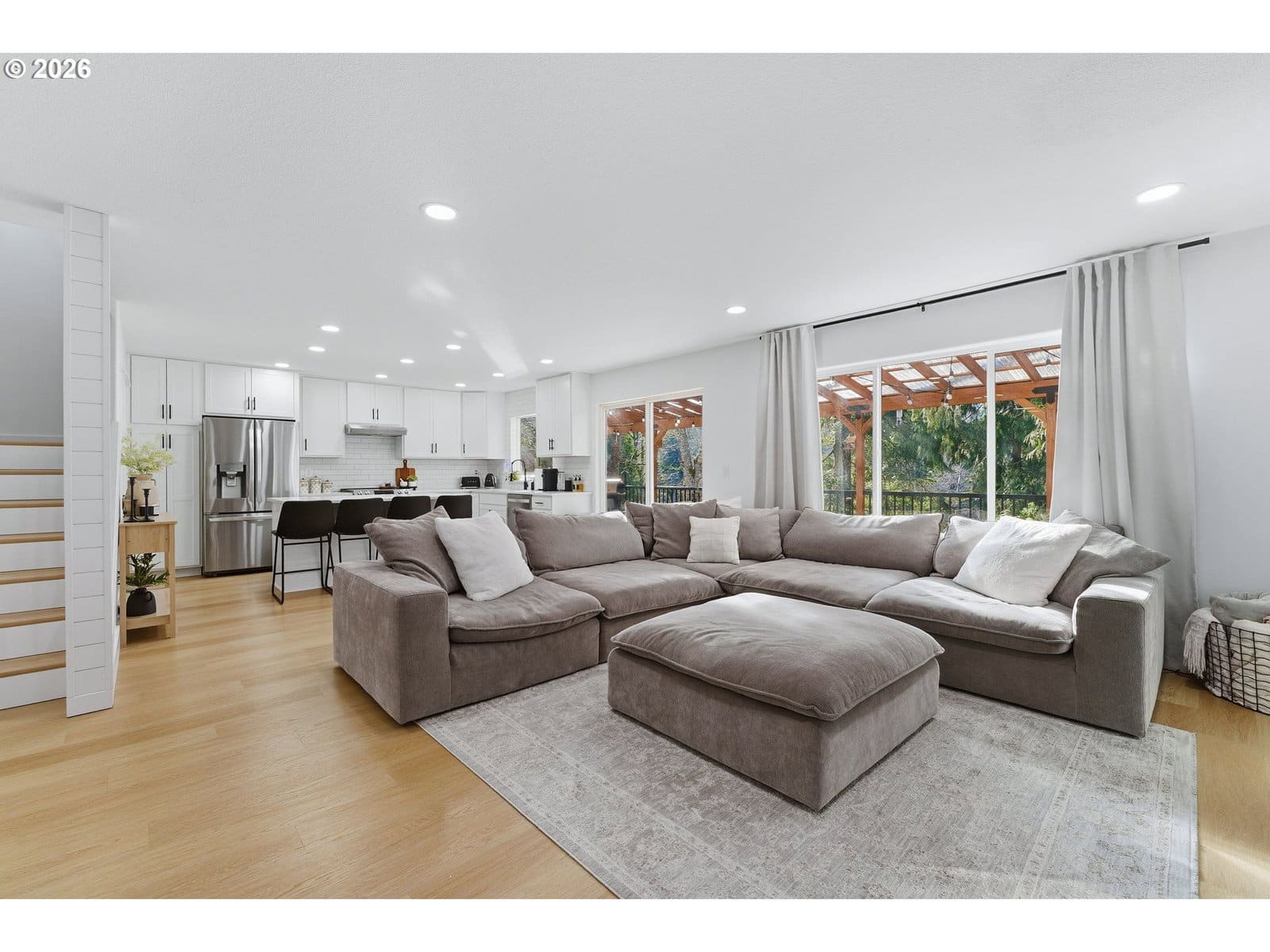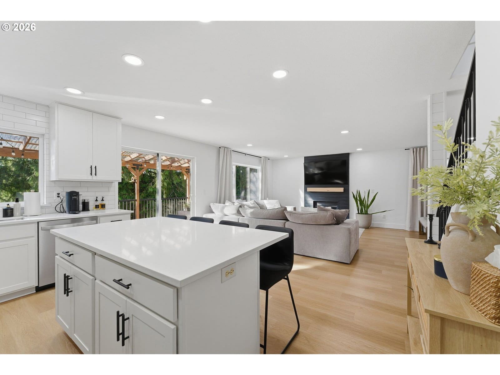 A rare opportunity to own a beautifully remodeled home backing to forest land, with the added advantage of an assumable 4.55% FHA loan for qualified buyers.This home has been fully remodeled inside and out, including fresh modern exterior paint. Inside, you’ll find new LVP flooring, a designer LVP staircase with dark railings, and upgraded chandeliers and modern lighting throughout. The remodeled kitchen features a quartz island, and all bathrooms have been beautifully remodeled. The spacious primary suite offers vaulted ceilings and a luxurious primary bath with heated tile floors.Large windows provide abundant natural light throughout the home. Step outside to a covered patio overlooking peaceful forest land, creating a private Northwest retreat.Fully remodeled, move-in ready, and hard to find at this level of finish and setting.