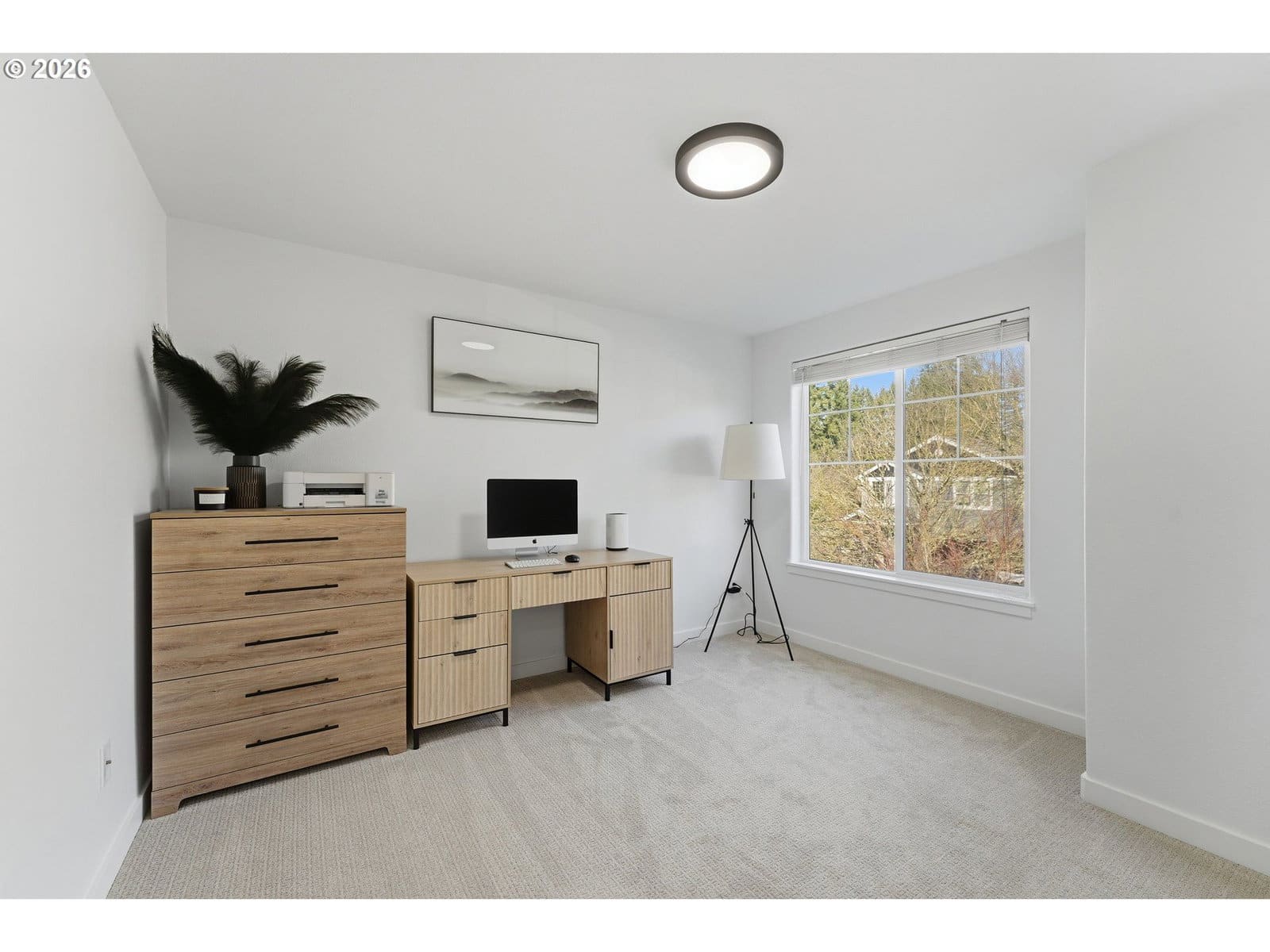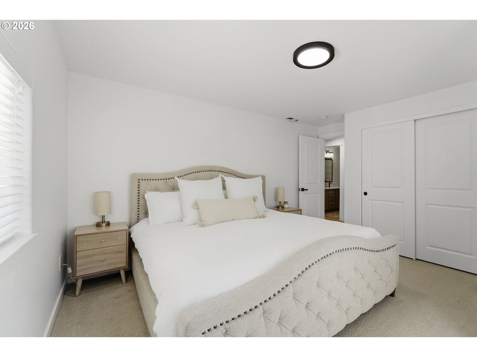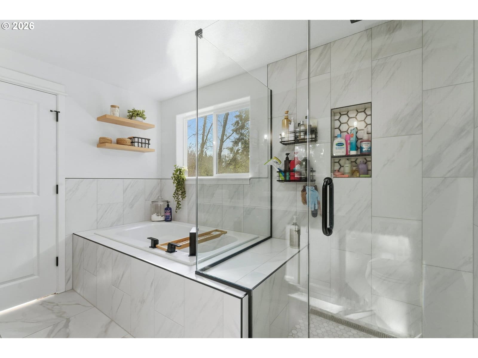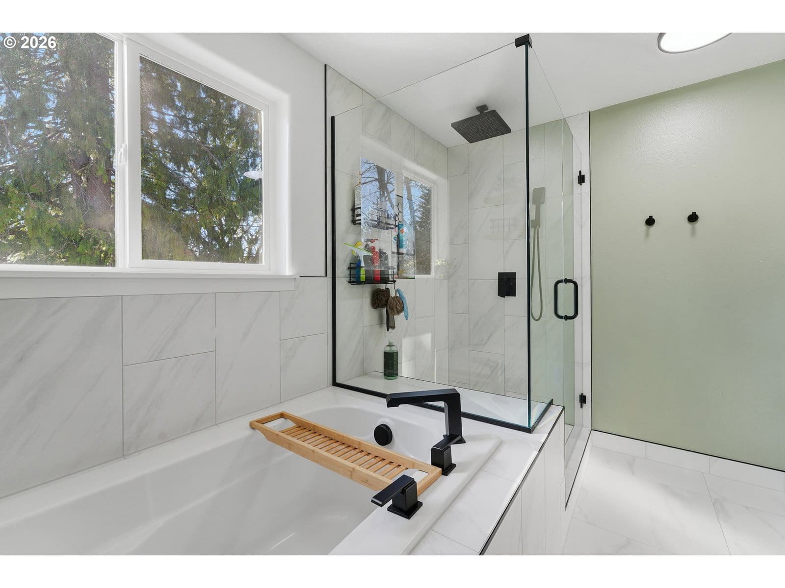 A rare opportunity to own a beautifully remodeled home backing to forest land, with the added advantage of an assumable 4.55% FHA loan for qualified buyers.This home has been fully remodeled inside and out, including fresh modern exterior paint. Inside, you’ll find new LVP flooring, a designer LVP staircase with dark railings, and upgraded chandeliers and modern lighting throughout. The remodeled kitchen features a quartz island, and all bathrooms have been beautifully remodeled. The spacious primary suite offers vaulted ceilings and a luxurious primary bath with heated tile floors.Large windows provide abundant natural light throughout the home. Step outside to a covered patio overlooking peaceful forest land, creating a private Northwest retreat.Fully remodeled, move-in ready, and hard to find at this level of finish and setting.
