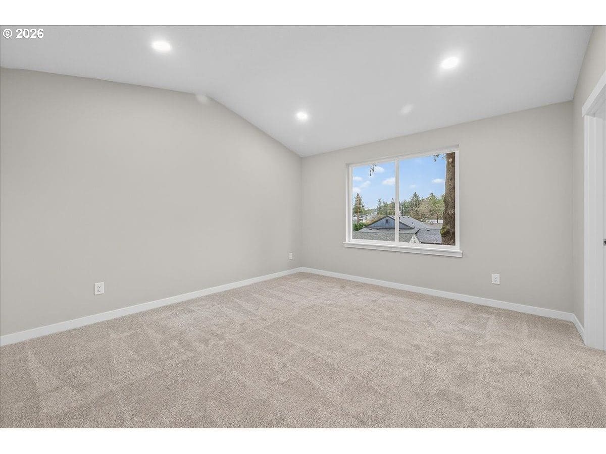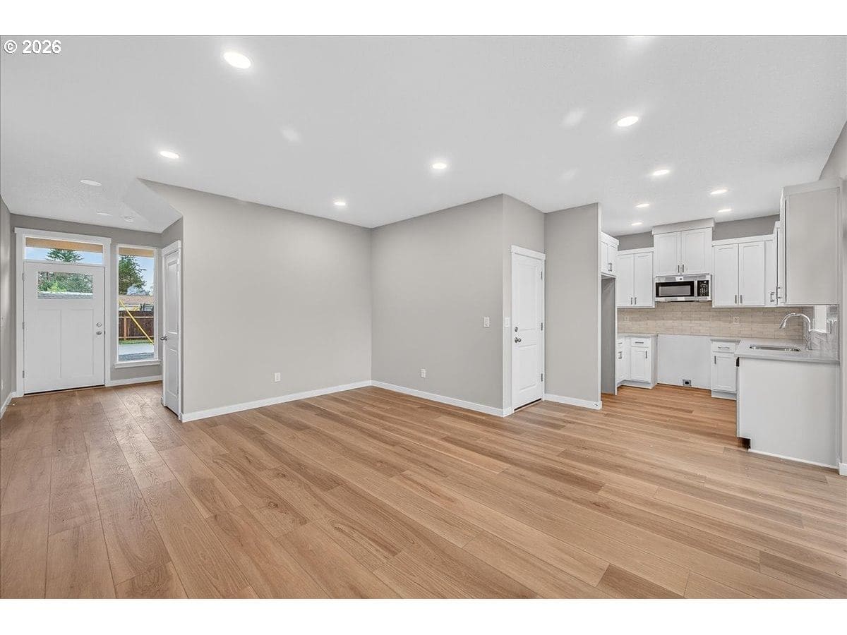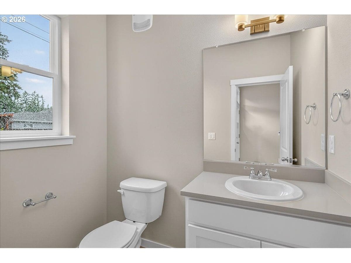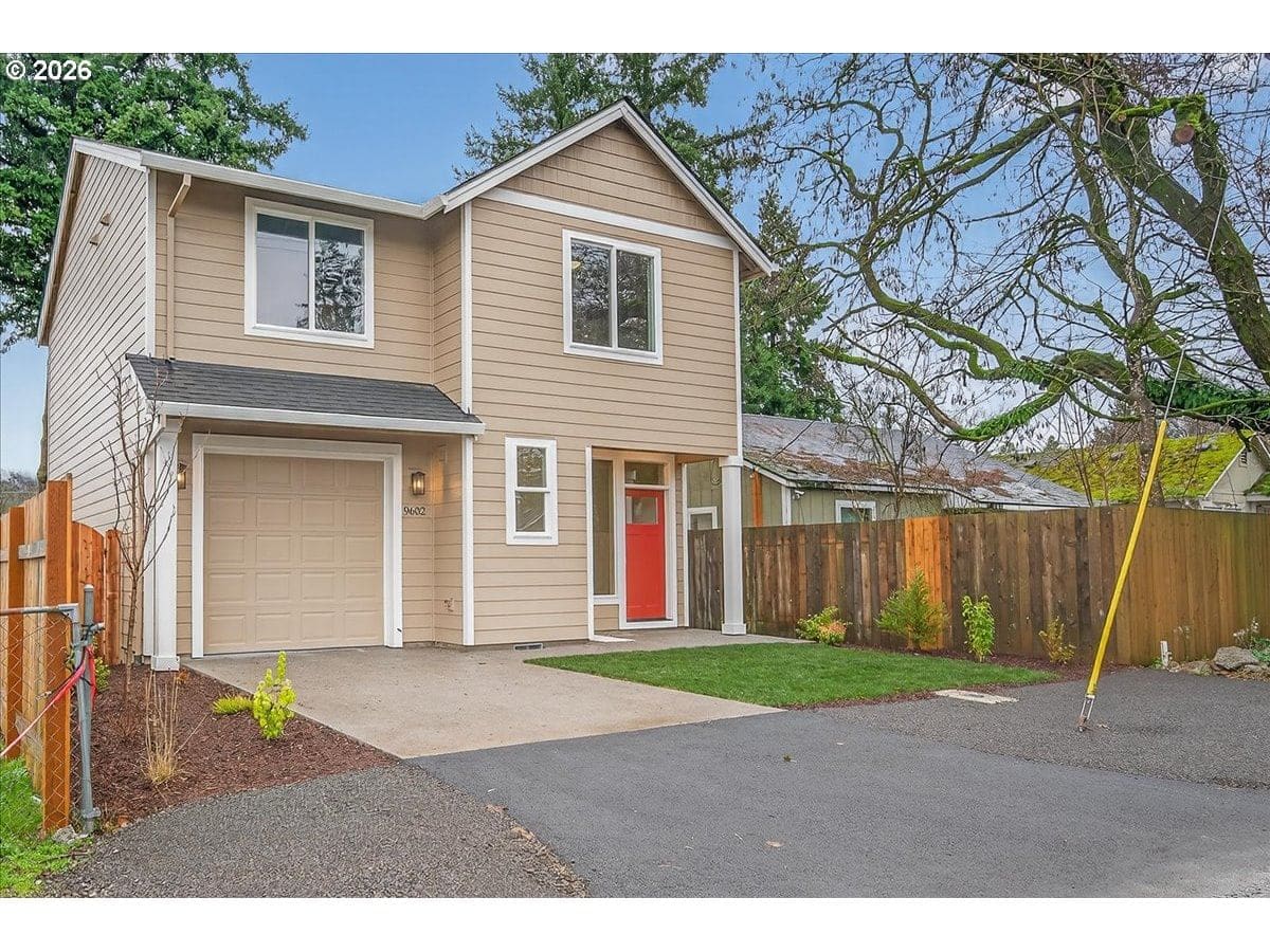 Thoughtfully designed new construction offering a smart, efficient floor plan w/ clean modern finishes. The inviting entry opens to a light-filled main living area w/ high ceilings and durable, easy care flooring and features a large slider that connects seamlessly to an oversized patio - ideal for indoor-outdoor living. Kitchen is well laid out w/ ample storage, generous counter space and S/S appliances, making it both functional and visually appealing. Upstairs, the Primary Suite provides a private retreat w/ vaulted ceilings, a full bathroom and a walking in closet. Convenient upstairs laundry adds everyday practicality. Additional highlights are excellent natural light, fully fenced backyard w/ professional landscaping and an efficient mini-split heating & cooling system throughout the home offering year-round comfort and energy-conscious climate control.