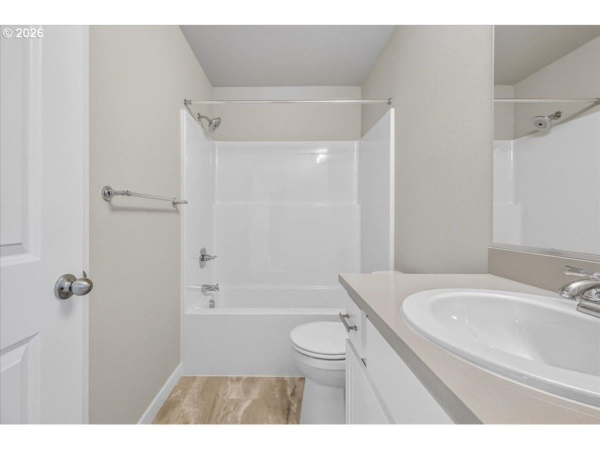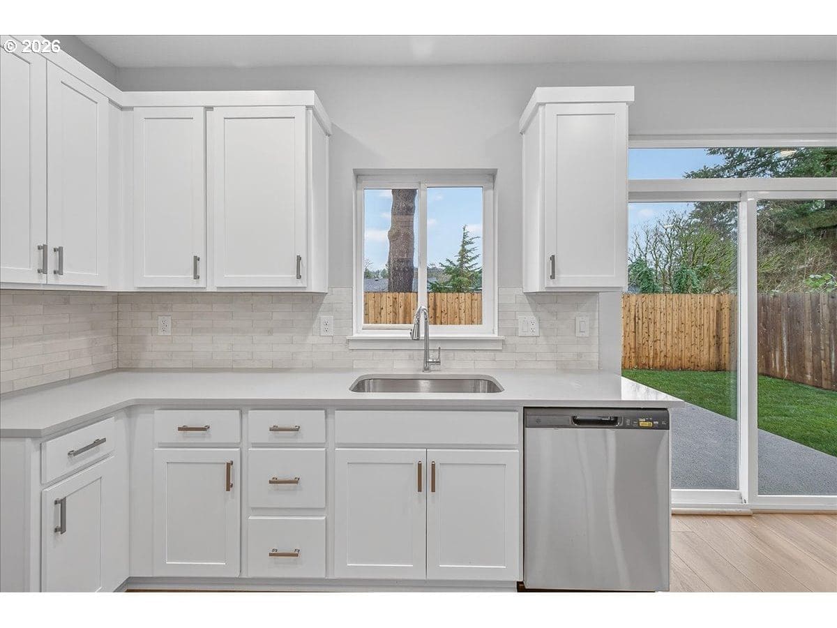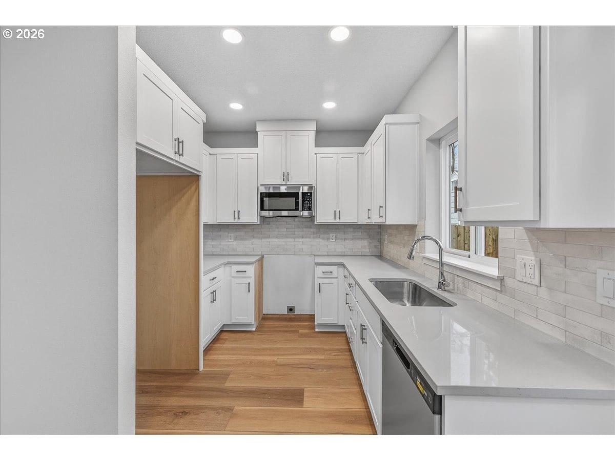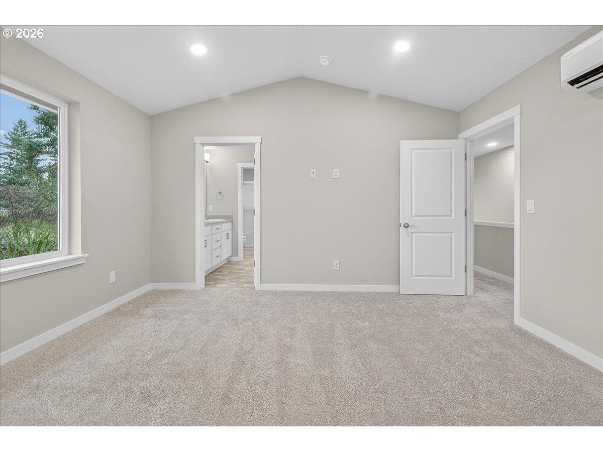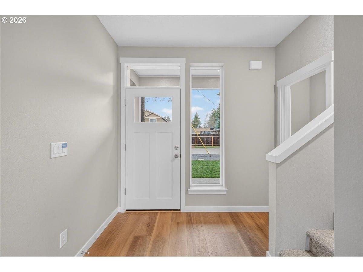 Thoughtfully designed new construction offering a smart, efficient floor plan w/ clean modern finishes. The inviting entry opens to a light-filled main living area w/ high ceilings and durable, easy care flooring and features a large slider that connects seamlessly to an oversized patio - ideal for indoor-outdoor living. Kitchen is well laid out w/ ample storage, generous counter space and S/S appliances, making it both functional and visually appealing. Upstairs, the Primary Suite provides a private retreat w/ vaulted ceilings, a full bathroom and a walking in closet. Convenient upstairs laundry adds everyday practicality. Additional highlights are excellent natural light, fully fenced backyard w/ professional landscaping and an efficient mini-split heating & cooling system throughout the home offering year-round comfort and energy-conscious climate control.