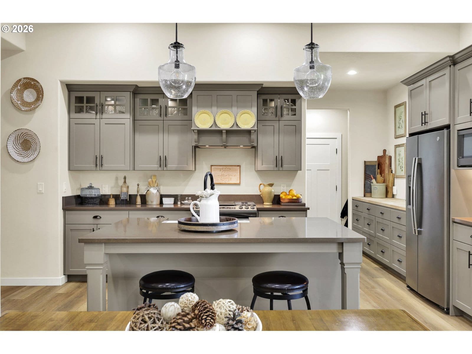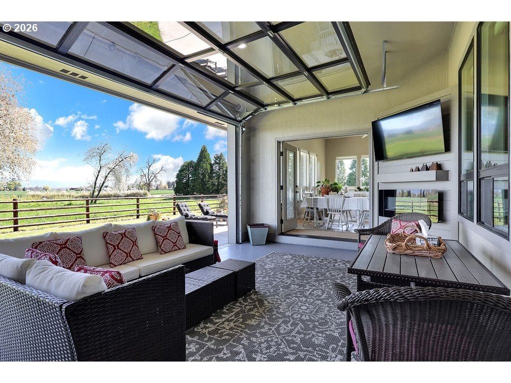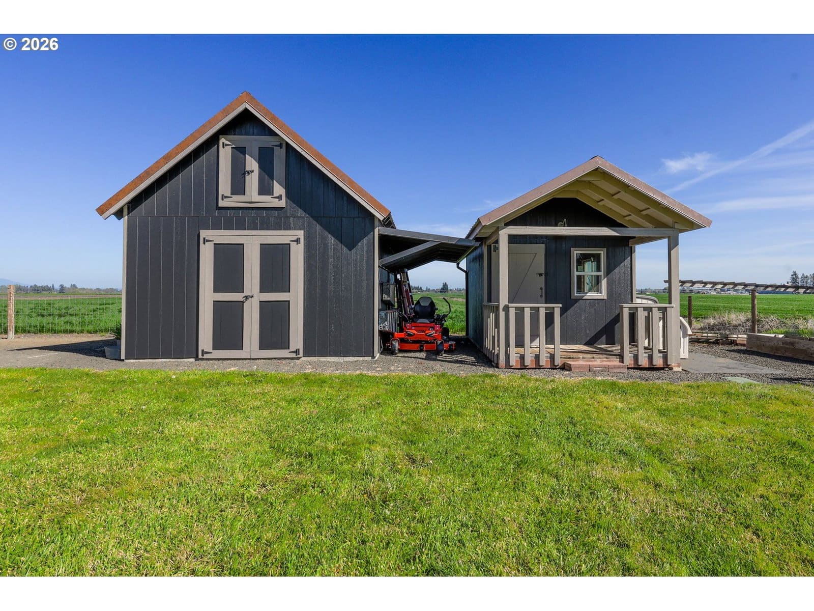 Discover this rare, owner-designed and built custom home, now on the market for the first time. Set on 2.66 private taxable acres (RR5 zoning) with exclusive irrevocable rights to approx. 1.38 additional acres of the neighboring property recorded with a "View & Use Easement" for a total of approx. 4.04 acres. The home enjoys breathtaking Eastern views of the Coburg Hills and award winning sunsets & sunrises that paint the sky. Exceptional privacy and versatile rural living are yours just 1 mile from Junction City. The spacious interior impresses with 11 ft ceilings throughout the main level, while thoughtful efficiency upgrades include a solar attic vent fan, 16 SEER high-efficiency heat pump, hybrid heat pump water heater, gas fireplace rated at 2,600sqft and generous 4-foot overhangs around the entire house. A robust 380-amp elec. service is pre-wired for a whole-house generator, complemented by 30 & 50-amp RV hookups (w/ water), attic wiring for future power needs, a custom private entry gate w/new Ghost gate opener, water/power at the gate, and dedicated Xfinity service. Outdoor amenities abound featuring an over sized 18’ glass roll up door on the sunporch, w/electric fireplace, BBQ, refrigerator, TV, outdoor shower, half bath off the back patio, and a fenced concrete patio off the Master bath rated for a hot tub. 14’x14’ storage shed w/elec., 10’x16’ garden/she shed w/elec. & sink, underground irrigation system, fully fenced pasture, an 80’ deep private well (50+ GPM), 1500-gallon septic, 250 gallon buried propane tank. Additional perks include all appliances staying with the home. This infrastructure-rich property with just over 4 acres of usable land is perfect for hobby farming, RV living, multigenerational households, or anyone seeking a peaceful, self-sufficient rural retreat with modern comforts. An incredible opportunity to own this unique nearly 5 year old home!