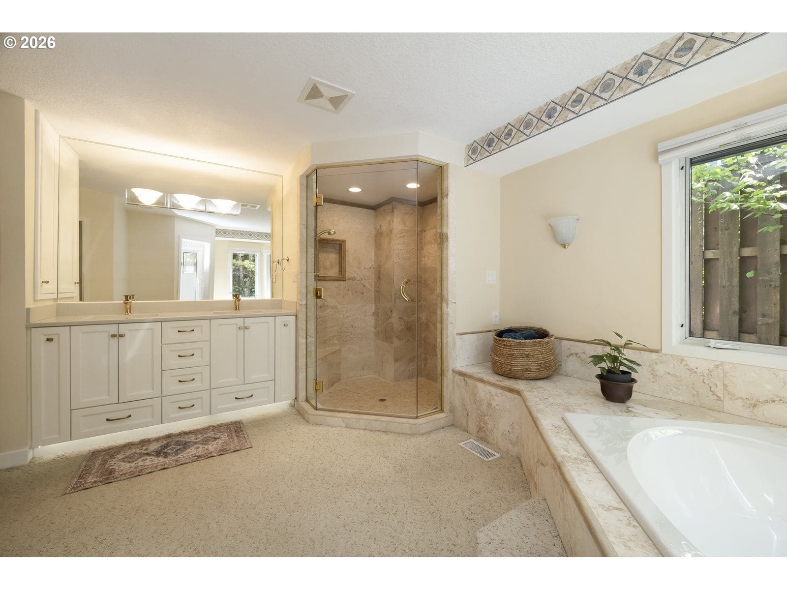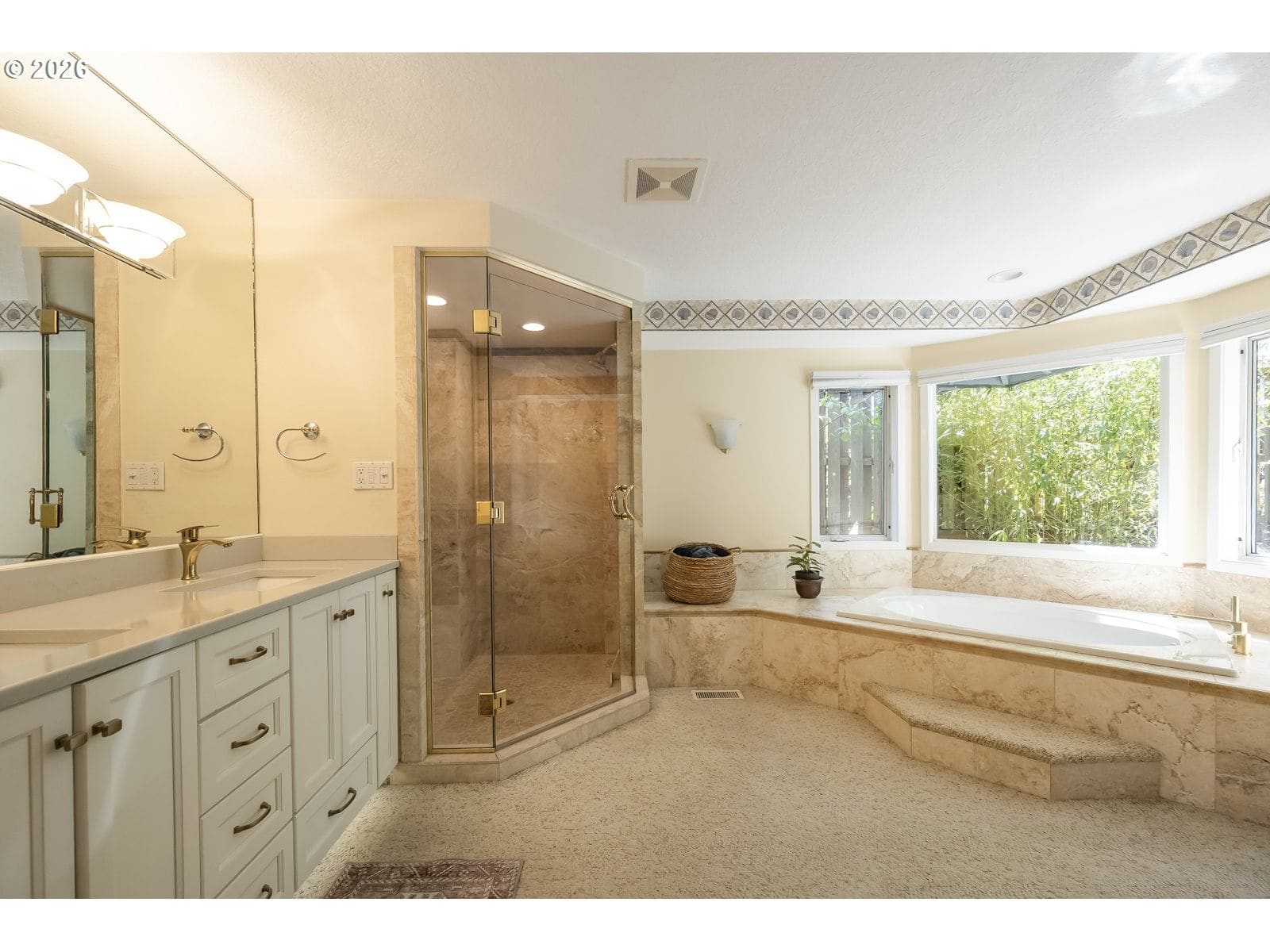 Tucked away on a quiet cul-de-sac on Hanneman Court, this lovely home offers privacy, quiet and tranquillity. The beautifully landscaped garden offers surprises year-round. The backyard is a true retreat. The upper-level deck off of the family room offers views of the yard and sky. Inside, the open-concept floor plan creates a seamless flow between living and entertaining spaces. Bedrooms located at the opposite end of the home offer flexibility and can easily serve as private caretaker quarters or intergenerational living. The cozy family room provides a great space for movie or game nights.Additional highlights include a soaking tub, upgraded bathrooms, kitchen, laundry room and oversized garage. Easy everyday living, with a blend of comfort, versatility, and peaceful surroundings. Open House - Saturday 11a-1p