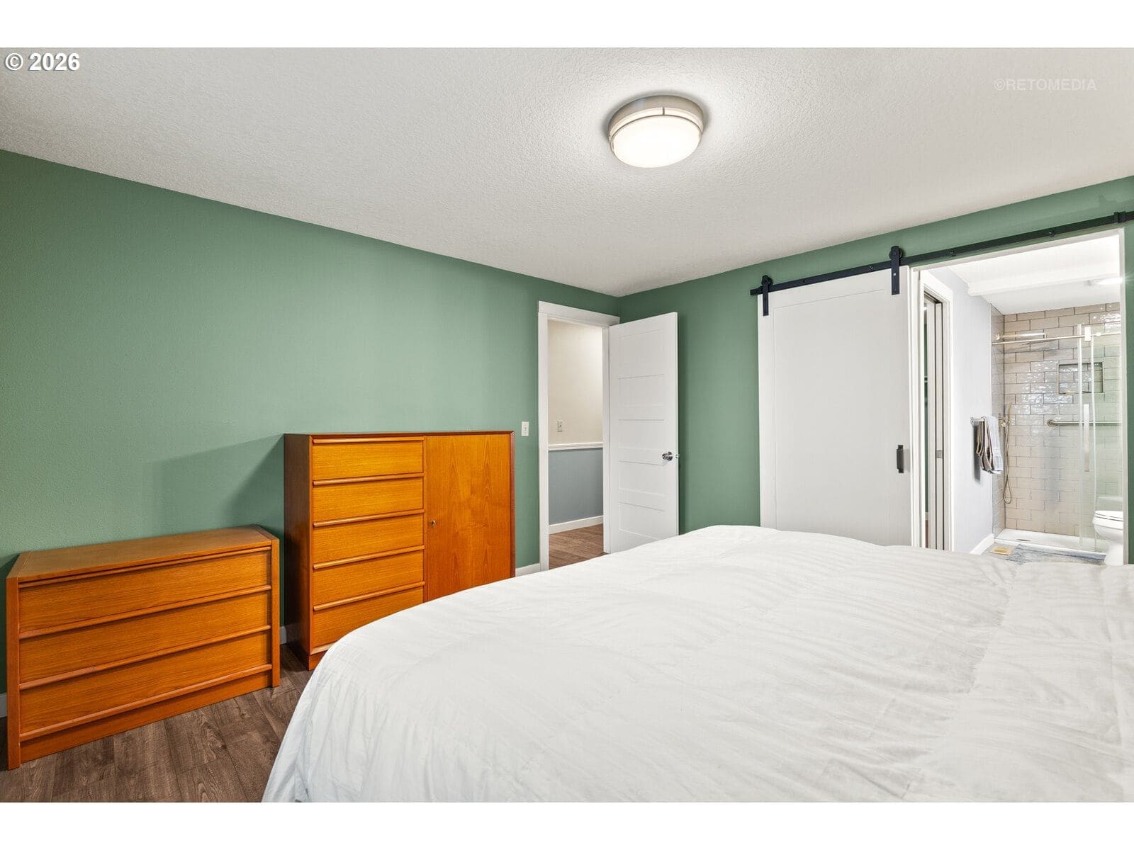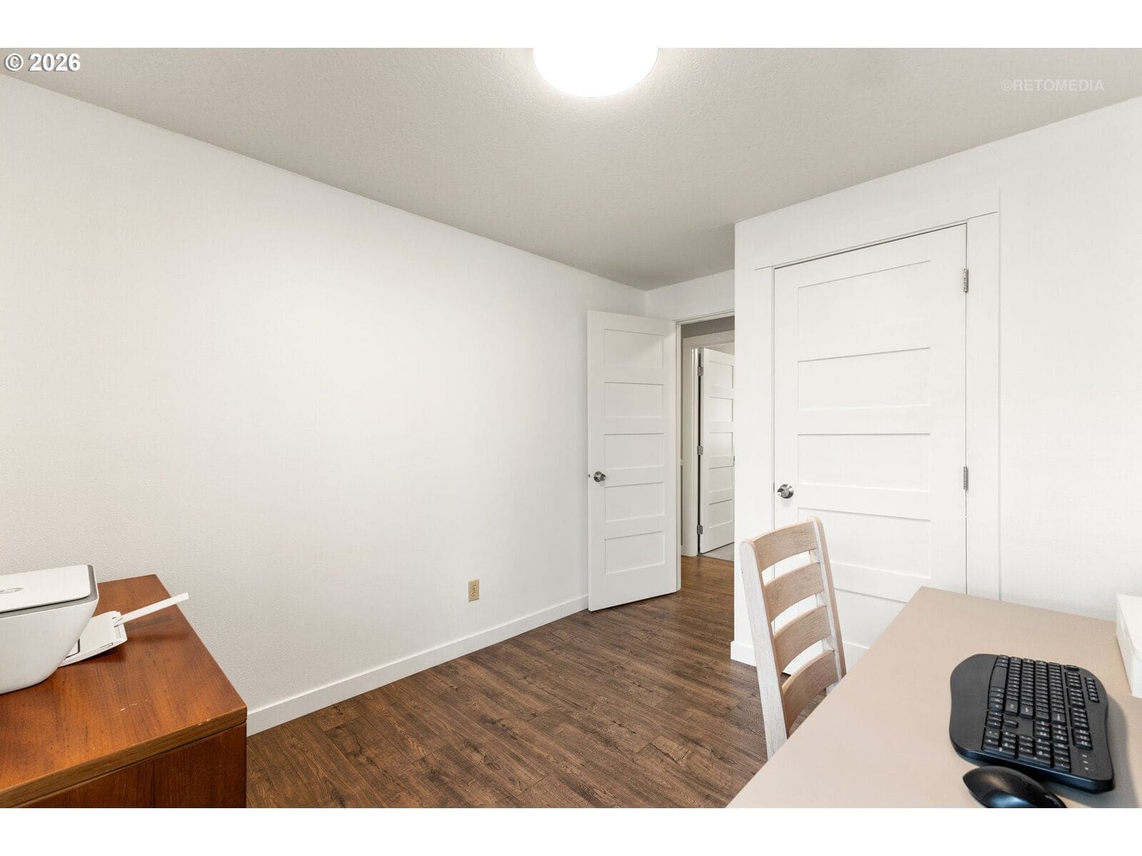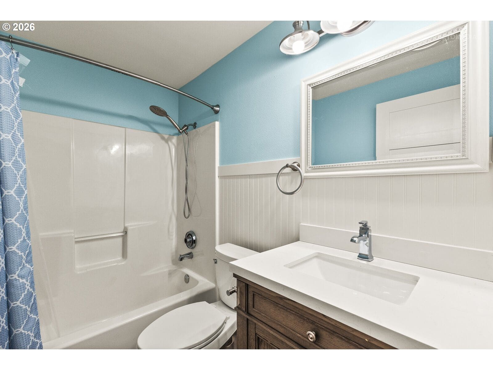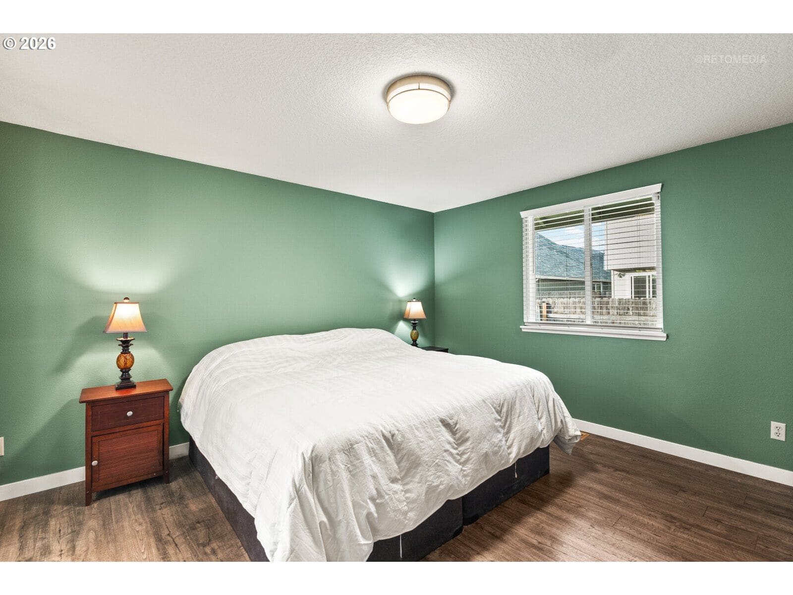 Bright, refreshed, and truly move-in ready, this Rock Creek home delivers stylish one-level living designed for comfort and connection! Just inside, a well-organized entry with a convenient drop zone keeps the daily essentials organized. Vaulted ceilings, bay windows, and plantation shutters fill the living room with natural light, while the adjacent dining area provides a welcoming space to gather. The chef’s kitchen impresses with quartz surfaces, a full-height tile backsplash, custom cabinetry, a statement Bertazzoni range, and a Miele dishwasher. Everyday ease with generous counter space, pantry storage, and a large island with eat-bar seating, perfect for casual meals and conversation. The family room centers around a showpiece fireplace with floor-to-ceiling tile and a reclaimed wood mantel, opening to effortless indoor-outdoor living through a slider to the extended patio. Luxury vinyl plank flooring runs throughout the main living areas. The private primary suite offers a relaxing retreat with a walk-in closet and refreshed bath featuring a dual-sink vanity and tile-wrapped walk-in shower. Two additional well-sized bedrooms and a stylishly updated hall bath with beadboard accents provide flexibility for family and guests. A laundry closet with built-ins includes the washer and dryer. Outside, enjoy a fully fenced backyard with stamped concrete patio, firepit, and built-in seating, ideal for relaxing evenings and entertaining. Additional highlights include central air conditioning, a 2-car garage, and recent updates such as exterior paint and driveway (2024), along with kitchen cabinets, quartz counters, and skylight (2023). Ideally located in the coveted Rock Creek neighborhood, convenient to HWY 26, schools, shopping, dining, parks, and trails, this is one-level living done right!
