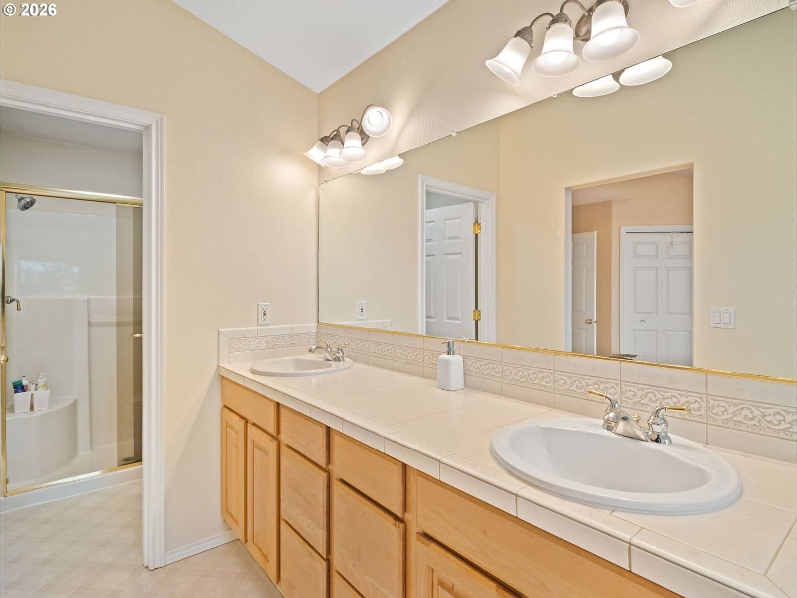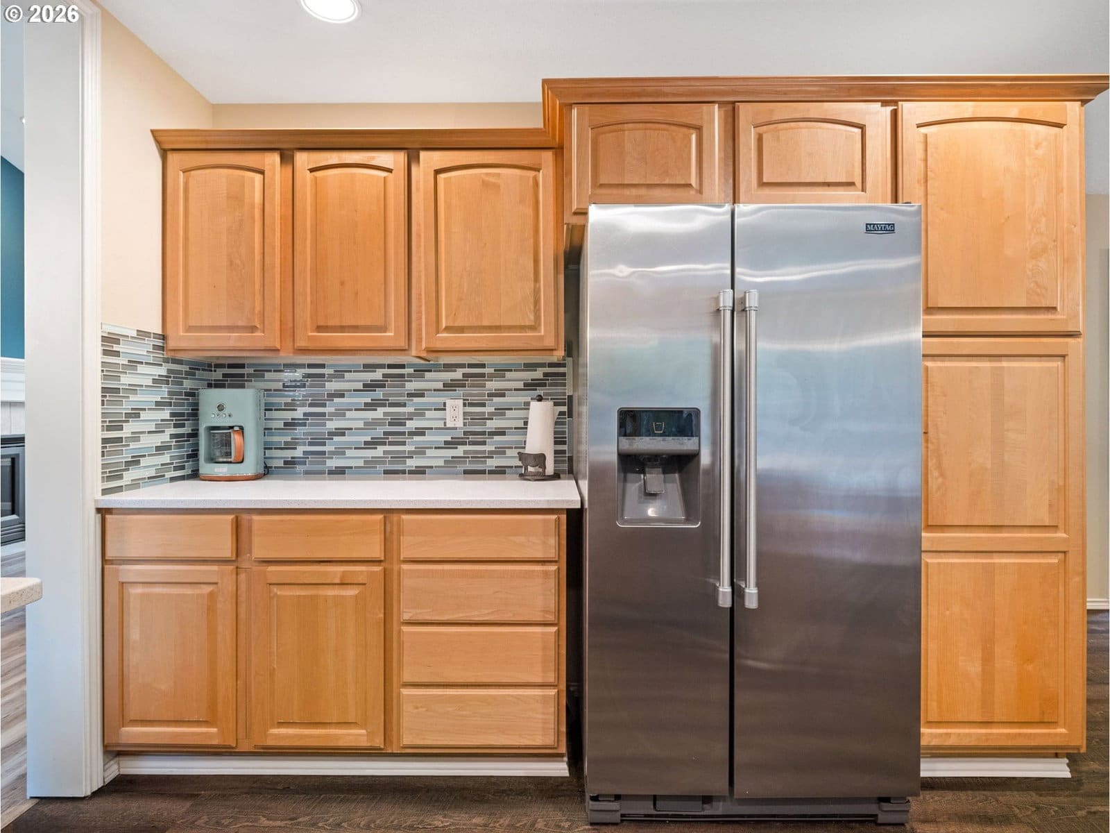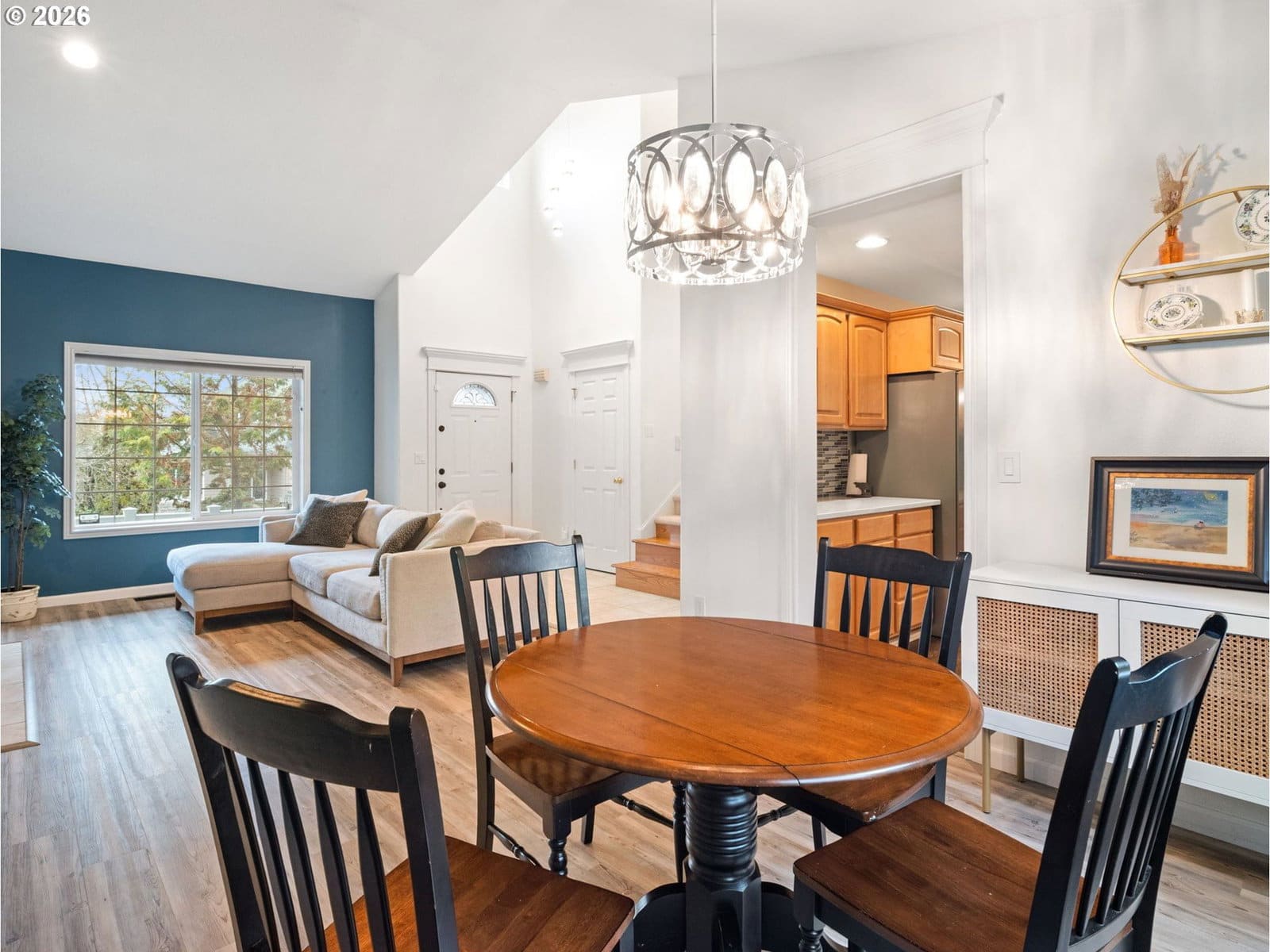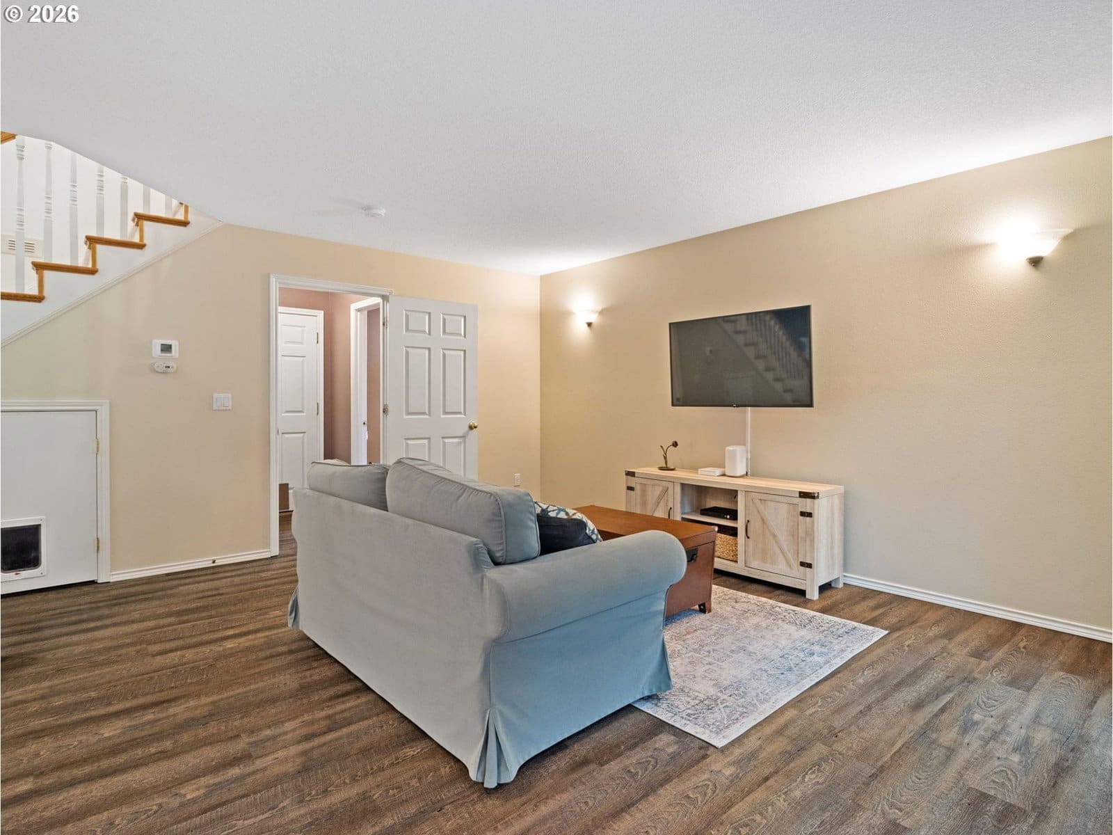 Nestled in the idyllic Bull Mountain community, this charming abode offers comfort, privacy, and an unbeatable location. Vaulted ceilings highlight the spacious living and dining rooms, creating an open, welcoming atmosphere. Every room including living areas, kitchen, family room, and bedrooms shine with natural light. The kitchen features quartz counters, stainless steel appliances, ample storage, and surrounding views of the peaceful backyard. On the upper level, the large primary suite includes vaulted ceilings, a walk-in closet, dual sinks, and a jetted tub. Two additional bedrooms are generously sized, each with vaulted ceilings and backyard views. Step outside to a tranquil, private backyard with a low-maintenance Trex deck and chiminea—perfect for relaxing or entertaining. Enjoy a walkable neighborhood and a prime location less than a mile from Progress Ridge shopping, restaurants, and cinema. Numerous updates provide peace of mind, including a newer gas furnace, dishwasher, air conditioner, microwave, washer/dryer, water heater, new flooring, and new carpet. This Bull Mountain beauty blends style, charm, and modern convenience in an ideal Portland metro-area location. Don’t miss it!