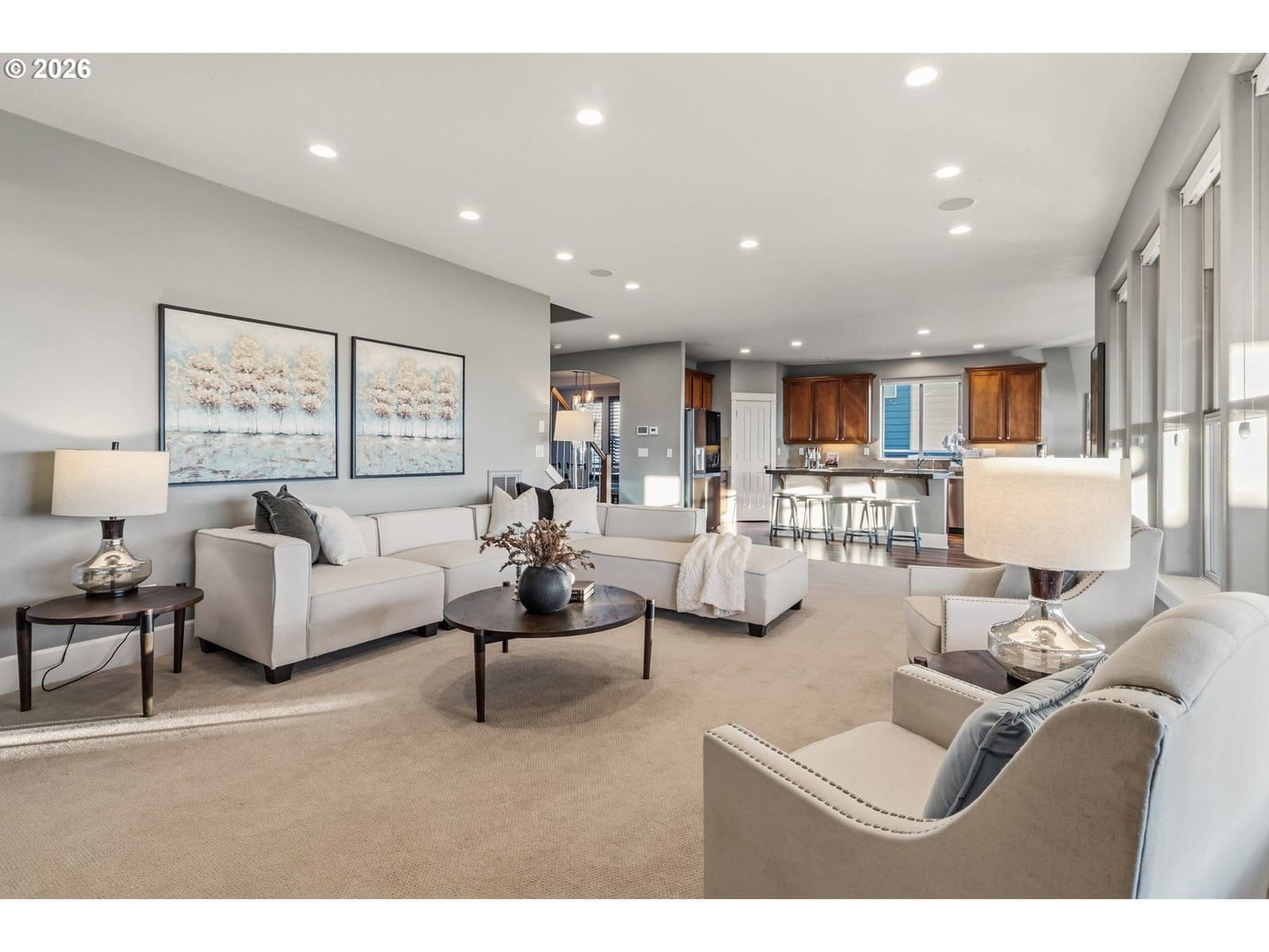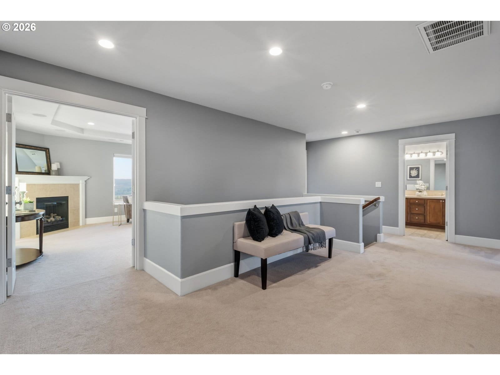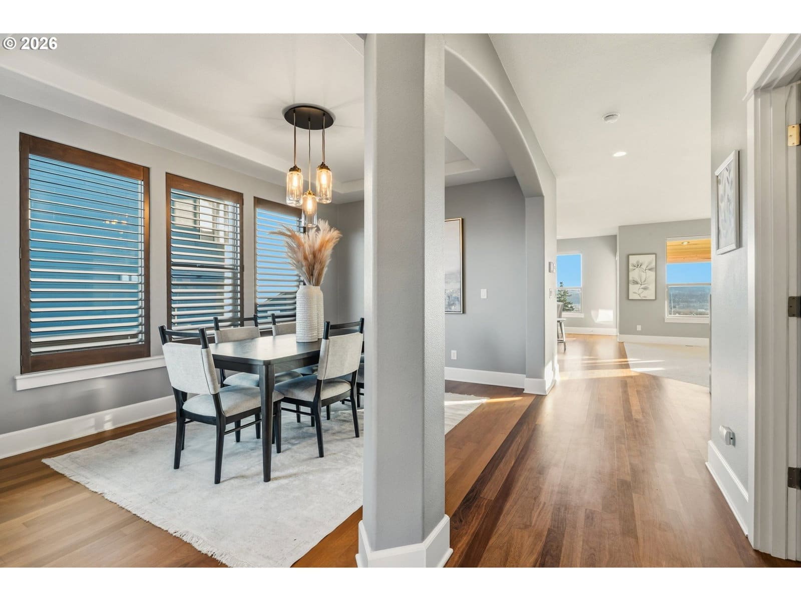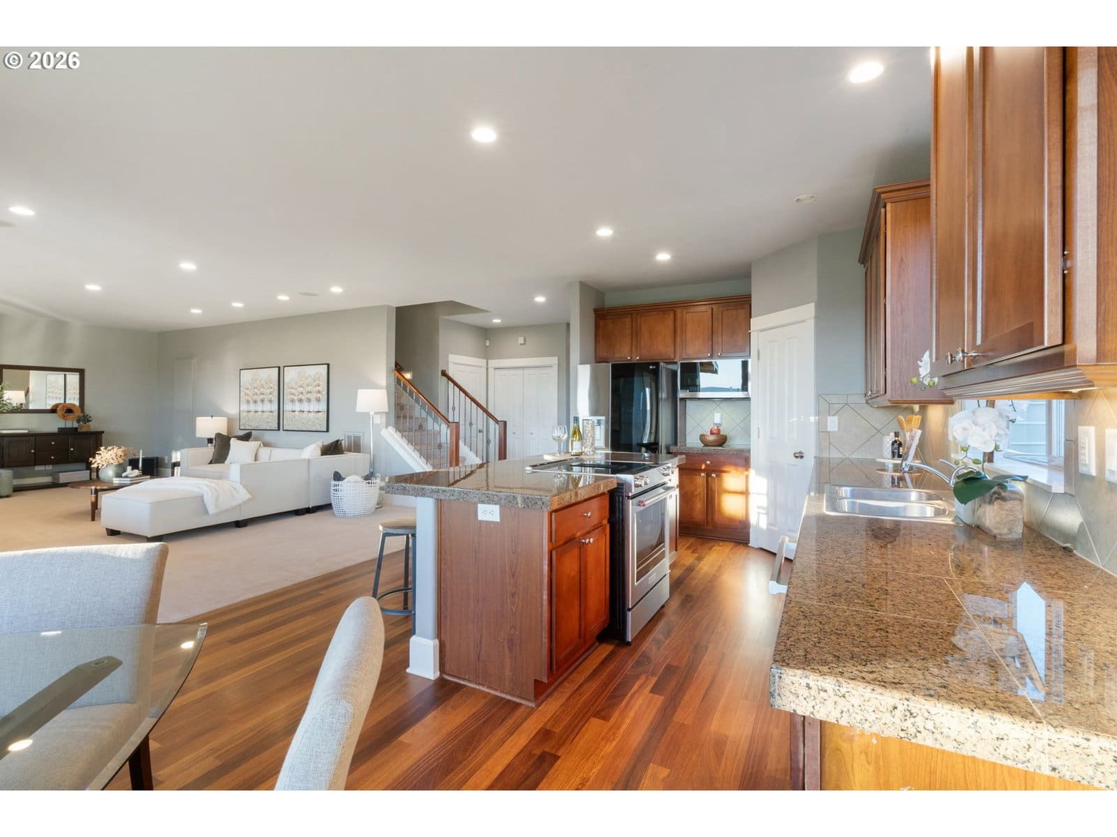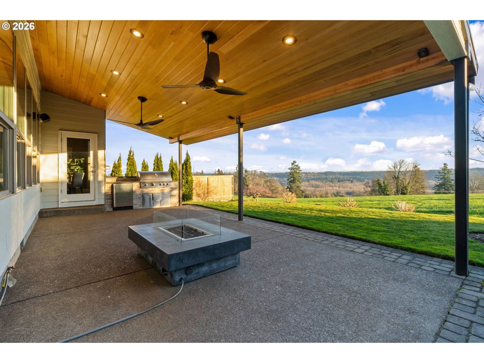 Expansive views grace a spacious, upscale home w/ warm, elegant granite & wood finishes. Excellent open plan & flow on main level. Kitchen boasts new fridge & range, wood cabinets, & granite tile. Separate office or den w/ window bench seat, built-ins, & hardwood floors. Upstairs has 4 beds, laundry, & large bonus room & flex space. Primary suite w/ gas fireplace, soaking tub, & mountain views. Outdoors find serene fields & tree-covered hills from the covered patio w/ SS grill, gas firepit, & ceiling fans.
