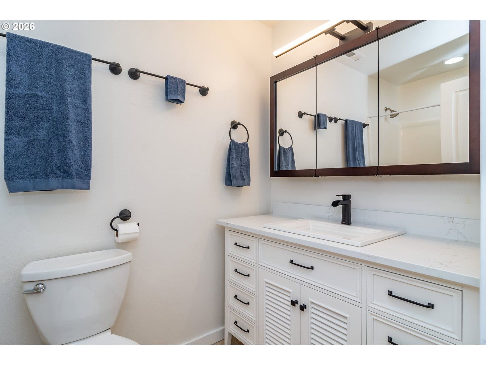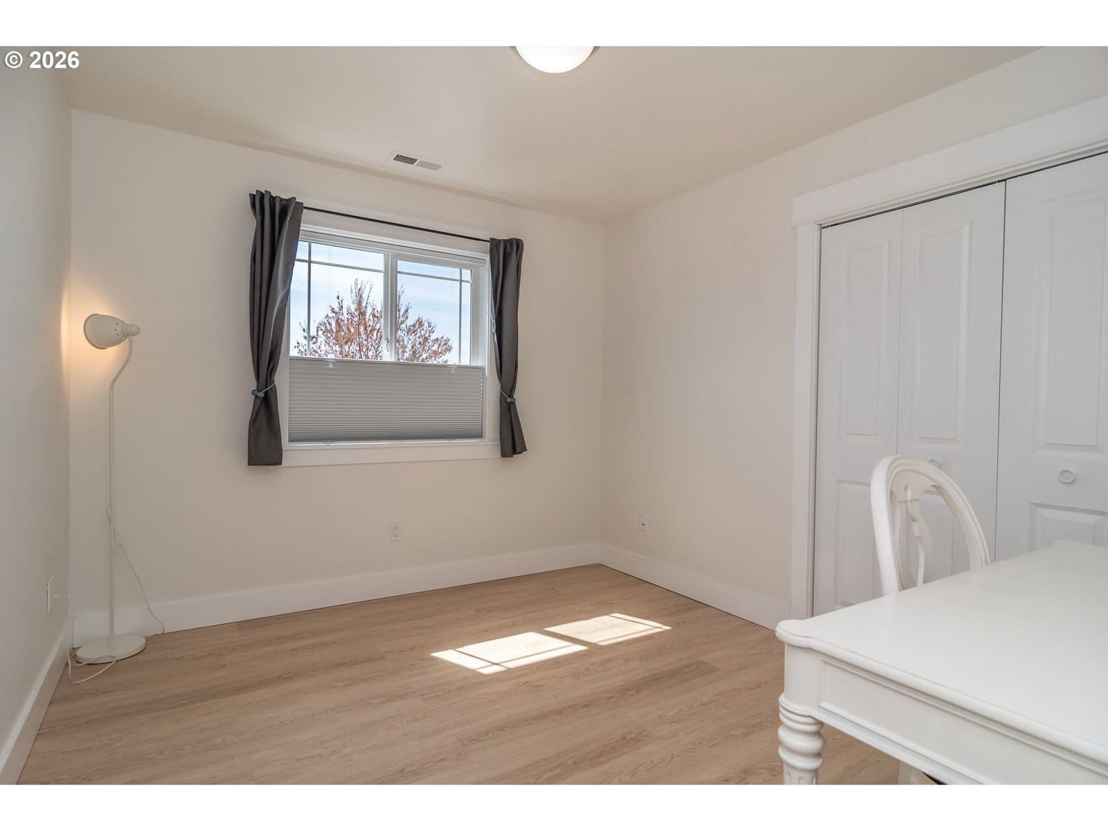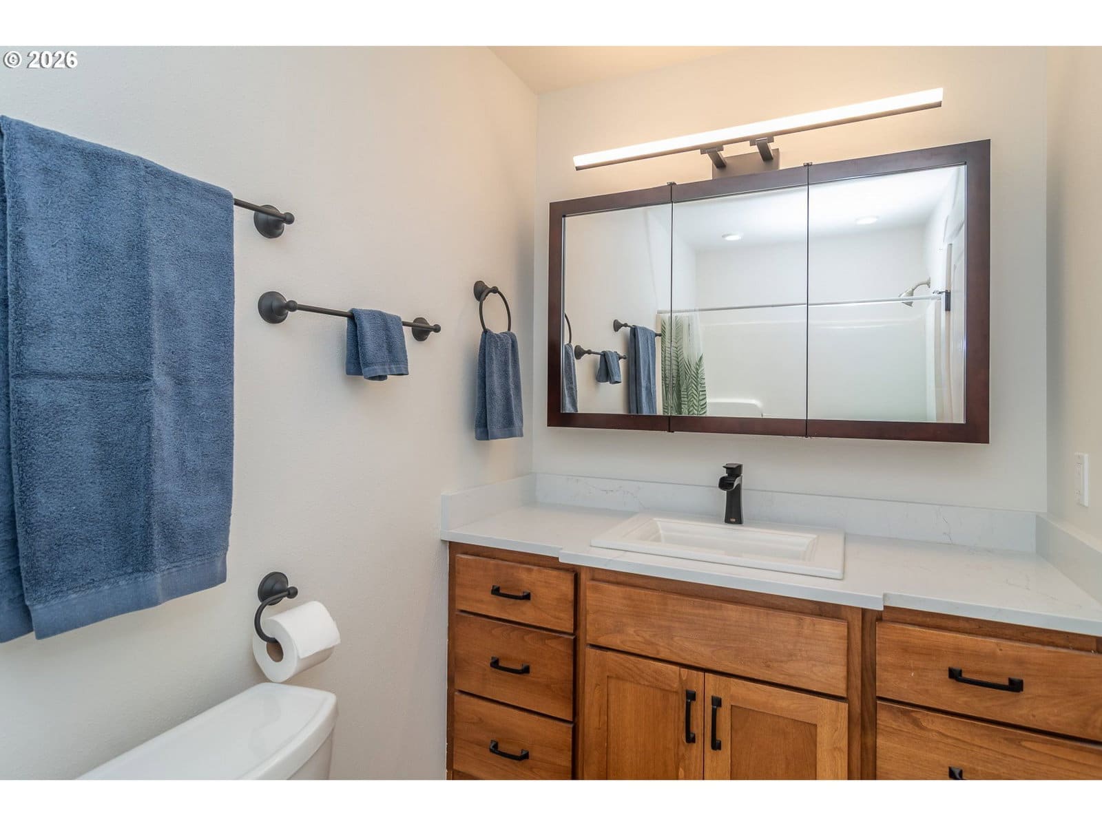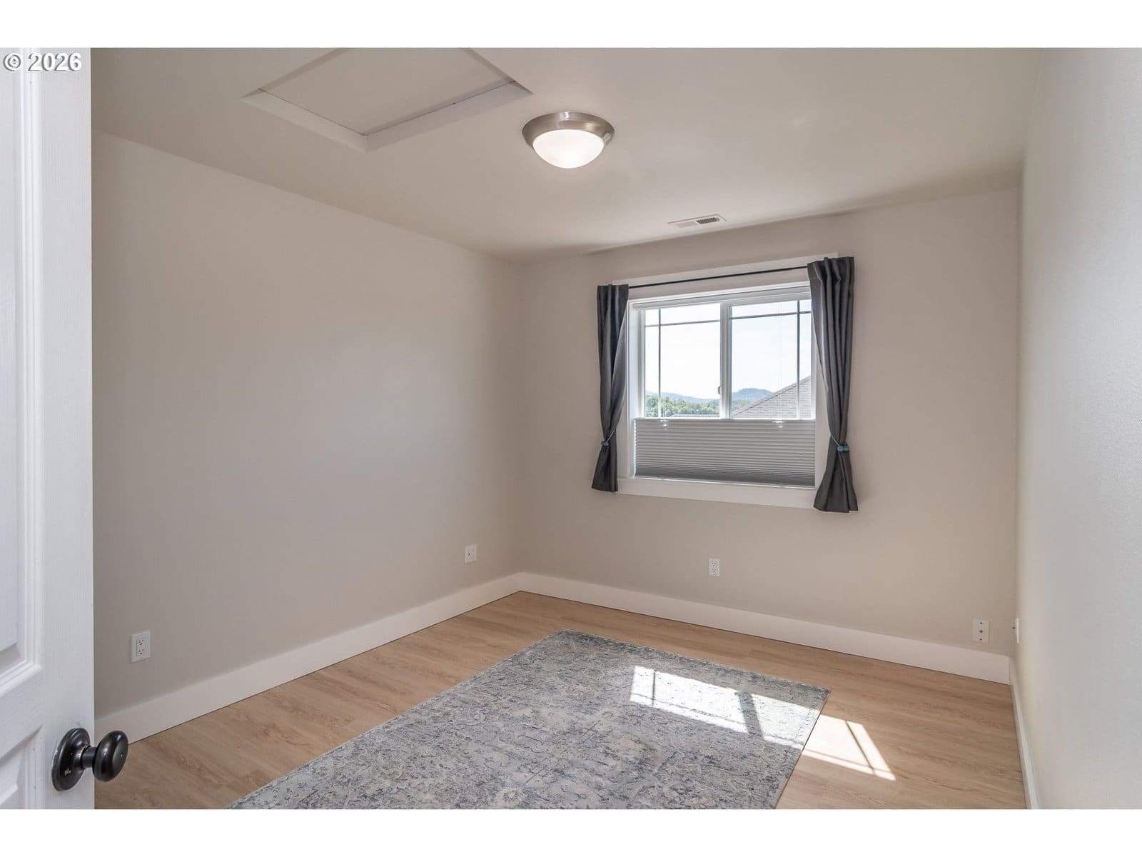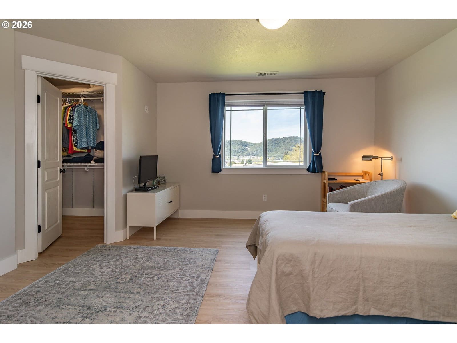 Welcome to this unique view home in the highly sought-after Sunset View neighborhood, featuring spectacular 360-degree views of the city and natural landscape. The efficient floor plan offers 3 bedrooms including owner’s suite, 2 baths, a 2-car garage, and a wonderful open concept living area. Stunning ebony floors, vaulted ceilings and warm neutral walls create a memorable first impression upon entry, and the covered front porch, rear patio, and giant level fenced yard provide opportunities for indoor-outdoor living near all of Roseburg’s amenities and shopping. A newer neighborhood with sidewalks and safe nearby walking routes, friendly neighbors and the best views in town wrap everything up in a hard-to-find package. Complete interior remodel in 2024 included an updated minimalist kitchen and bathroom design with quartz counters, Kohler sinks, all new appliances and chic black hardware, lighting, and giant medicine cabinets for storage. Other 2024 upgrades include interior paint, gorgeous LVP flooring in the bedrooms, blackout up-down/down-up cellular blinds and curtains, front entry and security doors, and a brand new $13K HVAC system with smart thermostat. All appliances, including the new washer-dryer, stay with the house. Site is notable for auspicious feng-shui bringing good vibes to the property. This location is midway down a south-facing slope on a U-shaped meandering street, all underground utilities to enhance the amazing views, and an indirect pathway to the front door buffered by evergreen vegetation. Current owner planted flowering perennials out back and 100 beautiful all-white daffodils in the front planter bed just last Fall! Step outside to the back yard and see the Spanish tile rooftop of the Classical Revival US Veteran’s Hospital, the Callahan Mountains, I-5, Winston, city lights at night, over-the-top sunrises and sunsets, airport landings and take-offs, and one of the best spots in the whole county to enjoy fireworks!! Welcome!!