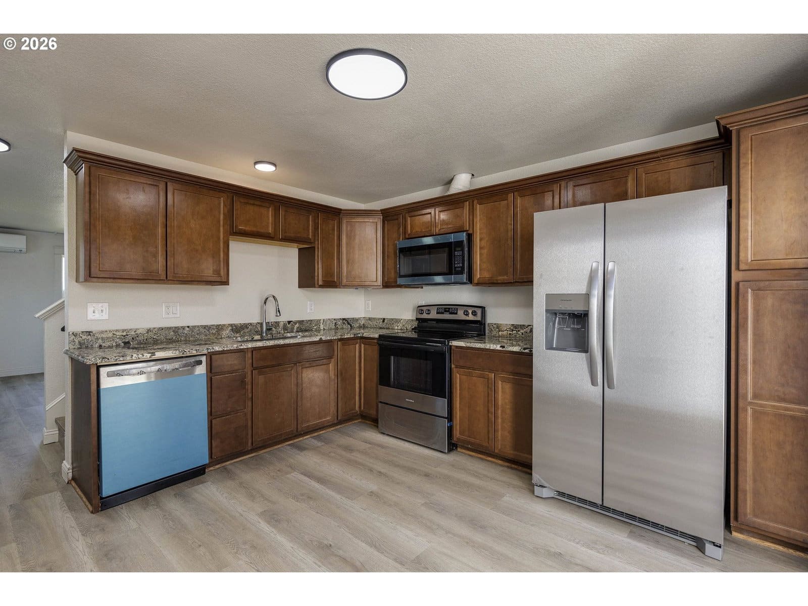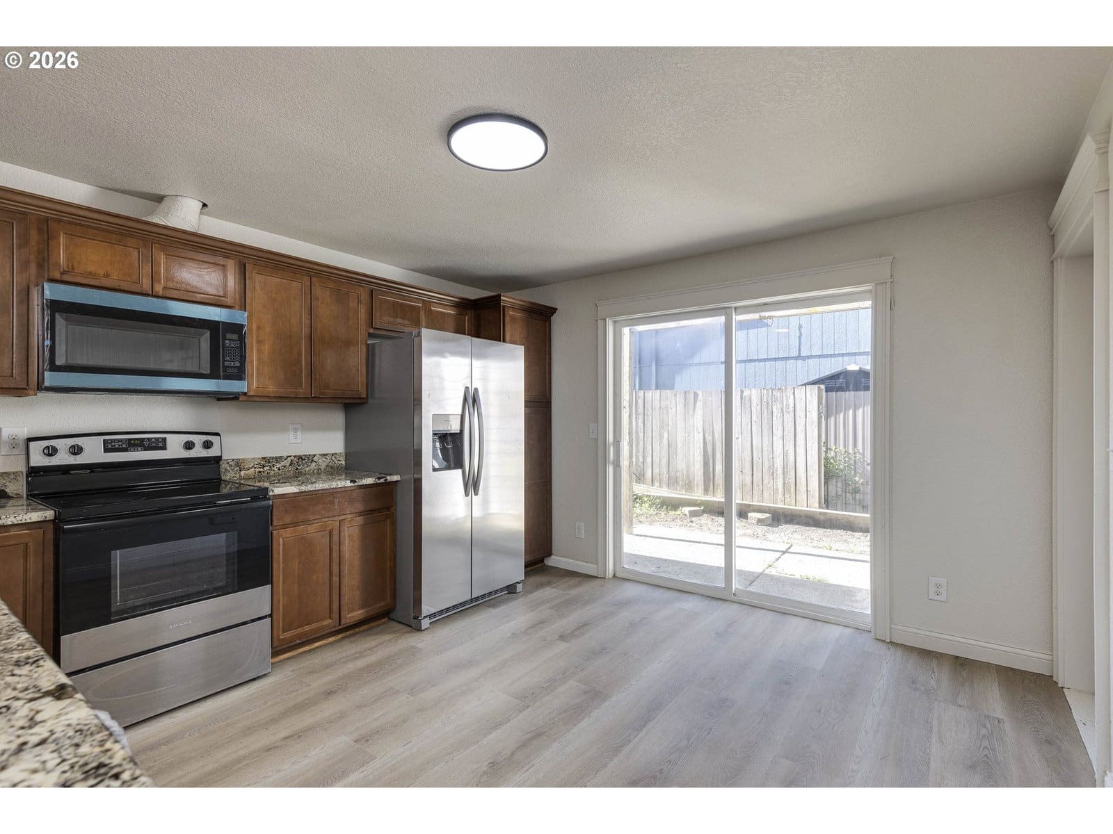 Welcome to this beautifully updated two-level home on a desirable corner lot in the community of Gervais. Built in 1997, this 4 bedroom, 2 bathroom home offers 1,374 square feet of comfortable living space with numerous recent upgrades that make it truly move-in ready. Inside, you'll find brand new laminate hardwood flooring, fresh interior paint, and new lighting and fixtures that create a bright, modern feel throughout the home. The kitchen features granite countertops, offering both style and convenience for everyday cooking and entertaining. New major appliances. Important exterior upgrades provide long-term value and peace of mind, including a new roof, vinyl windows (installed one year ago), new exterior paint and a new garage door. Situated on a corner lot, the property offers additional space and privacy, while the backyard shed provides excellent storage for tools, lawn equipment, or hobbies. With its functional two-level layout, four bedrooms, extensive upgrades, and prime corner lot location, this home presents a fantastic opportunity for buyers seeking comfort, modern updates, and move-in ready convenience.