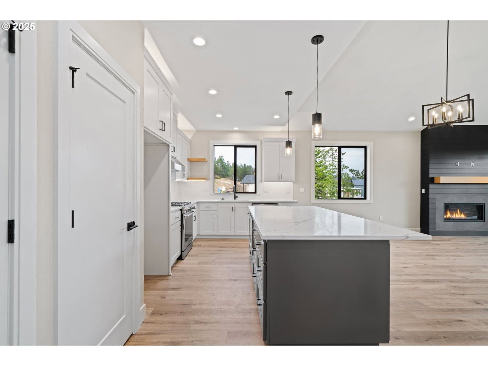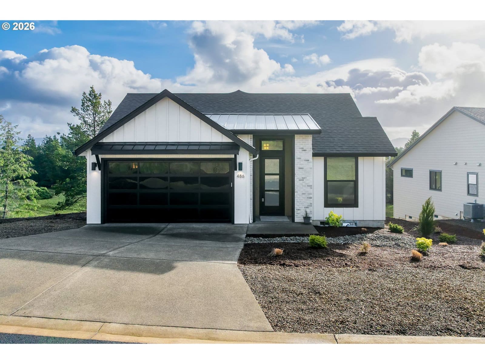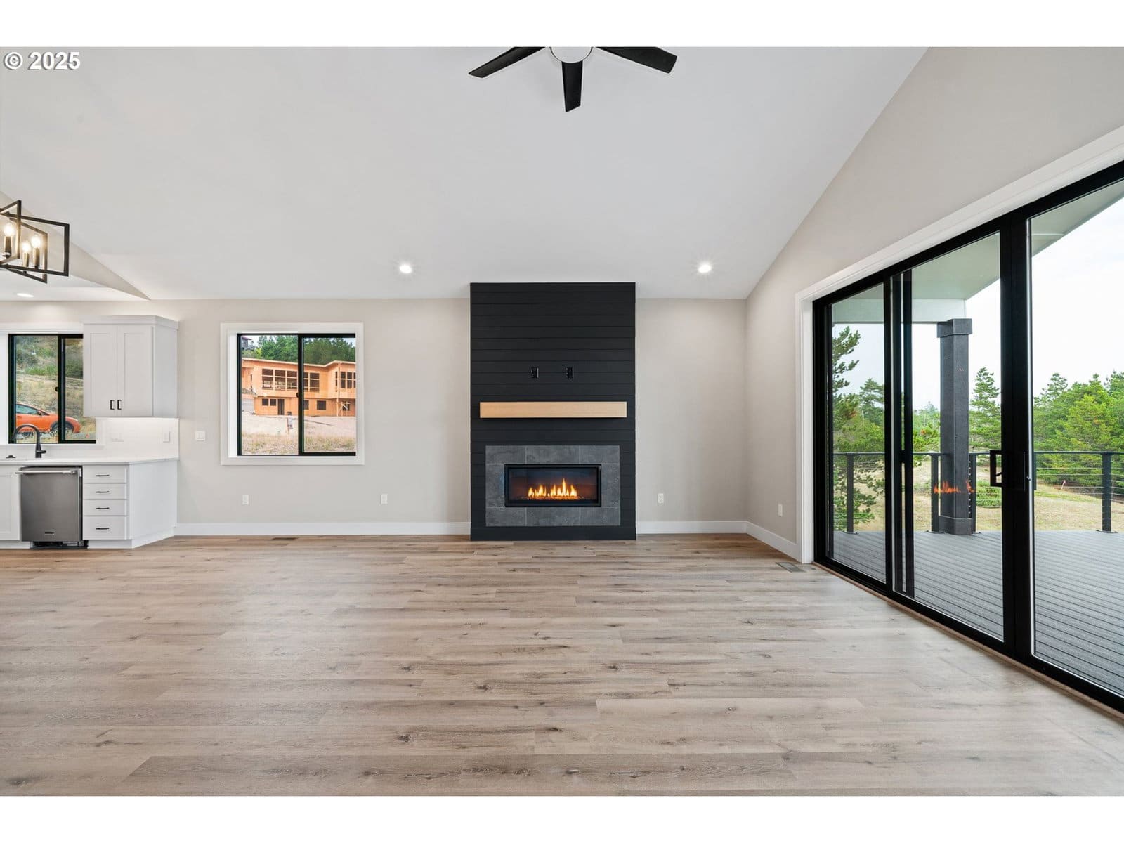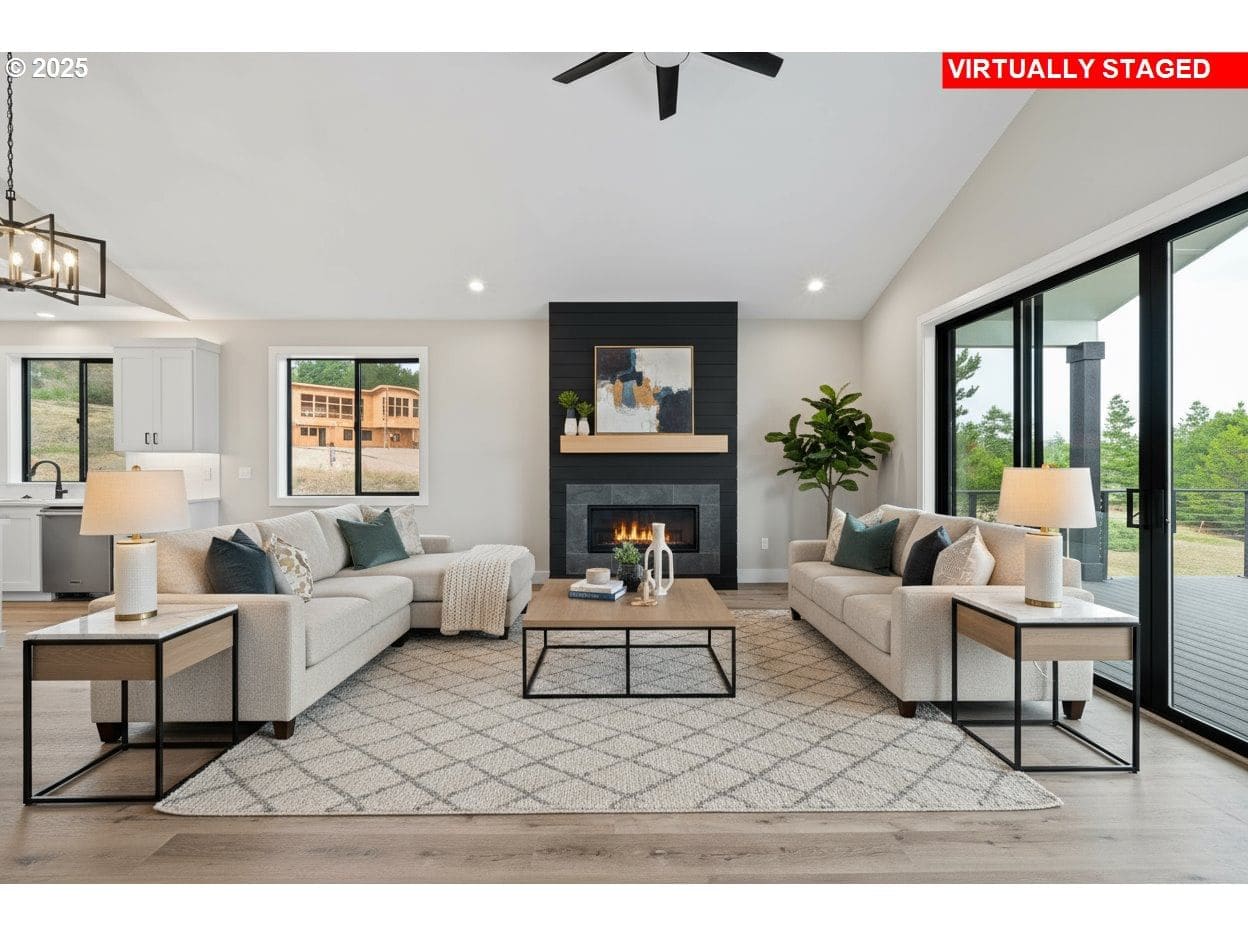 This stunning Coastal Modern Daylight Ranch, located in the newly developed "Highlands at Manzanita" subdivision, boasts modern finishes throughout, including exquisite quartz counters and stylish LVP flooring. The primary bedroom is complete with double sink vanity, a luxurious soak tub, a separate tiled shower, and a spacious walk-in closet. The vaulted great-room in this home creates a spacious and airy atmosphere, enhanced by a cozy gas fireplace and slider doors that lead to a covered vaulted deck where you can enjoy partial view of Nehalem Bay all the way towards Twin Rocks. This seamless transition from the indoor to the outdoor living area allows for easy entertainment and relaxation. The great-room opens up to the dining area and kitchen, providing a harmonious flow throughout the space. The kitchen is highlighted by a stylish island, a convenient pantry, and modern stainless steel appliances. Downstairs features a Family Room with fireplace and sliding doors to the covered patio and backyard. There is also a bedroom and full bath. The convenient location offers proximity to both the town and the beach. This impressive home is 100% complete and ready for it's first owners!