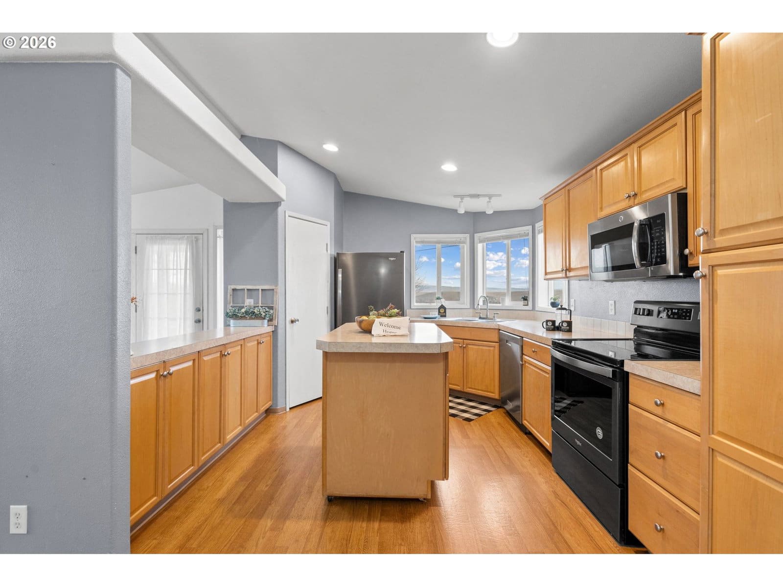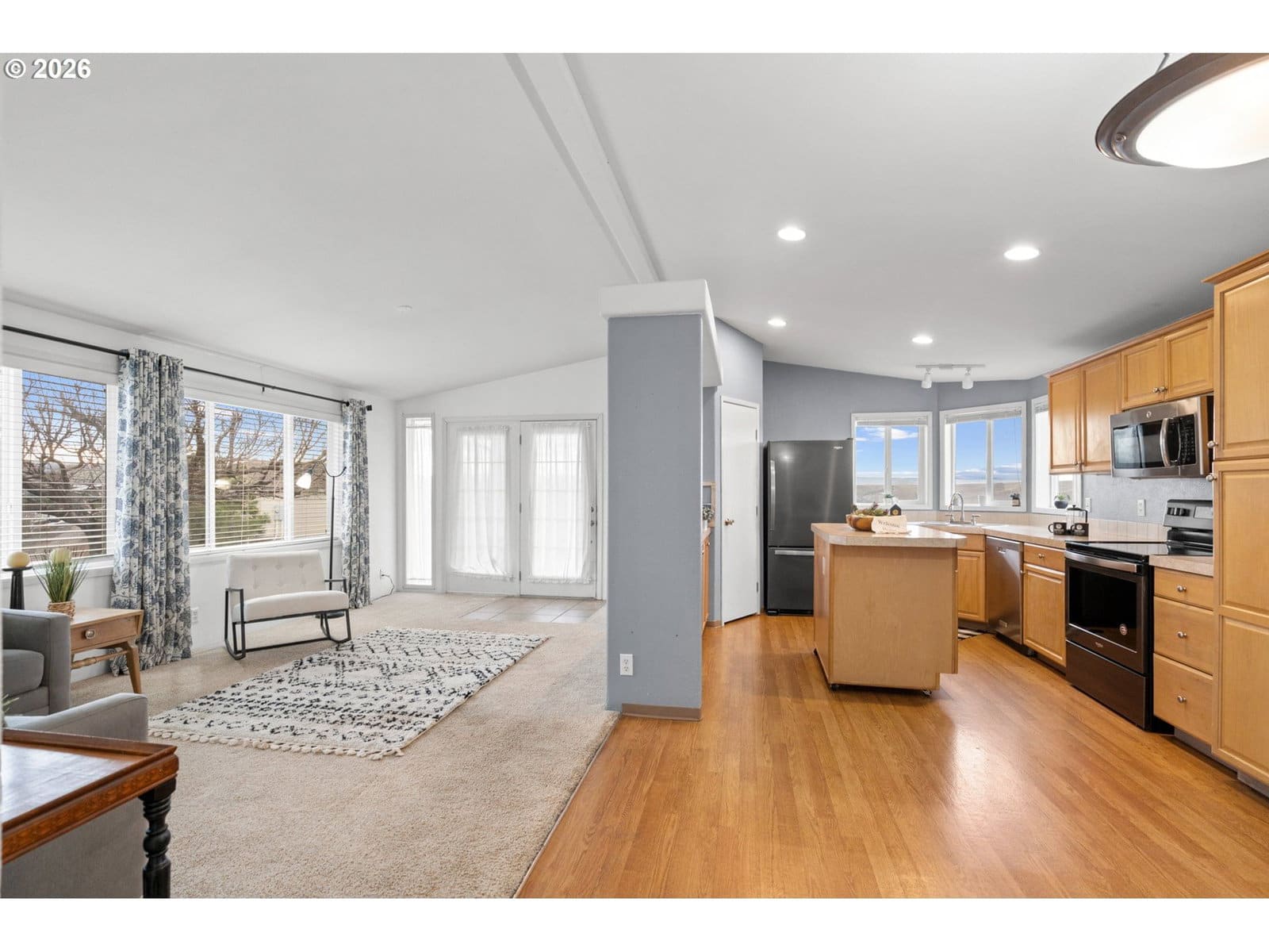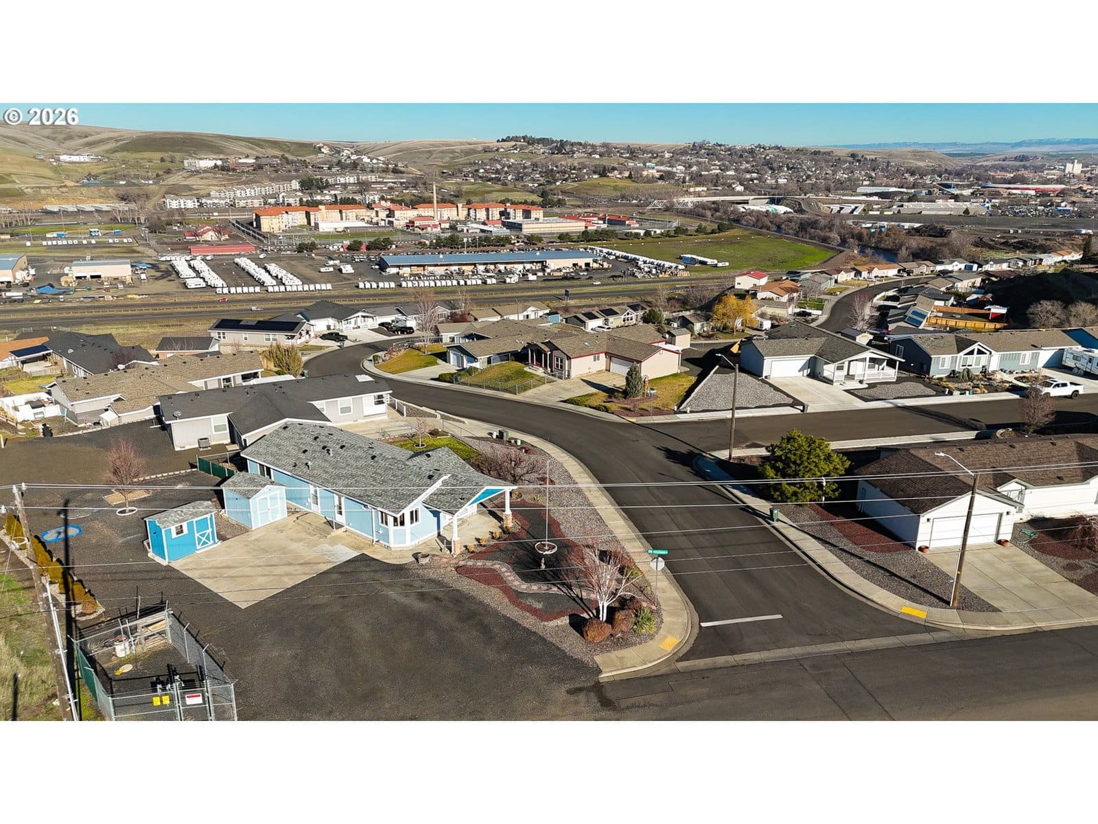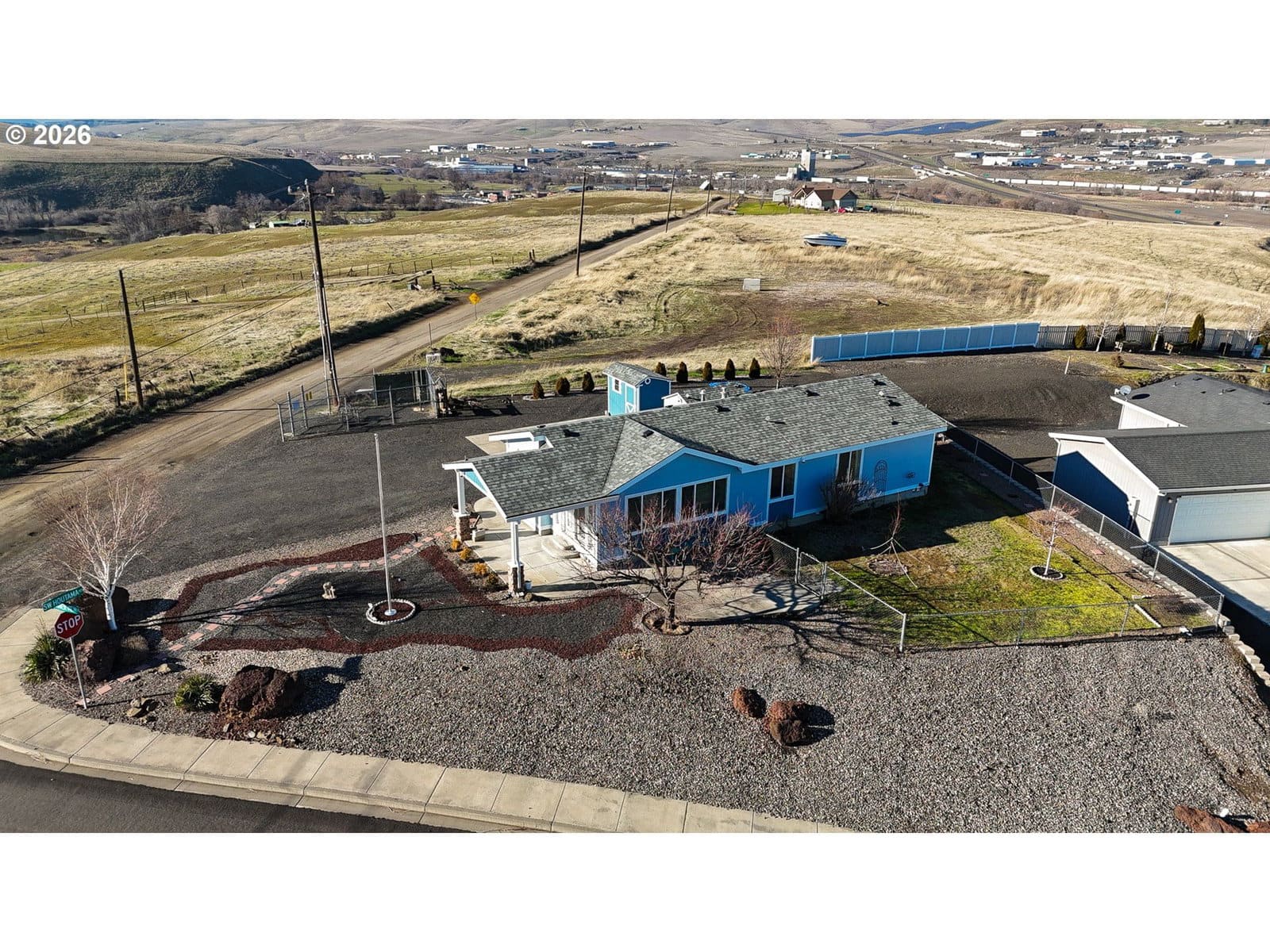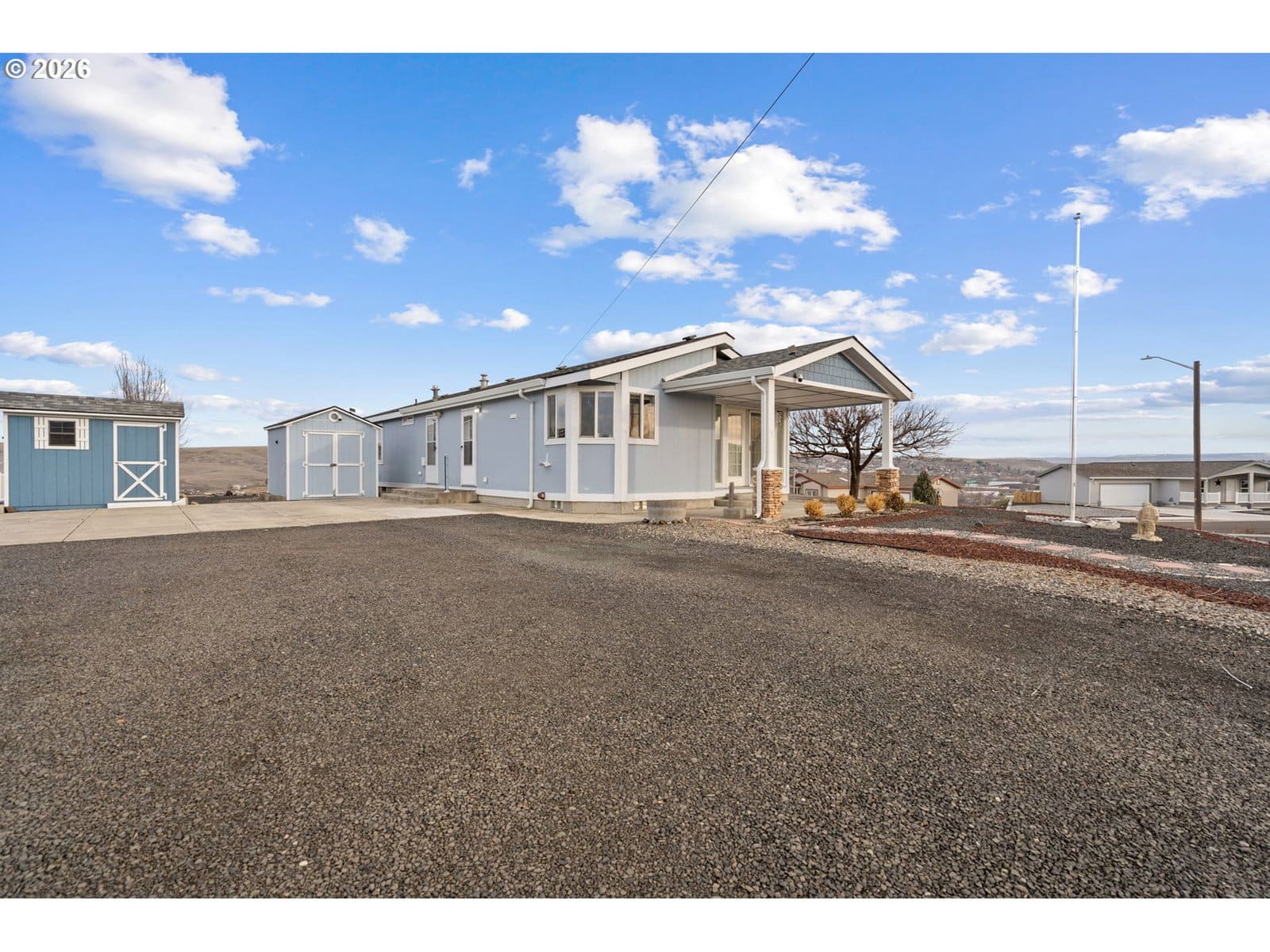 It’s all about the views! This sun-filled and welcoming 2007 Champion manufactured home sits on a spacious quarter acre corner lot in the Overlook Terrace Subdivision of Pendleton. The freshly painted exterior sets the tone for a well-maintained interior featuring 3 bedrooms and 2 full bathrooms, including a primary bath with a convenient walk-in shower. The open-concept living space seamlessly connects the living room, dining, and kitchen areas, offering plenty of counter space and newer kitchen appliances. Large double-pane vinyl windows throughout invite natural light, creating a bright and airy atmosphere. Recent upgrades include a new roof installed in May 2024, gutters, and a new gas furnace and AC unit installed February of 2025. Step outside to enjoy beautiful sunrises and sunsets from the front porch. The fenced yard features low-maintenance rock landscaping in the front, an apricot tree, and a gravel parking area. RV parking and space for toys! Two high-quality cedar garden sheds with wood gable roofs complete the property, one measuring 8x10 and the other 6x10. This home offers comfort, functionality, and thoughtful updates with 360 degrees of views. Schedule your showing today!