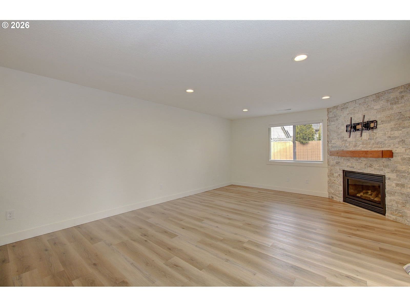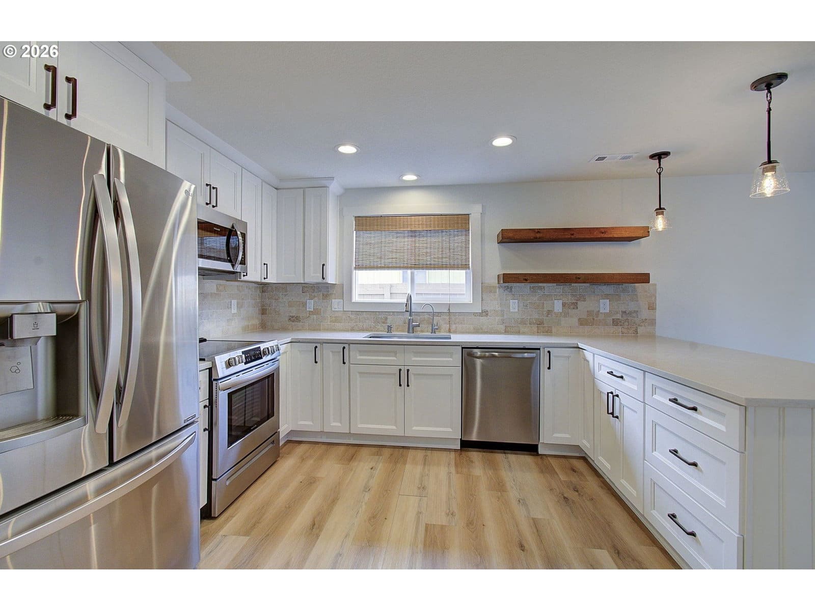 Single-level 3-bedroom, 2-bath home featuring a gas fireplace, two-car attached garage, and RV parking pad. The entire home has been updated and renovated in recent years, including a newer air conditioning unit for added comfort. The primary bathroom offers a tiled shower, and the well-laid-out living spaces make this home easy to enjoy and maintain, all in a convenient, desirable location.