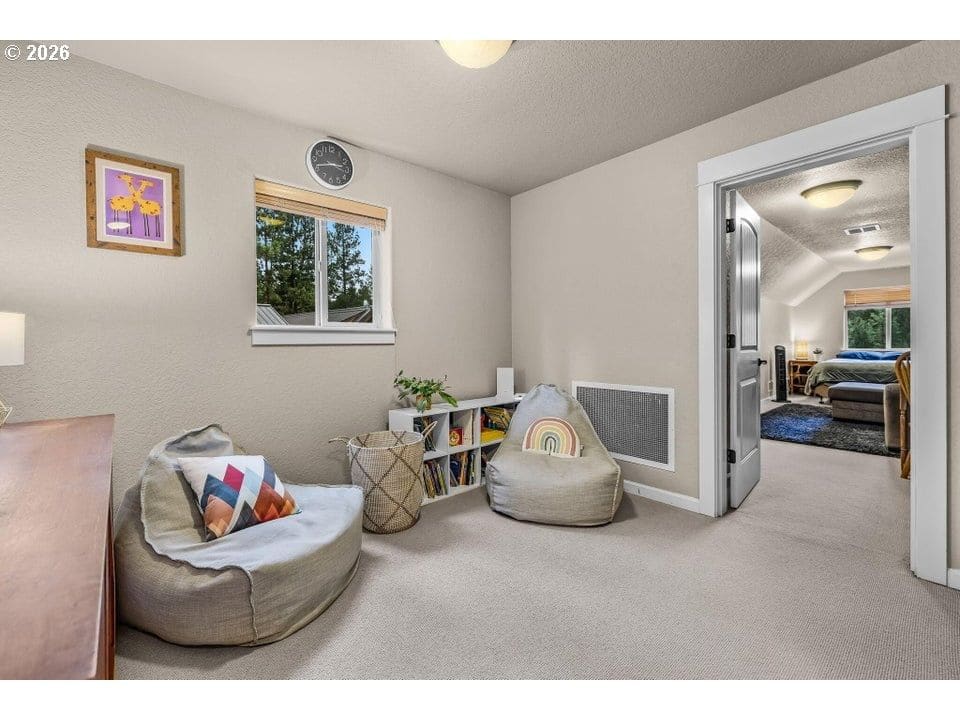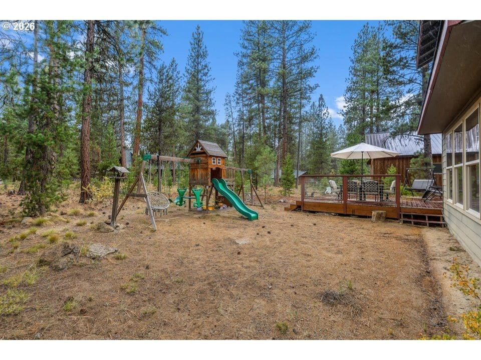 Located in the scenic Wild River neighborhood, this beautiful 4-bed, 2.5-bath home sits just steps from the Deschutes River with Avion water and an ATT septic system. The main-level primary suite offers privacy and comfort, while the flexible downstairs space is perfect for a home office, formal dining, playroom, or creative studio. Enjoy the warmth of a wood-burning fireplace under 19-ft vaulted ceilings, with natural light streaming through expansive windows. The kitchen features tile granite countertops, hickory cabinets, stainless appliances, and a large pantry. Upstairs, you'll find two bedrooms, a full bath, a cozy loft, and a spacious bonus room ideal for a 4th bedroom, second office, guest space, or game/media room. A 2-car garage plus a 20x20 attached shop with roll-up and French doors and 220 electrical outlet adds extra functionality. Relax outdoors on the large Trex deck in the peaceful, park-like setting. A truly magical home in an unbeatable location!