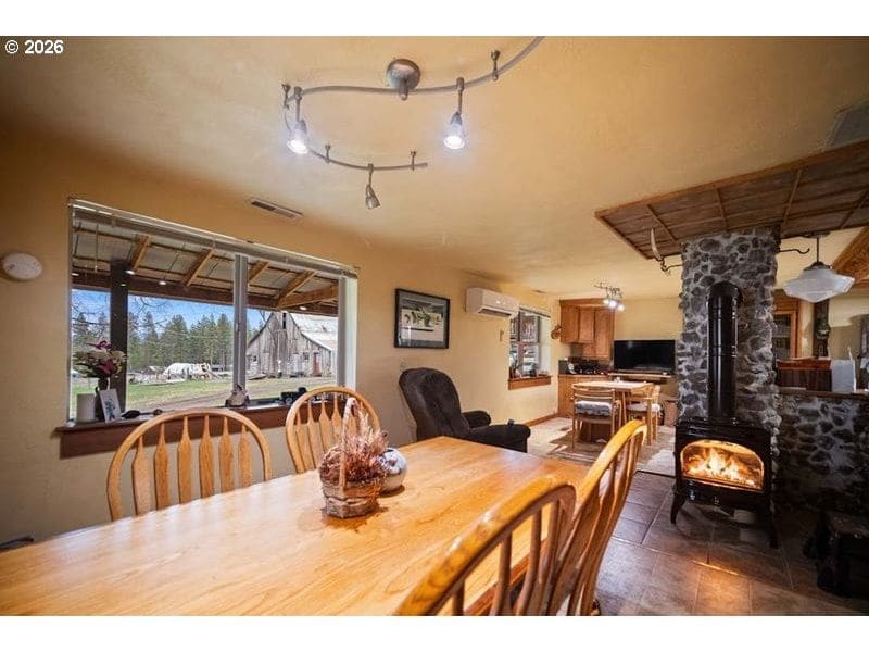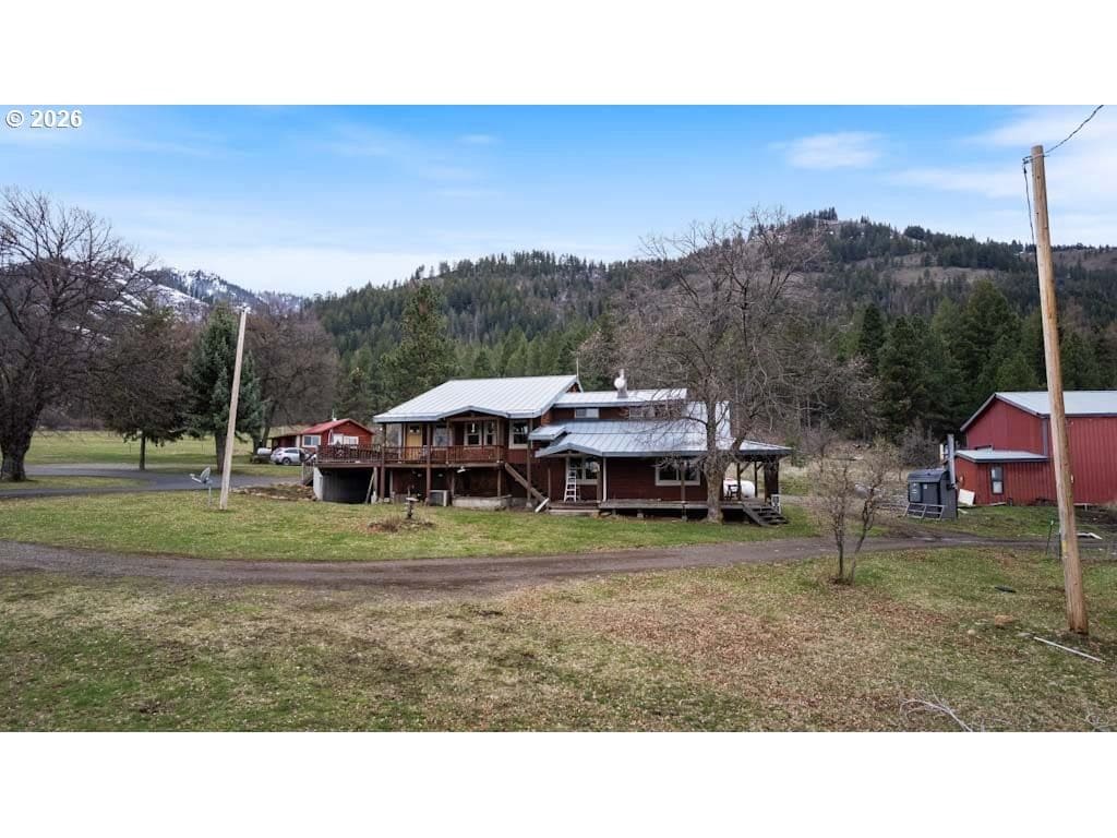 80-acre property in Summerville offering privacy, usable land, bordering national forest land, and extensive improvements. This custom-built, 2,160 sq ft multi-level home features 3 bedrooms and 2 bathrooms, originally built in 1949 and expanded over time. The home includes a metal roof, newer vinyl windows, extra-thick walls, and a large covered porch. A paved circular driveway provides easy access and convenient flow. ACCESSIBILITY FEATURES include chairlifts on all stairways, a walk-in shower, and a walk-in bathtub.Inside, the living room showcases vaulted ceilings and reinforced plywood walls, ideal for displaying artwork. The home offers multiple heat sources, including an outdoor wood boiler that services both the home and shop, along with additional furnace, mini-splits, and a gas stove. Tankless hot water adds efficiency.The property is well-equipped for a variety of uses with impressive outbuildings. The main shop includes a 36x40 insulated space with mezzanine, water, 220 power, in-floor heat, wall furnace, and air compressor, plus an attached 24x36 workshop with 220 power and sediment trap. Additional structures include a barn with power and water, and a 33x38 hoop-style (Quonset) building with concrete/asphalt floor, 220 power, and oversized automatic door.The land features three natural springs, three ponds, WATER RIGHTS, and a spring-fed system, along with a well for the home. A separate cabin with a bedroom, bathroom, and kitchen provides flexible space for guests, office, art studio, living space, or your choice!A functional, well-established property offering space, versatility, and opportunity in a peaceful rural setting. The irrigated area was planted in pasture grass last year. Cattle have been run on the property in the past but not for several years. Currently there is a farmstand being supplied with garden vegetables and eggs produced on the property.