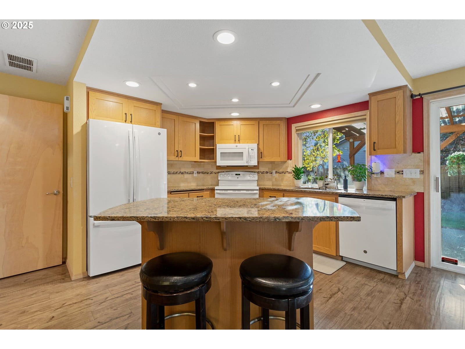 Thoughtfully updated 2-bedroom, 2-bath home in the welcoming Highlands 55+ community. The open living and dining area feels warm and inviting with vaulted ceilings and a brick fireplace. Sliding doors open to a covered patio and a private, landscaped backyard that offers a quiet place to relax or entertain. The home features updated major systems and newer kitchen appliances, including refrigerator, dishwasher, and microwave. Conveniently located near the clubhouse and close to shopping, dining, and golf. Annual HOA dues of $1,110 include basic Comcast cable service, grounds maintenance, and access to the clubhouse. A comfortable, low-maintenance home in a convenient setting.